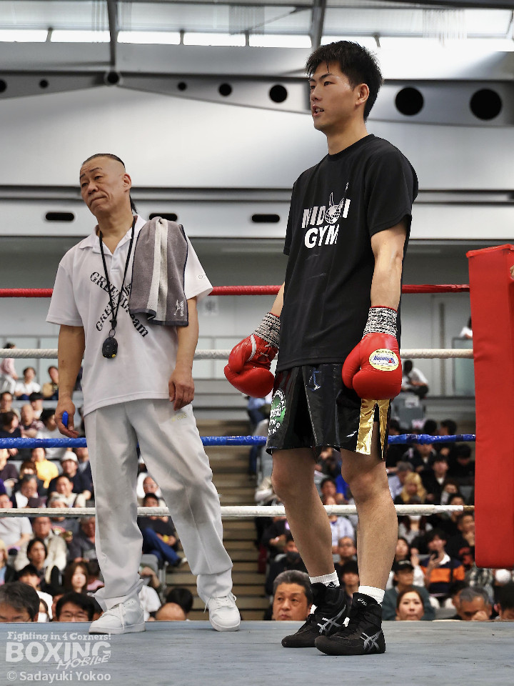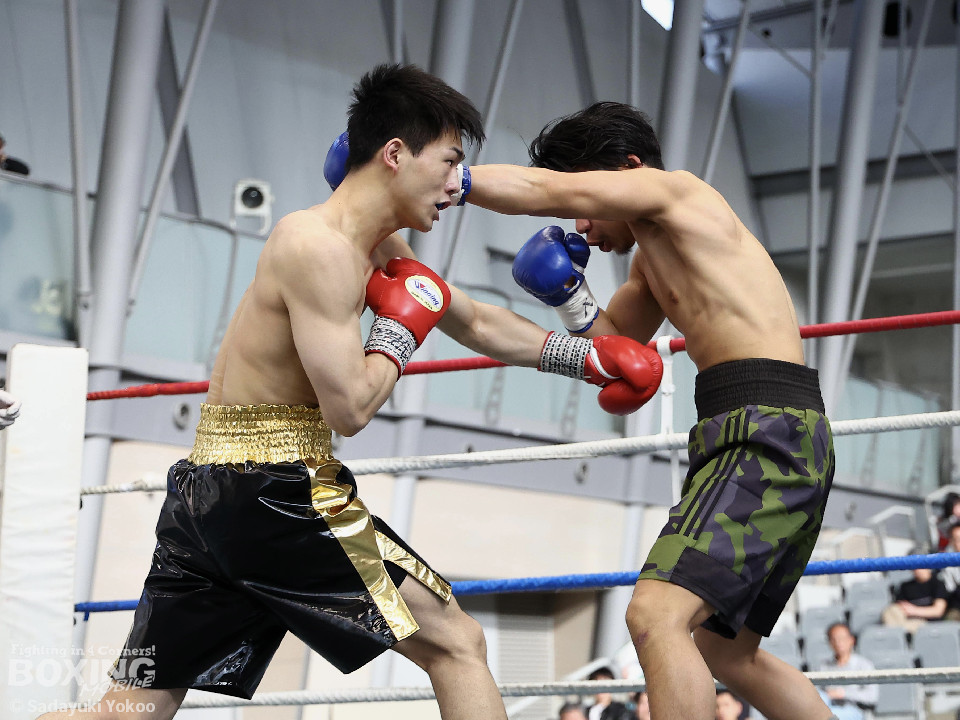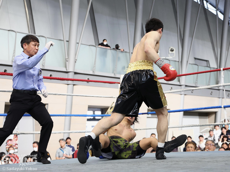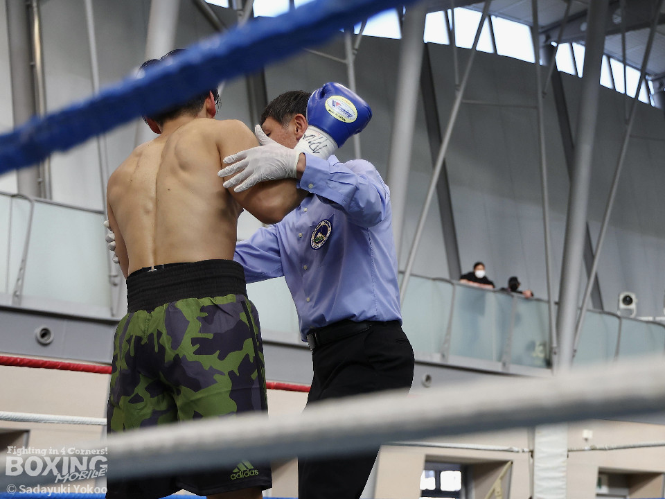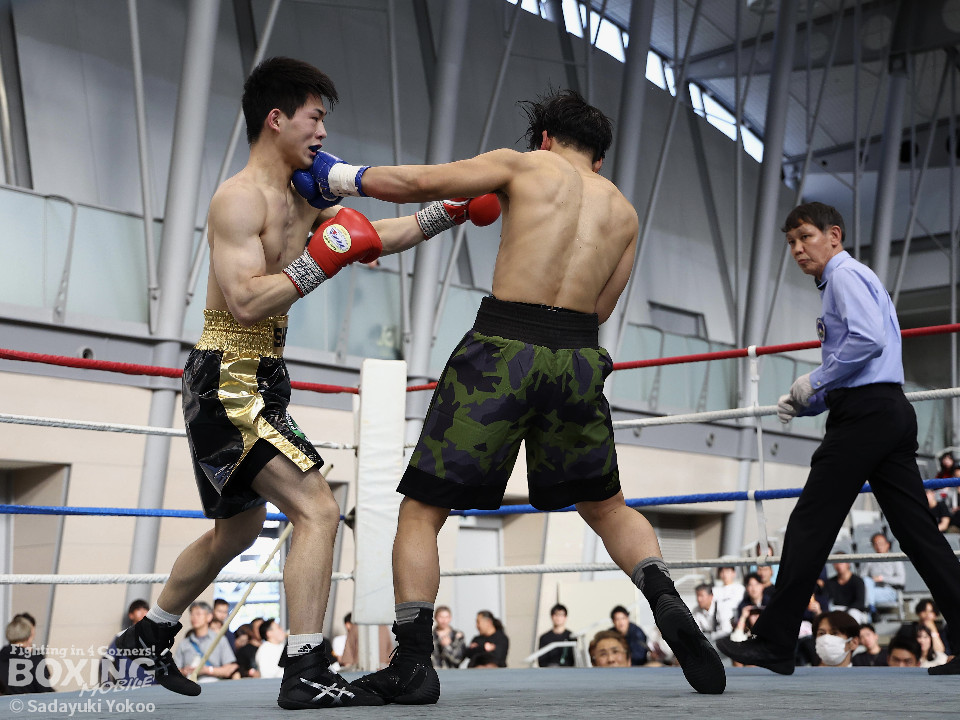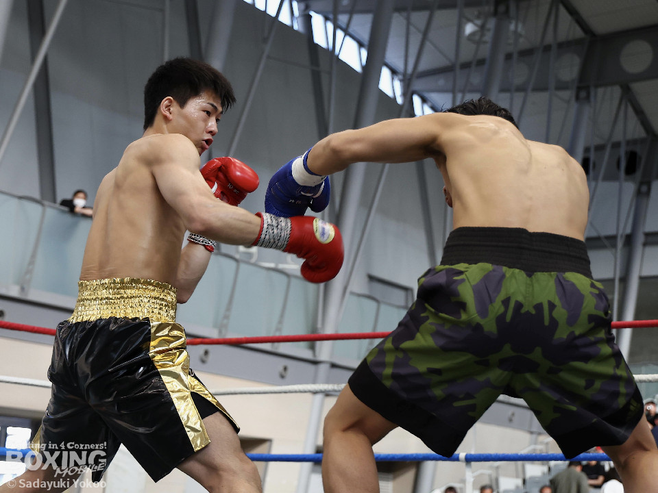 試合:距離を潰す黒川に対し、サウスポー鳥居は冷静にジャブからワンツーにつなげ、上下にパンチを散らすとカウンターの左でぐらつかせた。2回、ボディワークで回避した鳥居は左フックで効かせると連打でダウンを奪った。再開後、再び左がヒットするとダメージを考慮したレフェリーが試合をストップ。鳥居が貫禄の内容で決勝進出を決めた。
