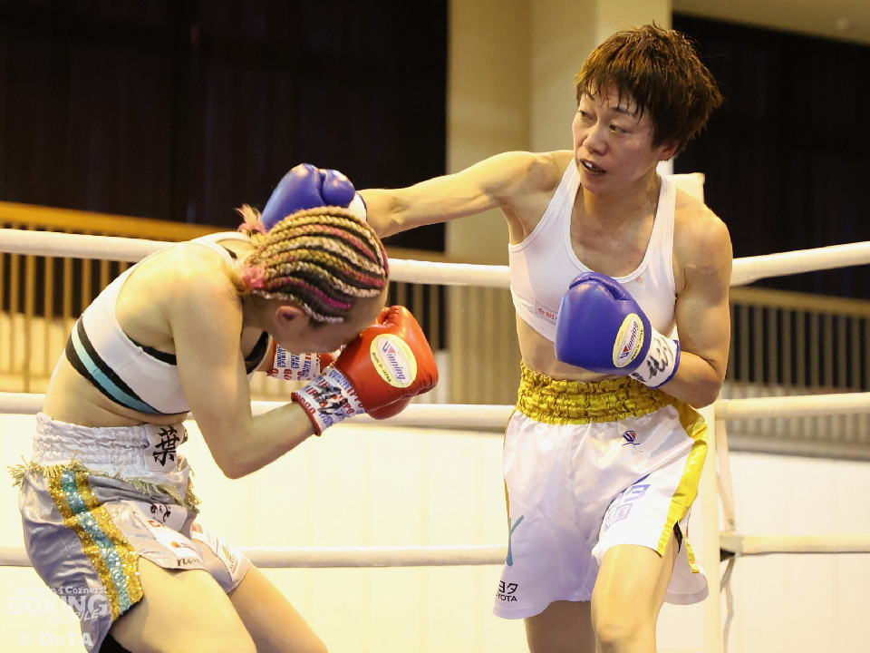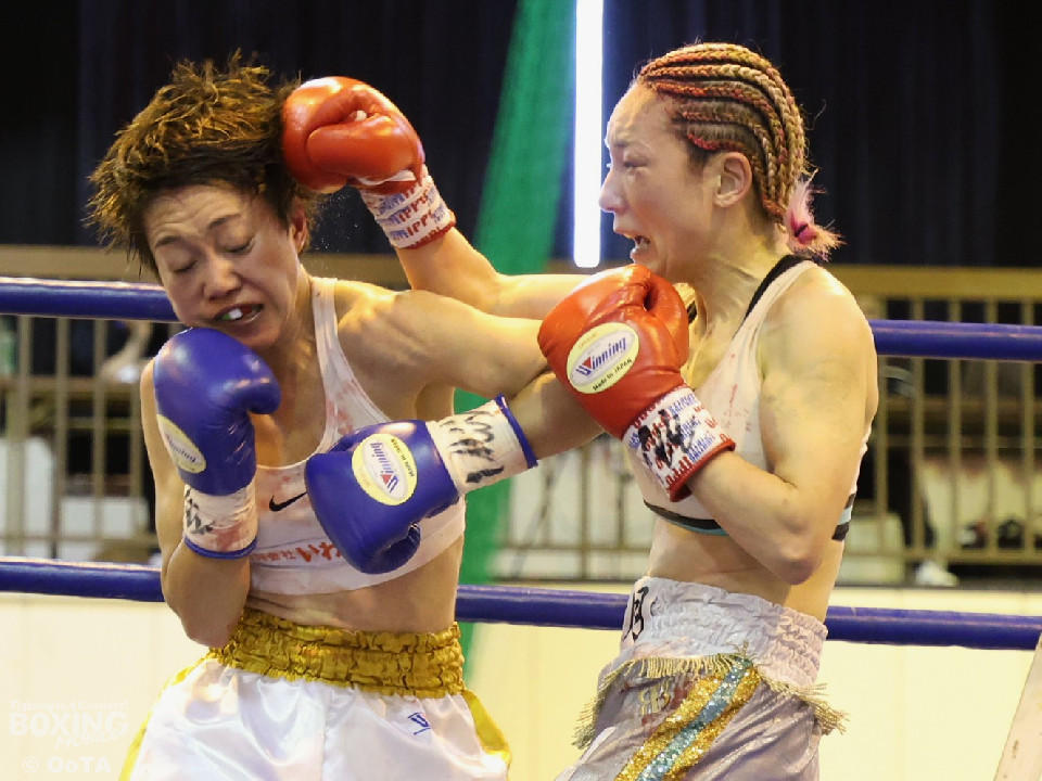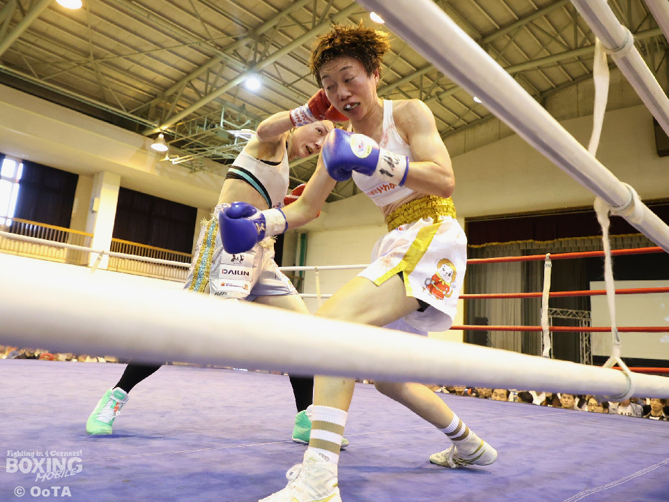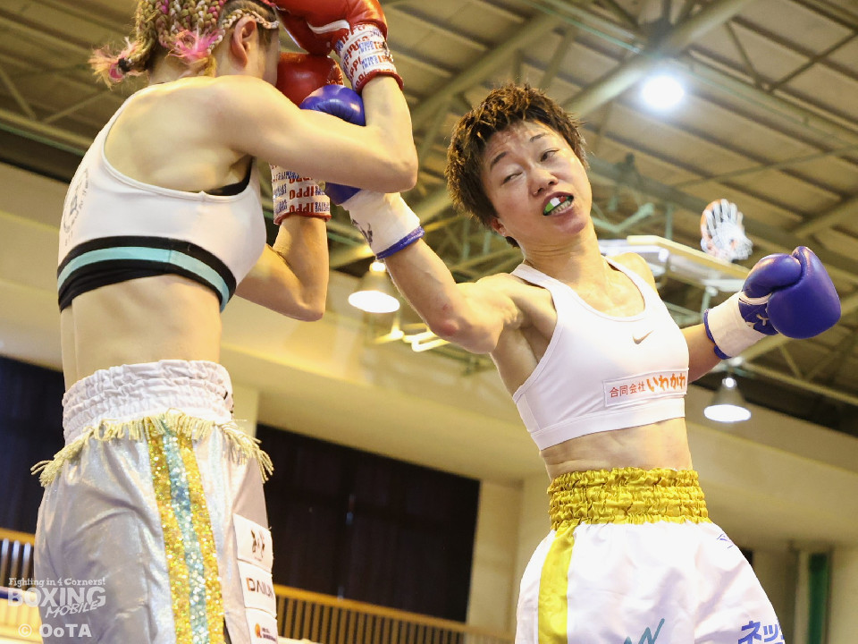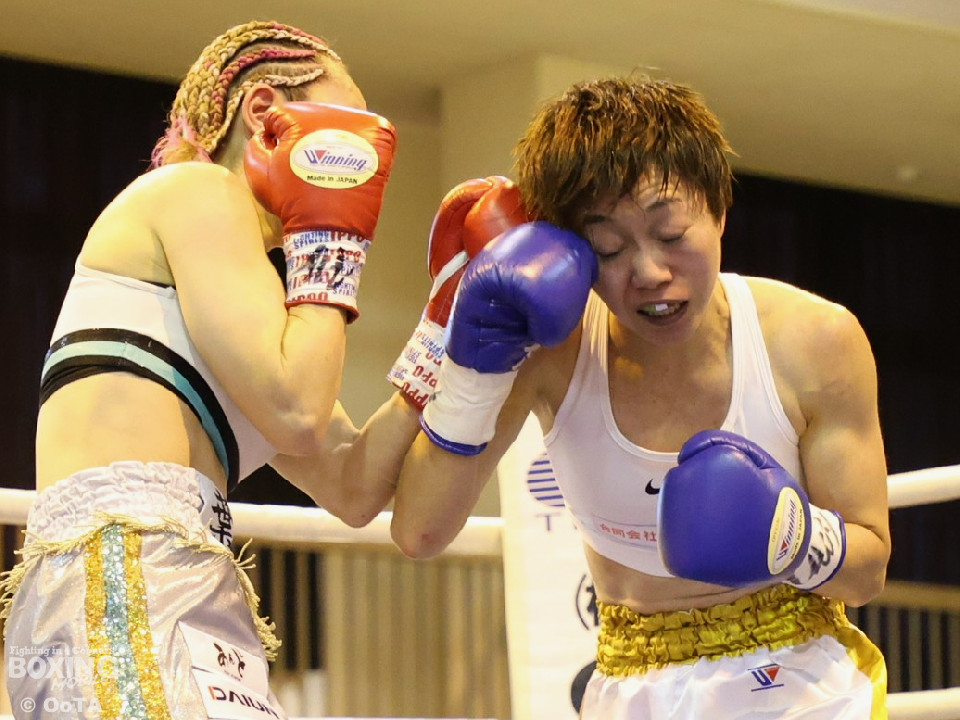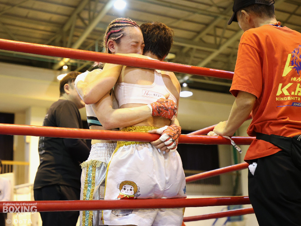試合:左で煽りながら出方を見る岩川に対し、右ストレートで距離を詰める葉月。互いに静かな立ち上がりを見せたが、続く2回、踏み込みを更に深めた葉月が攻勢をかけるが、対する岩川も入り際にカウンターを合わせて、後半はプレッシャーをかける展開へと挽回。3回以降も葉月が積極的に距離を詰める展開は作るが、岩川もスイッチで揺さぶりをかけ、ストレートをカウンターでねじ込みペースを渡さず。被弾を合図に火の出るような打ち合いを展開した。緊張した展開を打破したのは、6回の葉月、右ストレートをボディへと伸ばすと、そこから波状攻撃をかけてペースを引き寄せた。7回、岩川も打ち合いに挑み激しくパンチが交錯するが、葉月が偶然のバッティングにより左頭部をカット。最終回、ここも葉月がしつこく前に出て攻勢をかけた。岩川も右から左フックへと繋ぎ、打ち終わりを鋭く狙うも完全な打開にはいたらず。判定決着となった一戦は、アグレッシブな攻撃でジャッジ3者の支持を得た葉月に軍配が上がった。