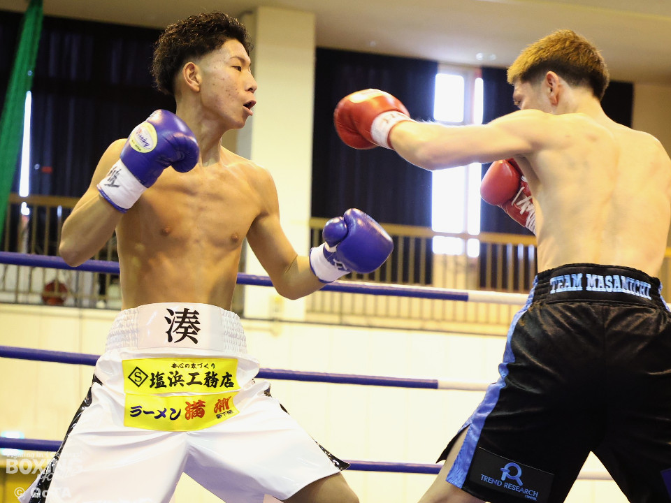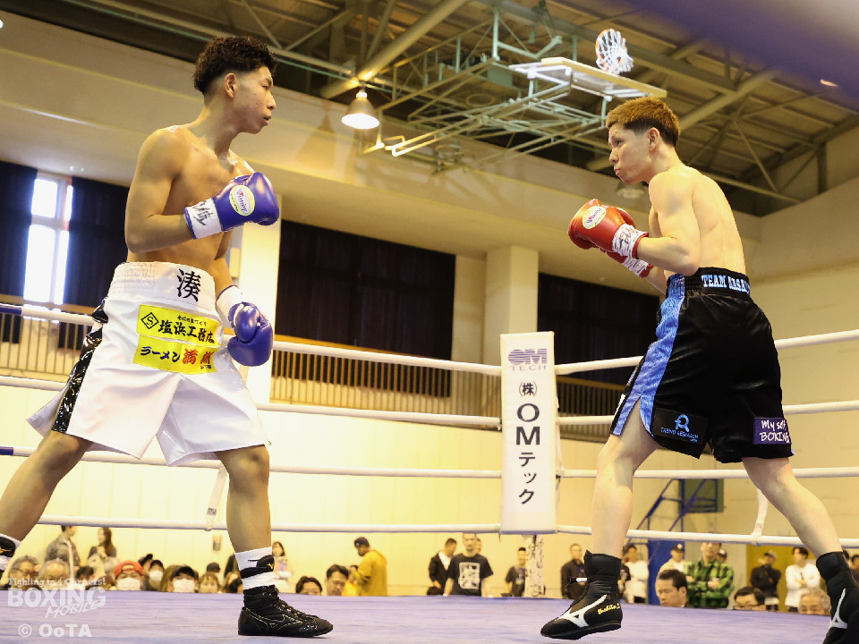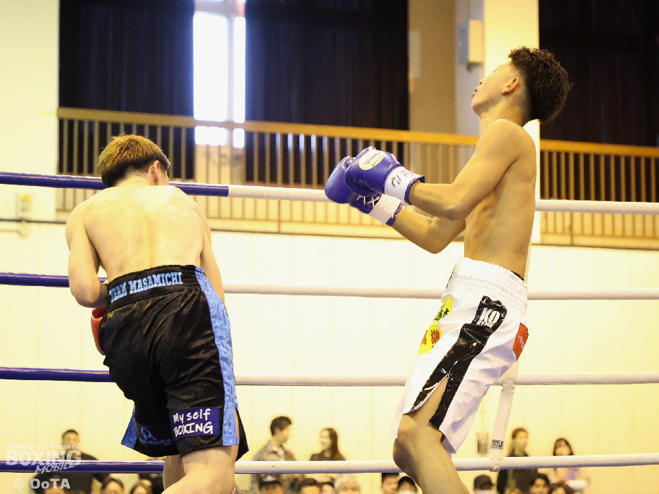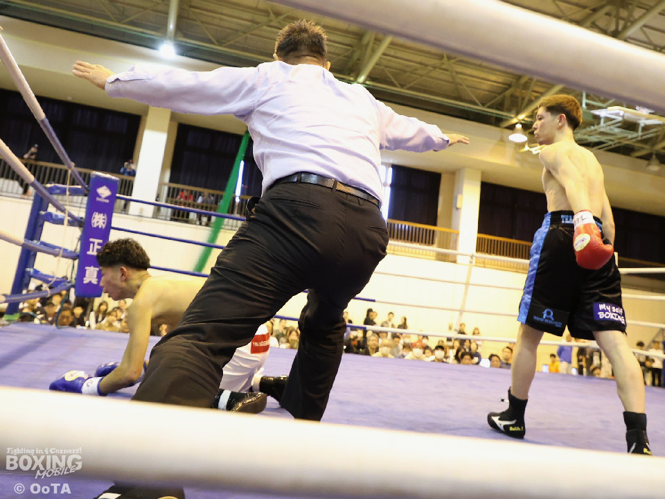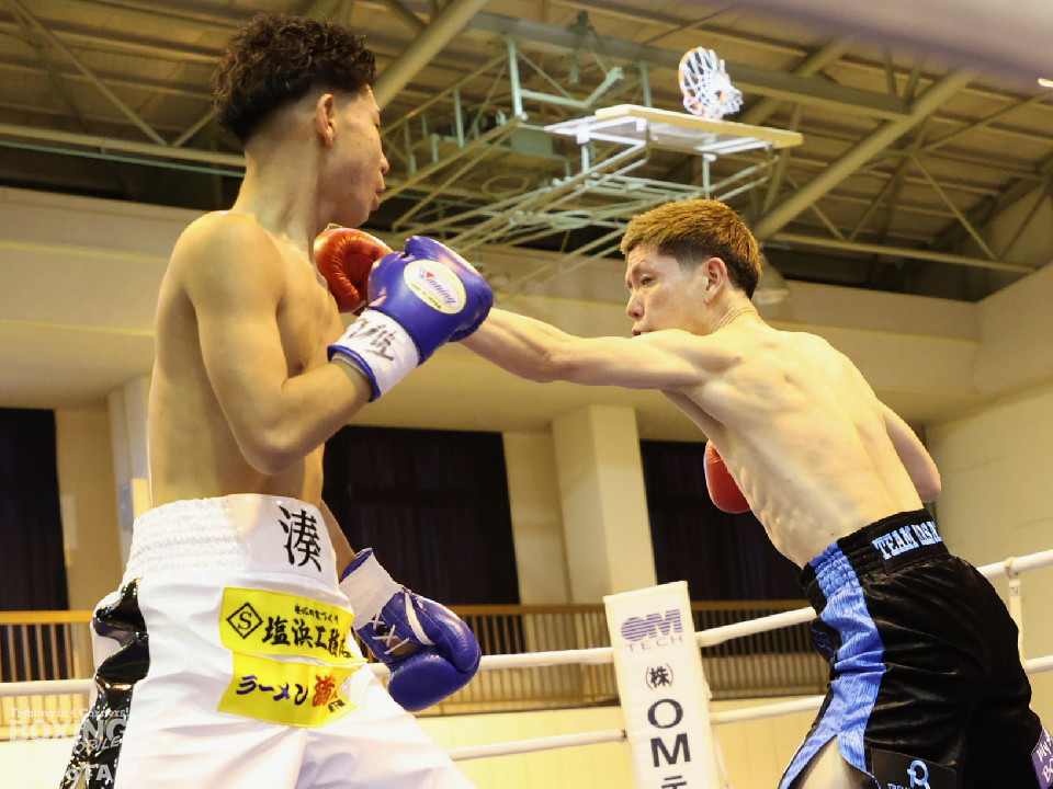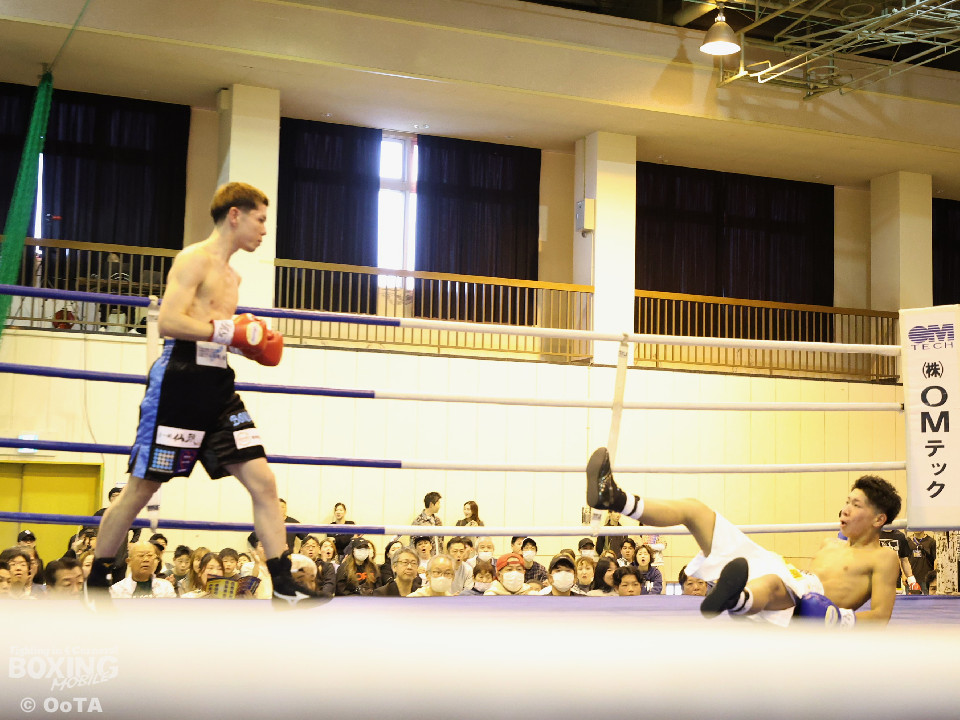 試合:初回から一気に打ち合いを展開した両者、しかし田平の右がいち早く顎をとらえてダウンを奪った。そこから立ち上がった塩濱だったが、一気呵成に詰めた田平が再度右を打ち抜き決定的なダウンを奪うと、レフェリーが直ぐに試合を止めた。