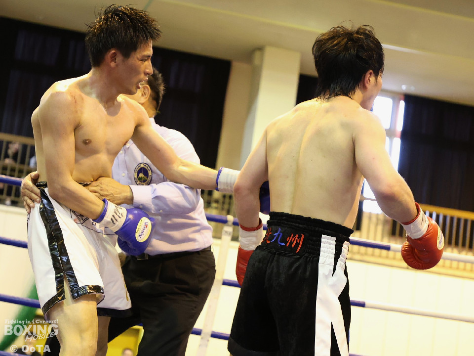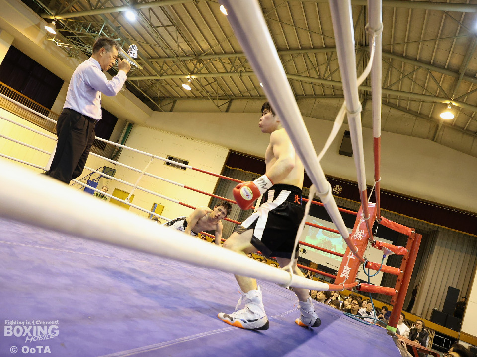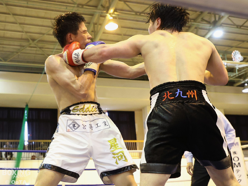 試合:福田が長い距離からジャブを伸ばせば、中西は踏み込んでの左で激しいペース争いを繰り広げた。2回、強引に距離を詰める福田がラフになりながらもじわりとペースをたぐり寄せた。しかし3回、ギアを入れ替えた中西は飛び込んでの左を起点にペースを一気に掌握。左アッパーでダウンを奪った。4回も中西のペースは揺るがず左を上下に打ち分けるが、6回、福田が開始から一気に前へ出るとロープへ詰める展開を増やし、連打をこまめにまとめて中西の体力を削った。一気に試合が動いたのは7回、互いに総力戦で一進一退の攻防の中、中西の飛び込んでの左が好機を作ると、右ストレートを被弾してふらついた福田を見たレフェリーが試合を止めた。