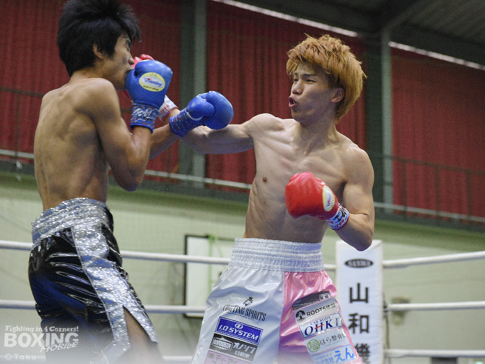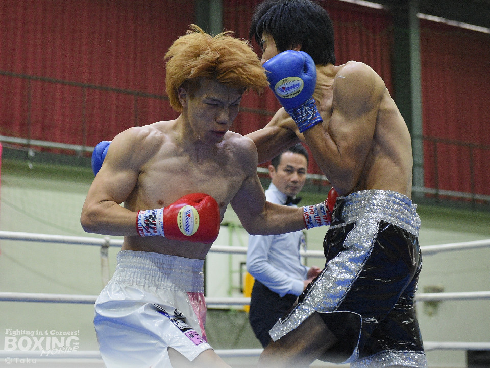 試合:サウスポー藤澤が単発の左ボディストレート、左オーバーハンドで先制。2回、五十嵐は前の手で距離を測りながら右を狙うが、攻めあぐねた印象。3回、藤澤が左カウンターを決めれば、五十嵐も打ち下ろしの右ストレートで応戦。一進一退の攻防を繰り広げた。4回、五十嵐はロングレンジからのワンツーで見栄えの良さをアピール。5回、藤澤は右フックを合わせると片膝を突いた五十嵐を見てレフェリーはダウンを宣告。再開後、五十嵐はプレスをかけてワンツーで反撃に転じた。6回、五十嵐は積極的な攻撃で逆転を狙うが、藤澤は左ボディストレート、右フックで迎え撃ちペースを渡さなかった。1~5ポイント差をつけた藤澤が勝利した。