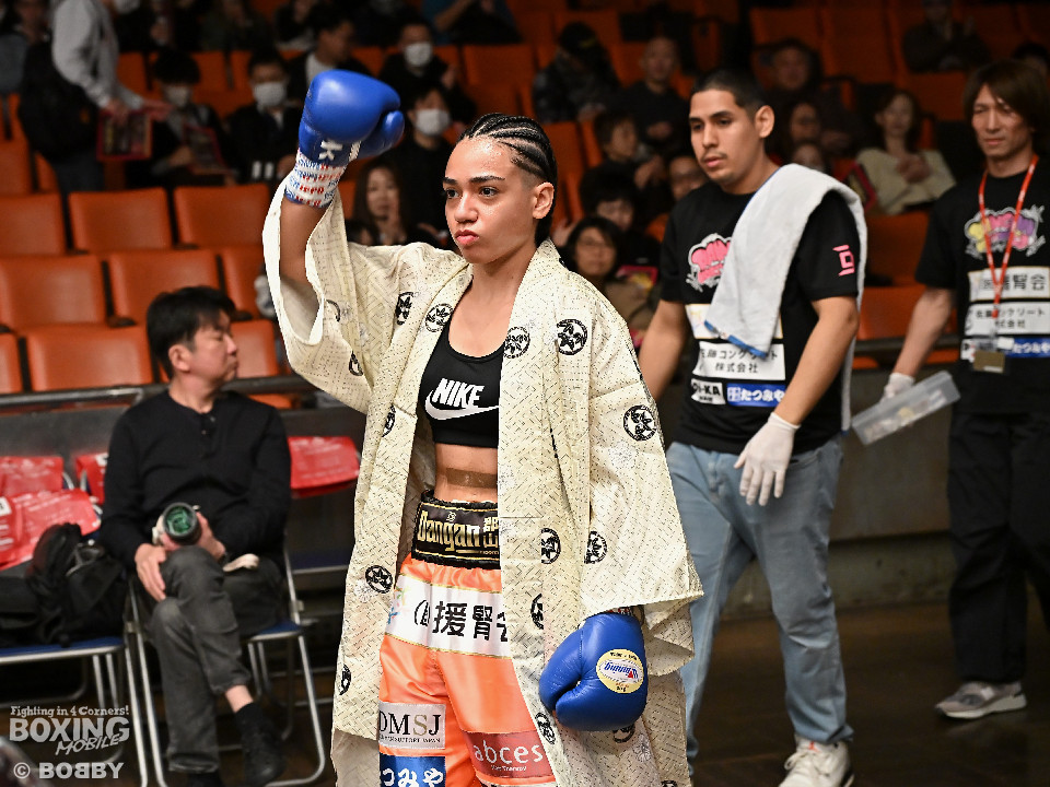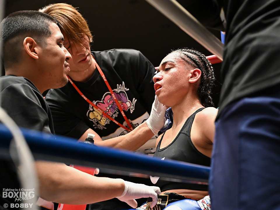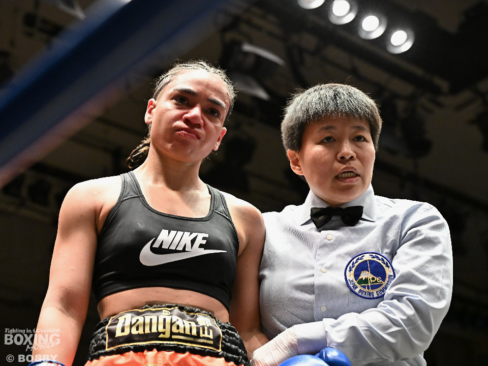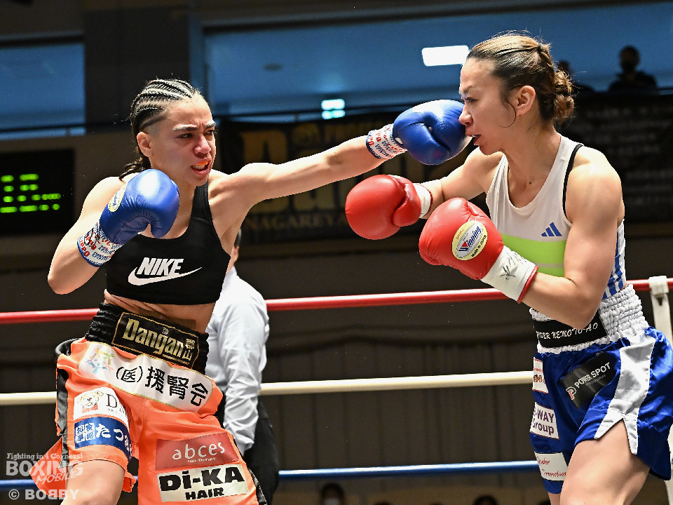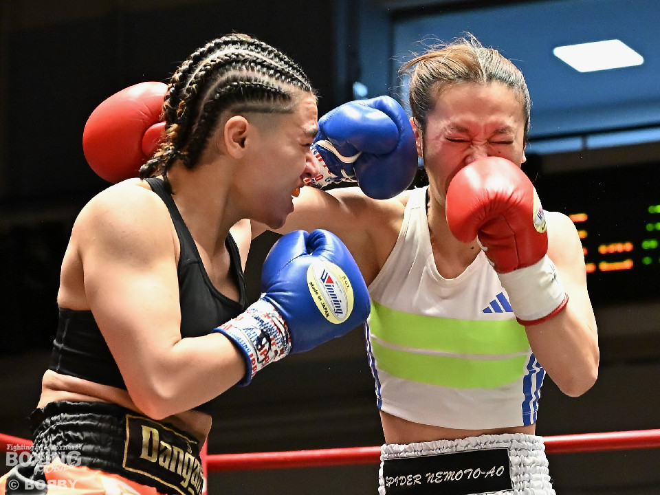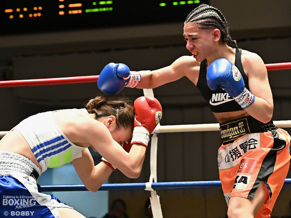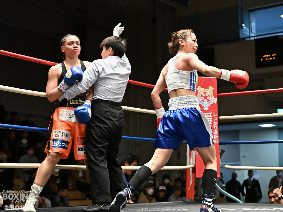 試合:大山が前の手でリズムを作りながらワンツーをヒットし先制。2回、角田はプレスをかけてワンツーを繰り出すが、決定打を打ち込めず。大山がプッシュしながら手数をまとめてポイントを加点。勝負が決まったのは3回、大山はロープに詰めて連打で攻勢。手が出なくなった角田を見てレフェリーが割って入った。3戦目で初勝利を挙げた大山は涙を流しセコンドと勝利を分かち合った。