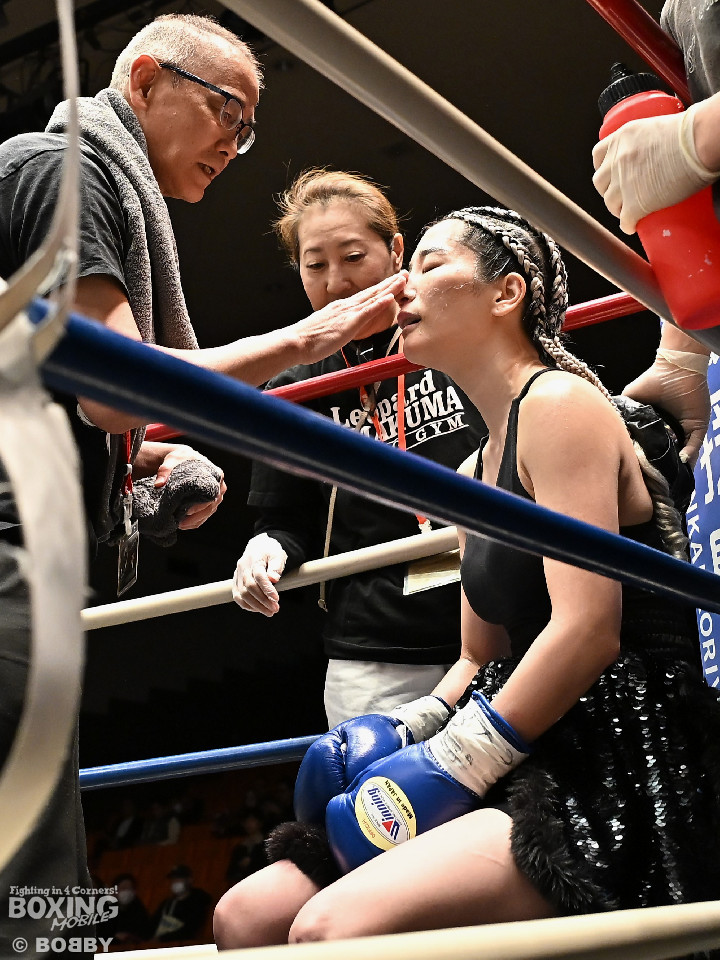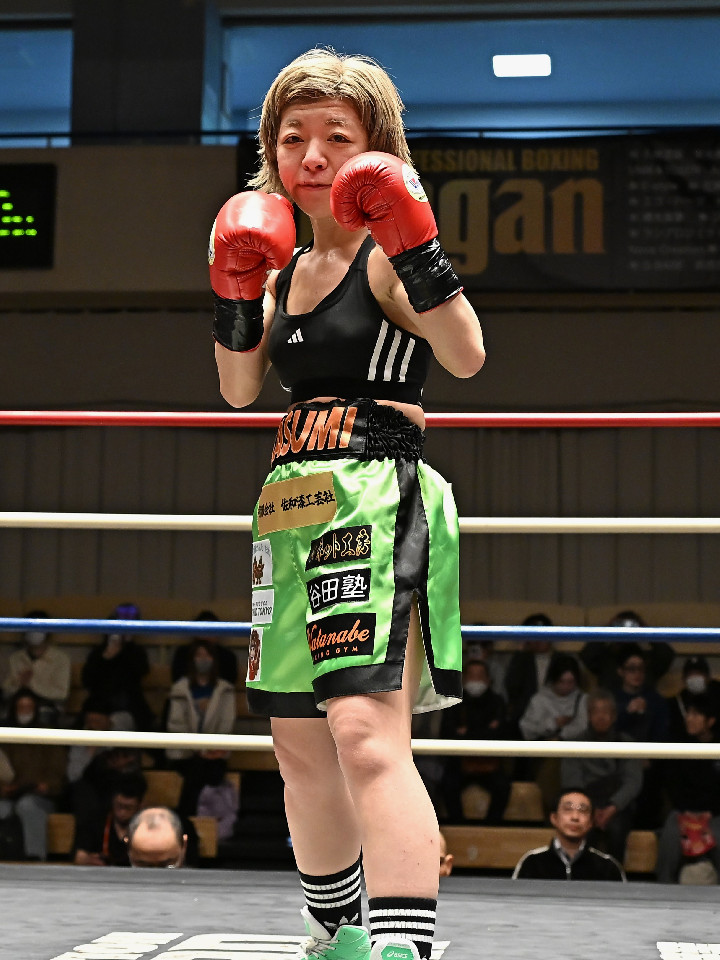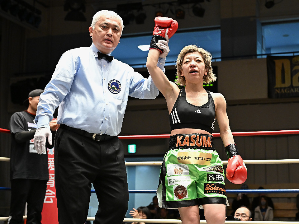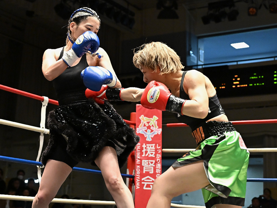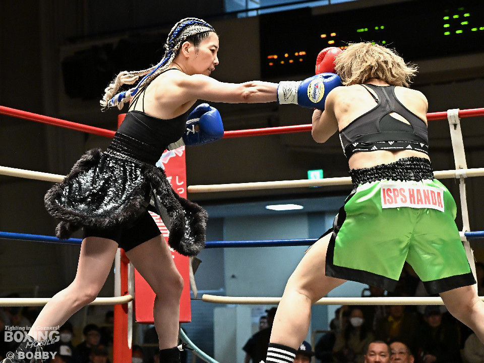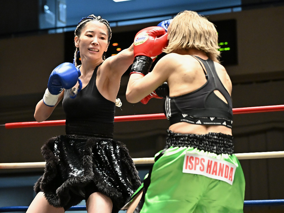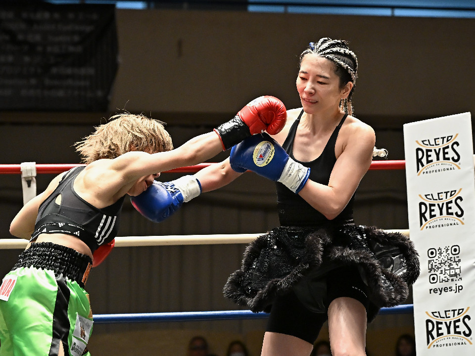 試合:サークリングする峰に対し、山本は前に出て単発の右ストレートをヒット。2回も同じように山本が追いかけてアグレッシブな姿勢。3回、山本は右ボディストレートを軸に積極的な攻撃。時折、ワンツーを返した峰だがポイントを取り切るまでには至らず。4回、山本はワンツーで顔を弾くと最後まで攻める姿勢を貫いた。山本がフルマークの判定勝ちを飾った。
