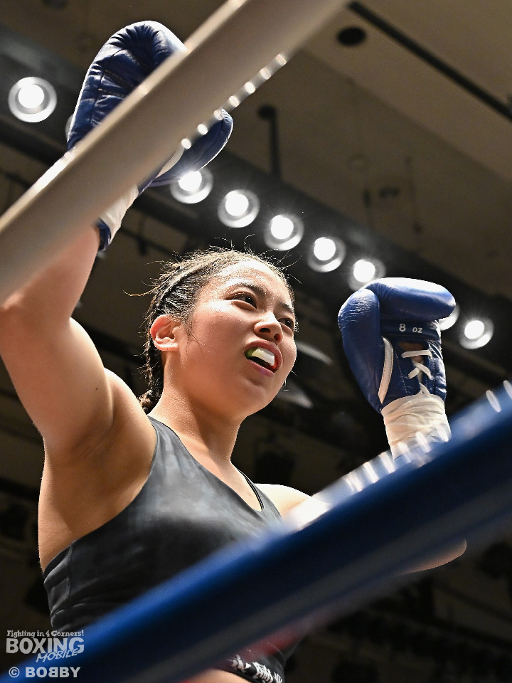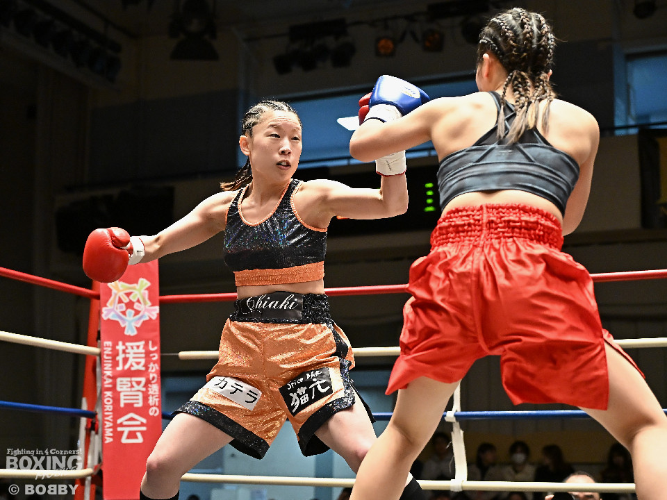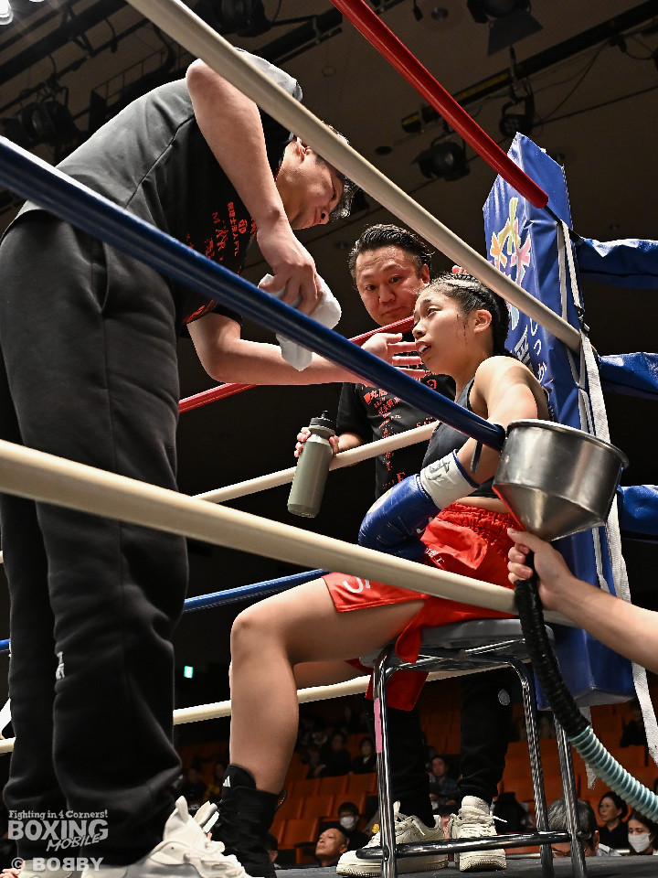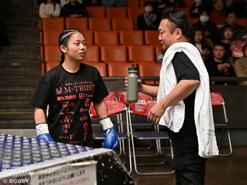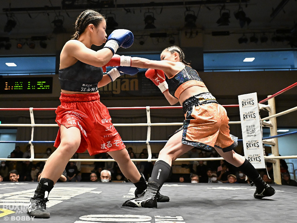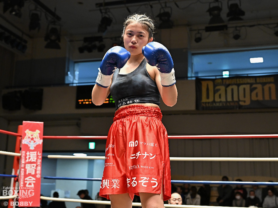 試合:河野が前後の動きを意識しながらワンツーから切り込むのに対し、太田はラウンド終盤に右ストレートをヒット。2回、河野は足を使いながらワンツーで見栄えの良いボクシング。3回、太田は距離を詰めて右ストレートを狙うが、決定打を打ち込めず。4回、河野は軽快なフットワークから右ストレートを合わせて最後までアウトボクシングを遂行した。宮崎から参戦した河野がデビュー戦を飾った。