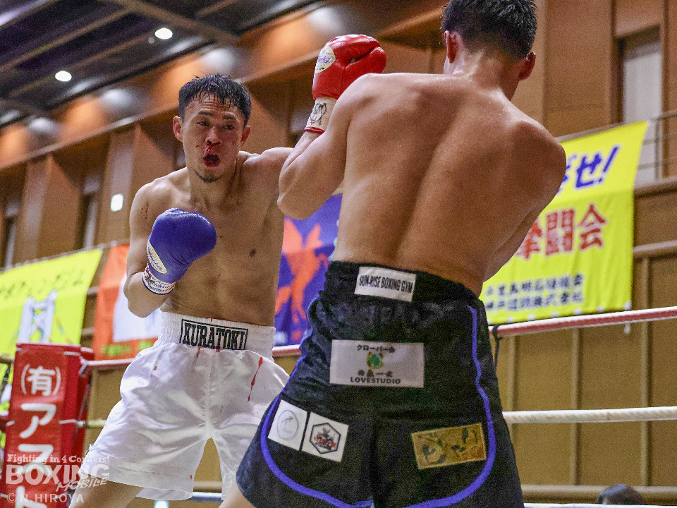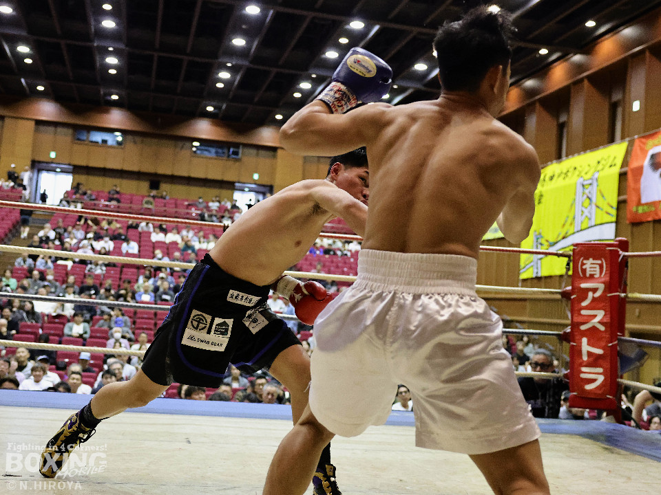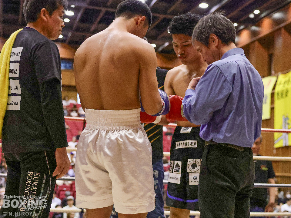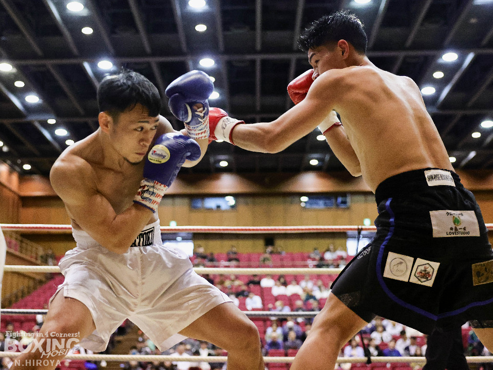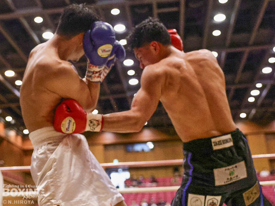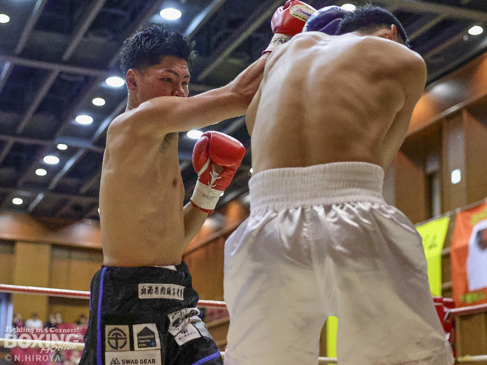 試合:阪下がボディジャブから右へ繋げ、藤川はタイミングを合わせストレートで対抗。2回、阪下がプレスをかけ、ワンツーを突き刺すと、藤川はガードを固めて、左フックを返す。3回、藤川がジリジリと距離を詰め左右のフックを放ち、対する阪下は、上下へ打ち分け応戦。4回、阪下が明確に顔面を捉えたワンツーをキッカケに、右の有効打を重ね、藤川は懸命にパンチを返すもレフェリーが試合をストップ。阪下が落ち着いた試合運びで、TKO勝利。