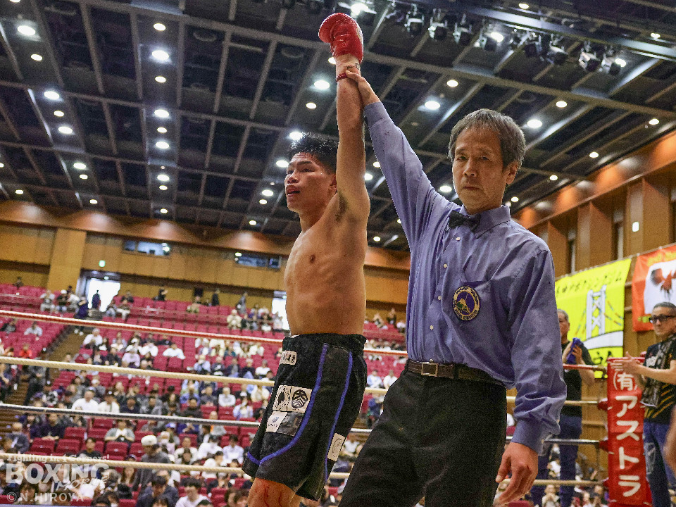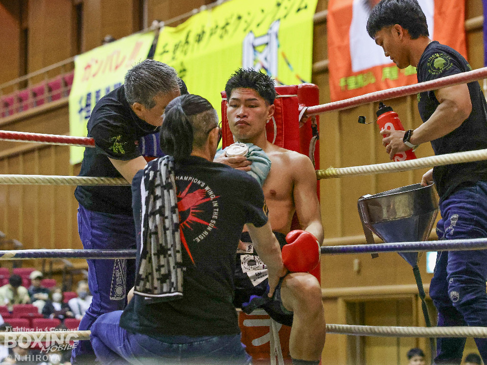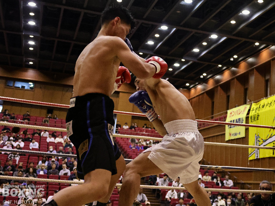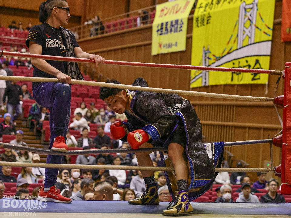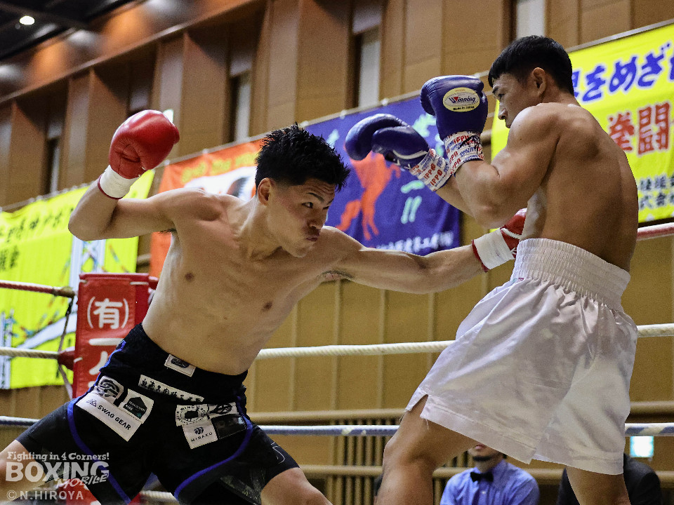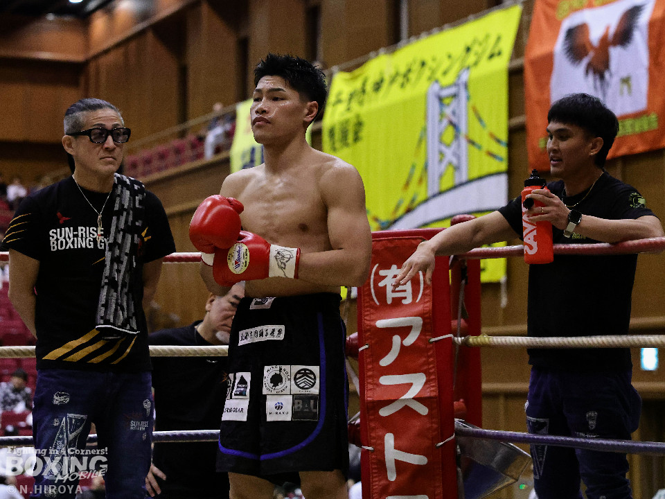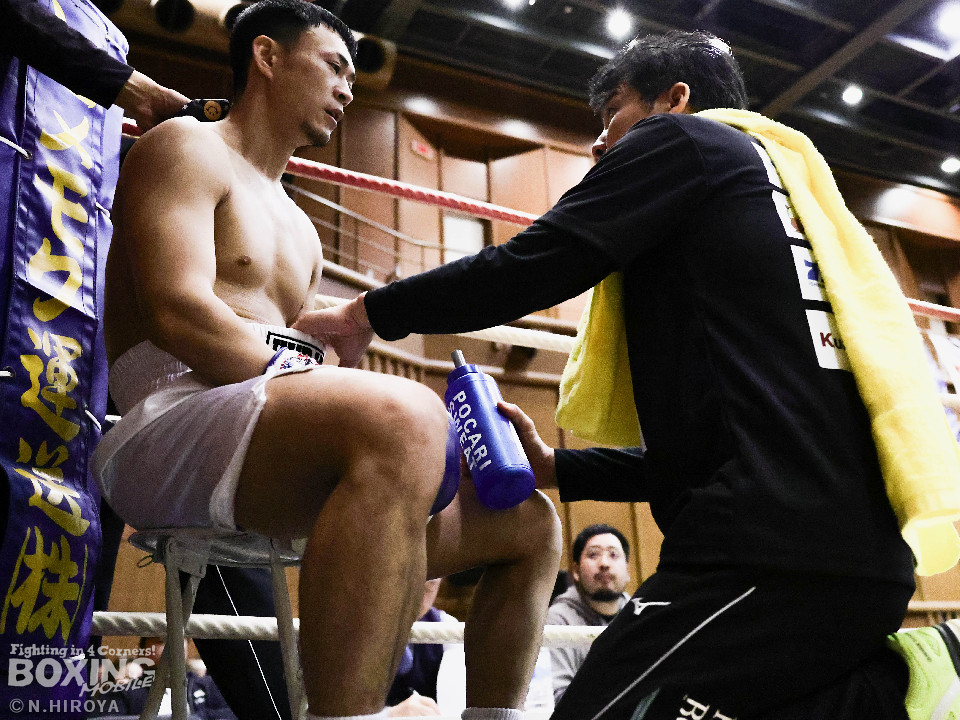 試合:阪下がボディジャブから右へ繋げ、藤川はタイミングを合わせストレートで対抗。2回、阪下がプレスをかけ、ワンツーを突き刺すと、藤川はガードを固めて、左フックを返す。3回、藤川がジリジリと距離を詰め左右のフックを放ち、対する阪下は、上下へ打ち分け応戦。4回、阪下が明確に顔面を捉えたワンツーをキッカケに、右の有効打を重ね、藤川は懸命にパンチを返すもレフェリーが試合をストップ。阪下が落ち着いた試合運びで、TKO勝利。