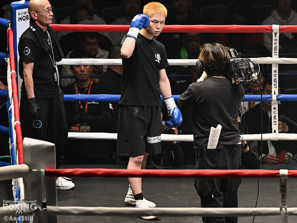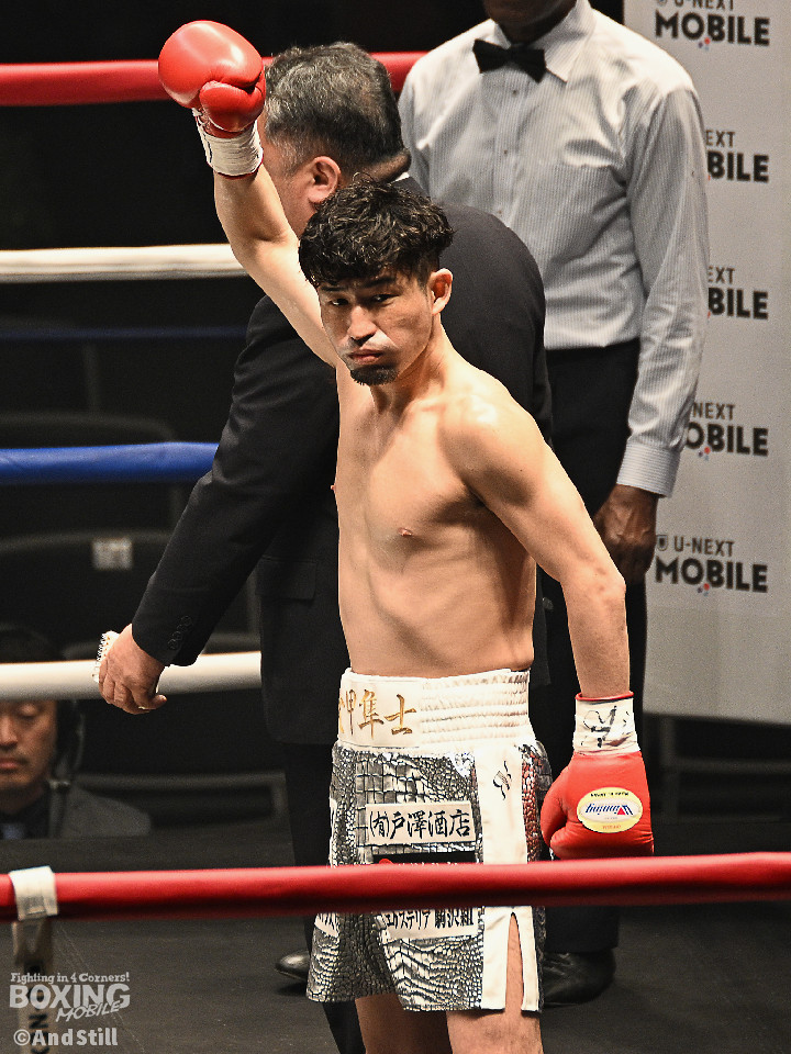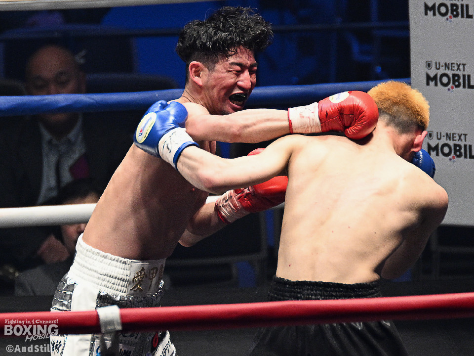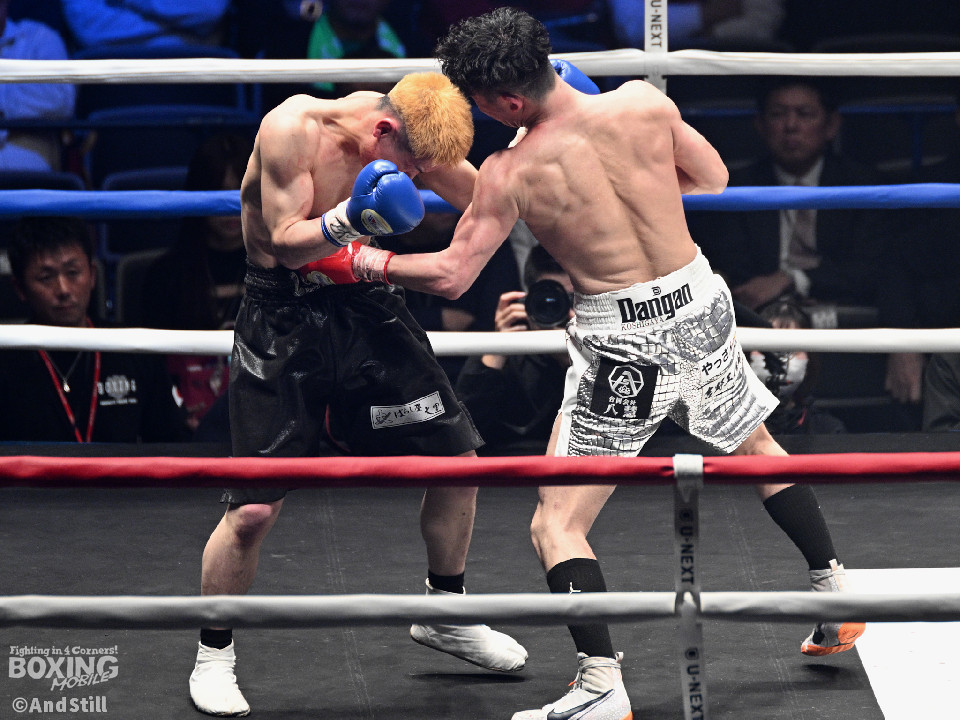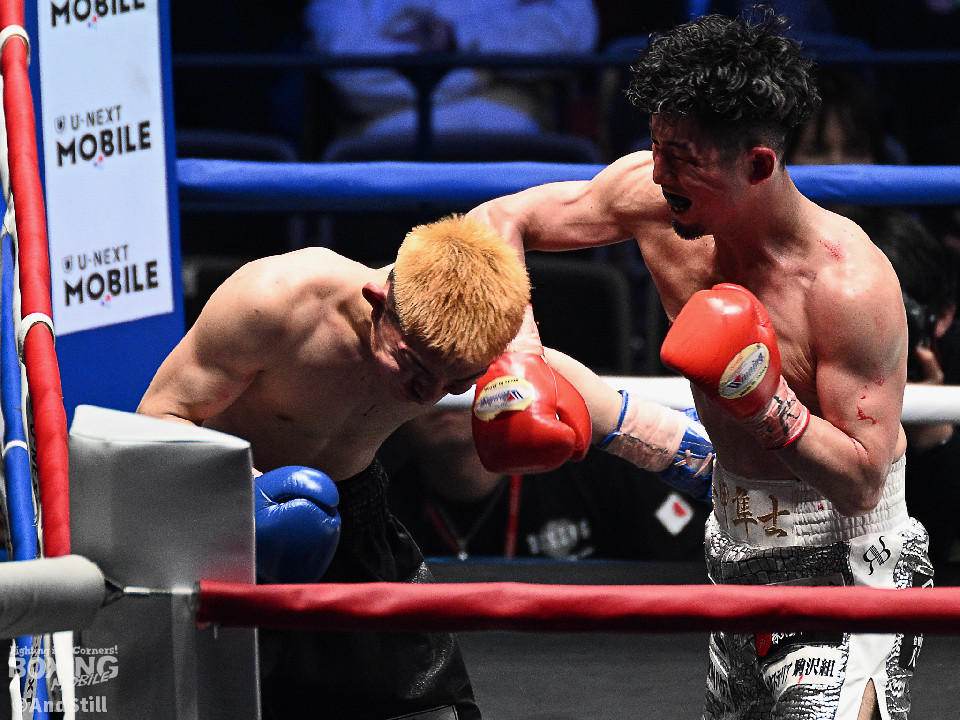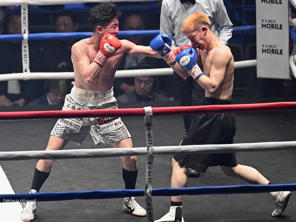 試合;倉持が距離を潰して左ボディから左フックにつなげて先制攻撃。愛甲も負けじとパンチを返す。2回、愛甲が回転力を上げて積極的な攻撃。体力の削り合いが続く中、愛甲が左フックで顔を弾き優勢をアピール。4回、最後の力を振り絞り、懸命の打ち合い。倉持が右アッパーで迎え撃つとギアを上げて攻め立てた。ジャッジに委ねられた採点は三者三様の引き分けで決着がつかなかった。