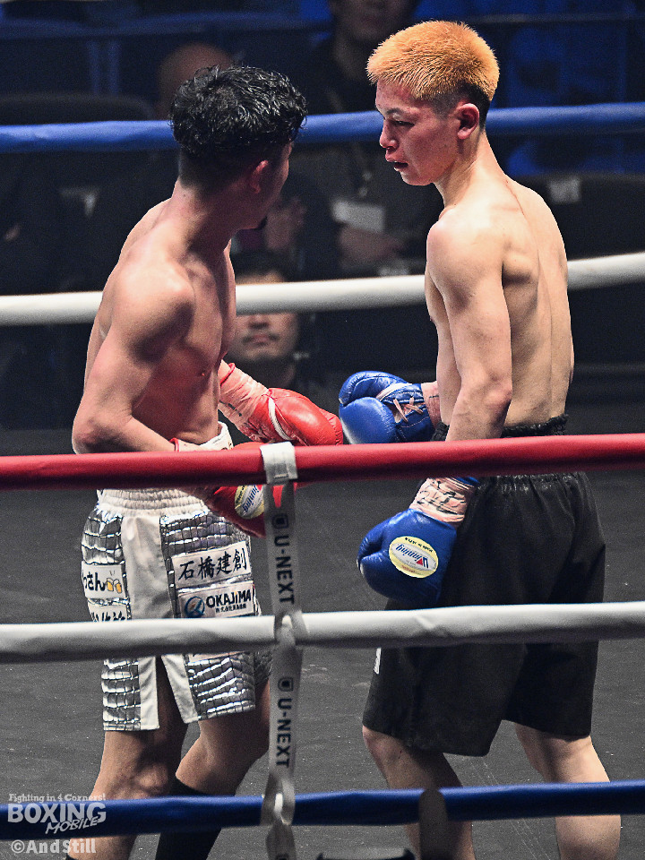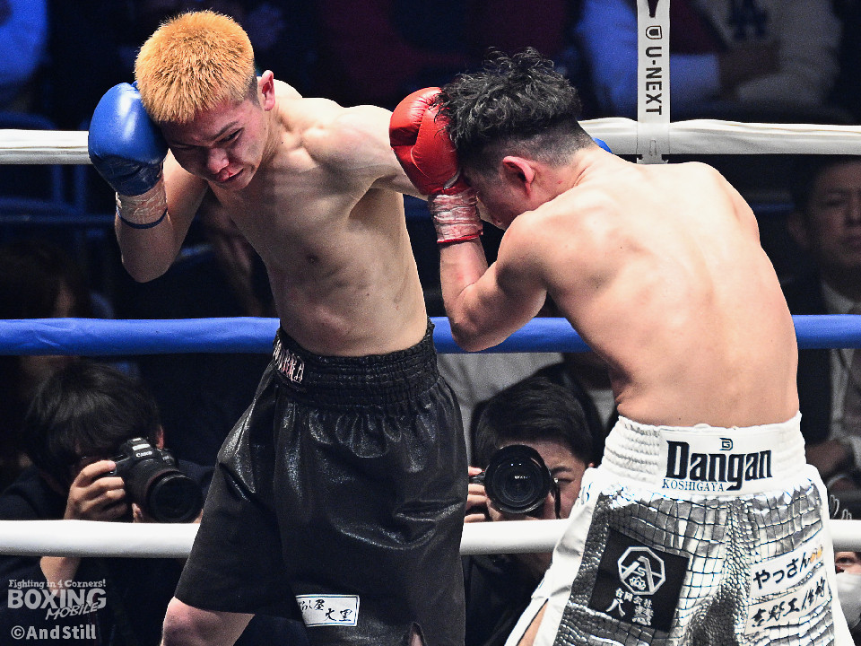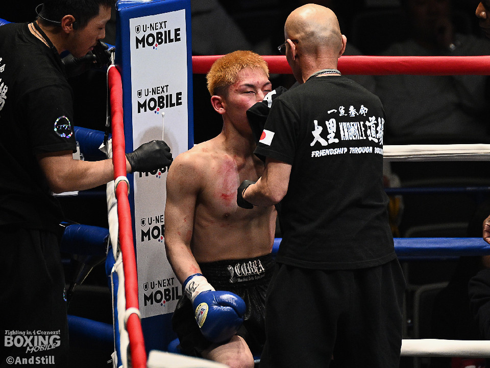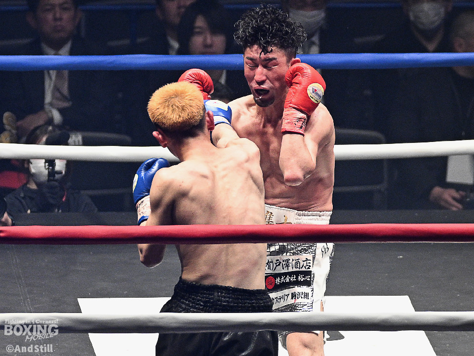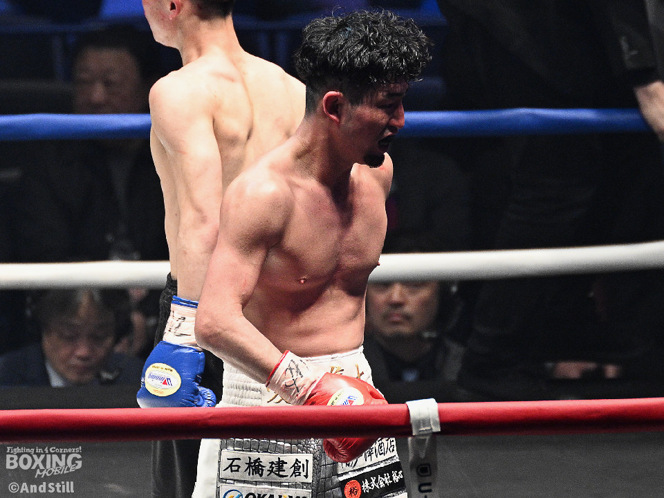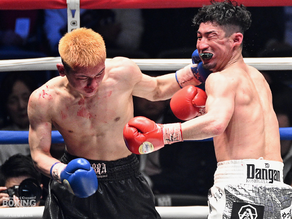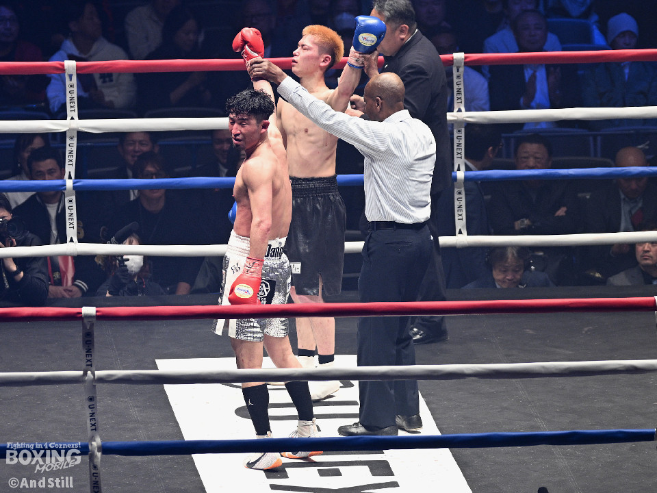 試合;倉持が距離を潰して左ボディから左フックにつなげて先制攻撃。愛甲も負けじとパンチを返す。2回、愛甲が回転力を上げて積極的な攻撃。体力の削り合いが続く中、愛甲が左フックで顔を弾き優勢をアピール。4回、最後の力を振り絞り、懸命の打ち合い。倉持が右アッパーで迎え撃つとギアを上げて攻め立てた。ジャッジに委ねられた採点は三者三様の引き分けで決着がつかなかった。