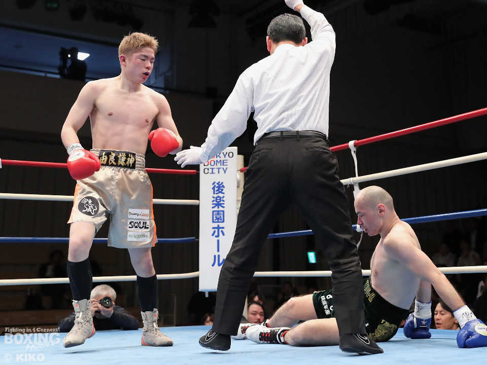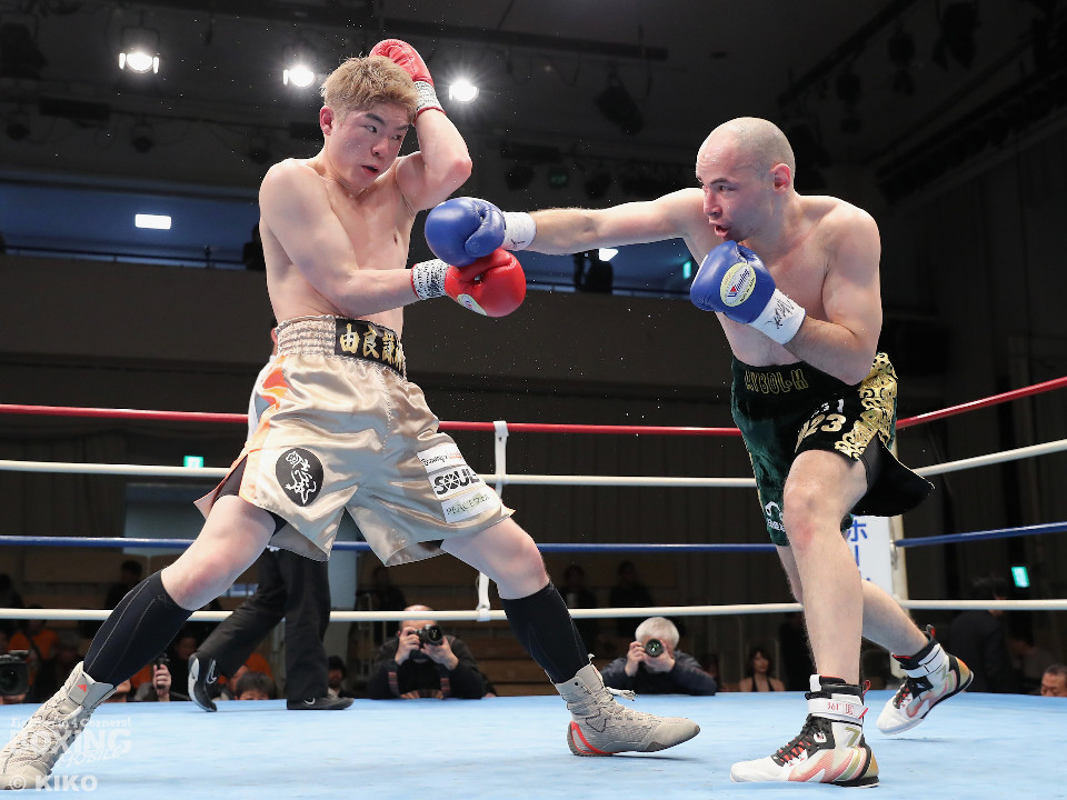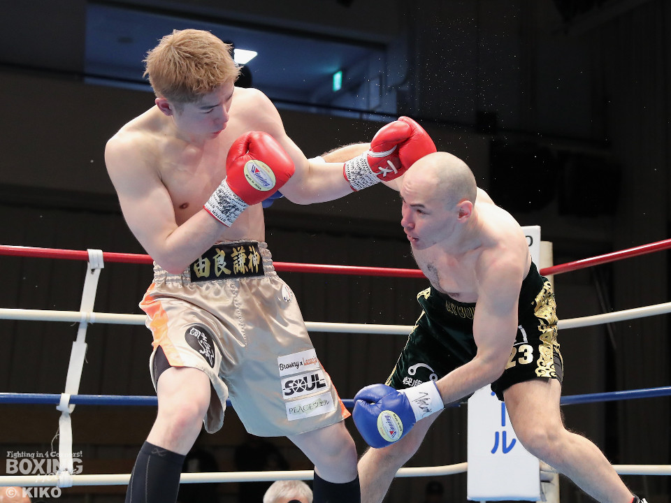 試合:由良がプレスをかけてワンツーから仕掛けるとリターンの右を巧みにブロック。ラウンド終盤には右カウンターでバランスを崩させた。2回、サウスポーにスイッチしたアイボレは力強い左ストレートを繰り出すが、由良はバックステップとガードで対応。左ボディで警戒させつつリターンの右ストレートでダウンを奪った。3回、プレスを強めた由良は、左ボディを軸に体力を削る作戦。アイボレは苦しくなってきた。4回も由良は攻撃の手を緩めず、ジワリジワリと攻め立てて着実にダメージを与えた。勝負が決まったのは5回、由良はカウンターの右ボディストレートで2度目のダウンを奪取。キャンバスにうずくまったアイボレを見てレフェリーはノーカウントでストップした。5戦全勝(4KO)とした由良は、試合後のフラッシュインタビューで日本人選手との対決を熱望した。