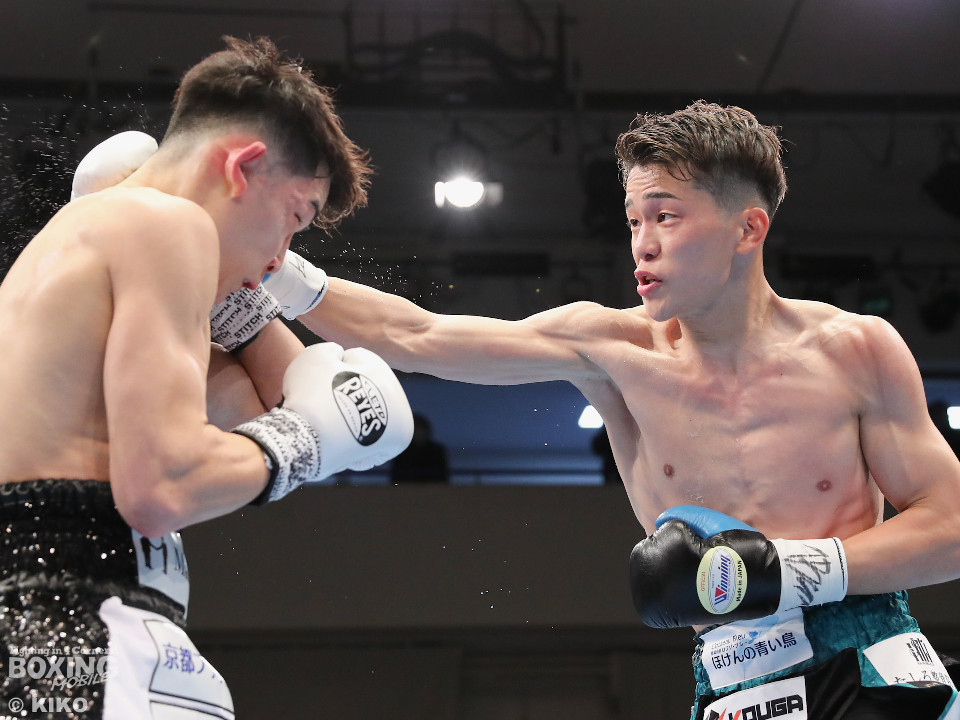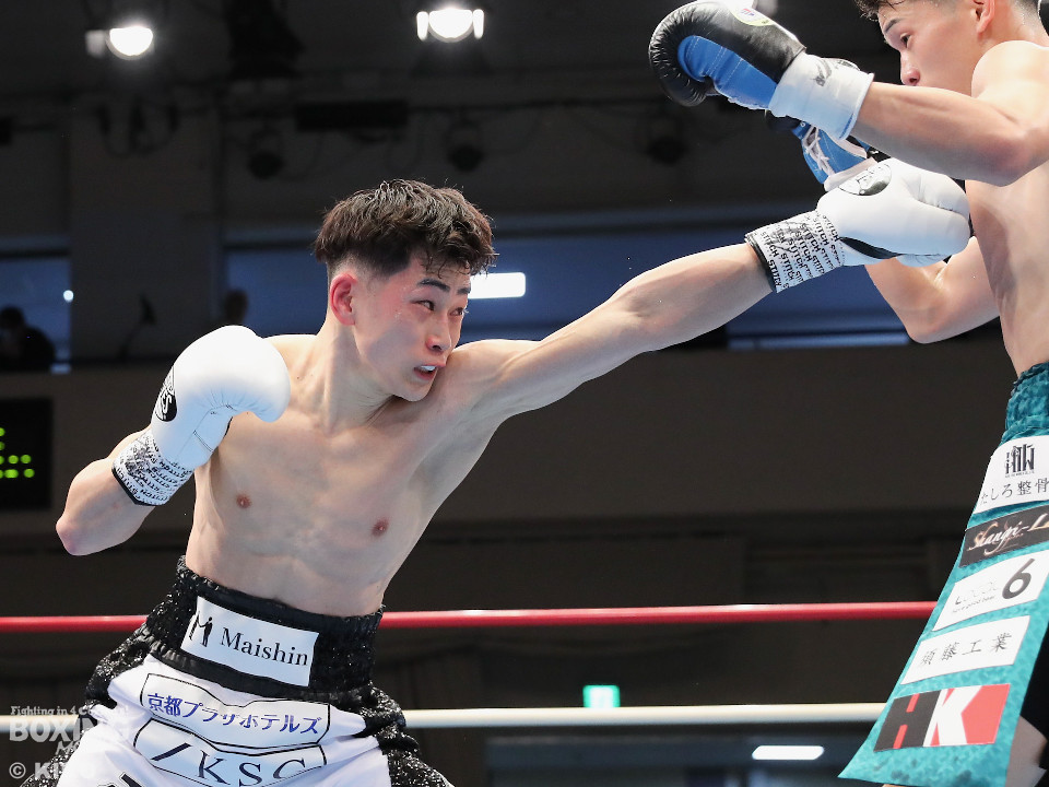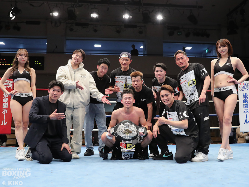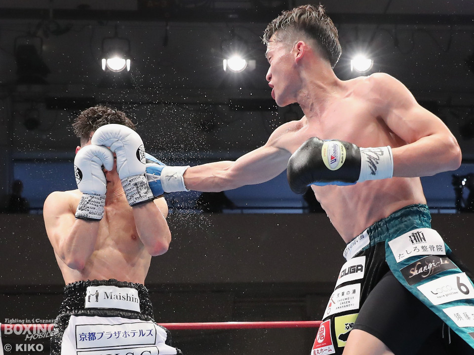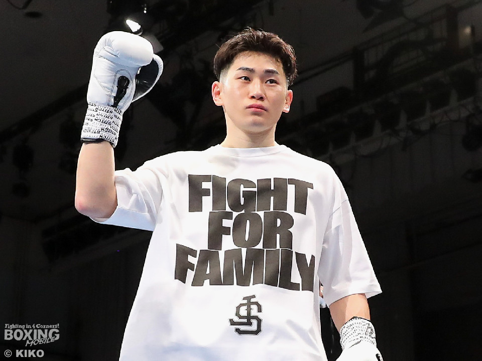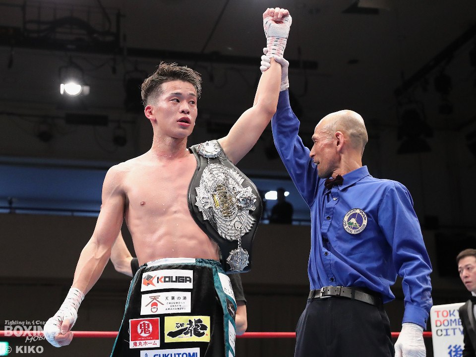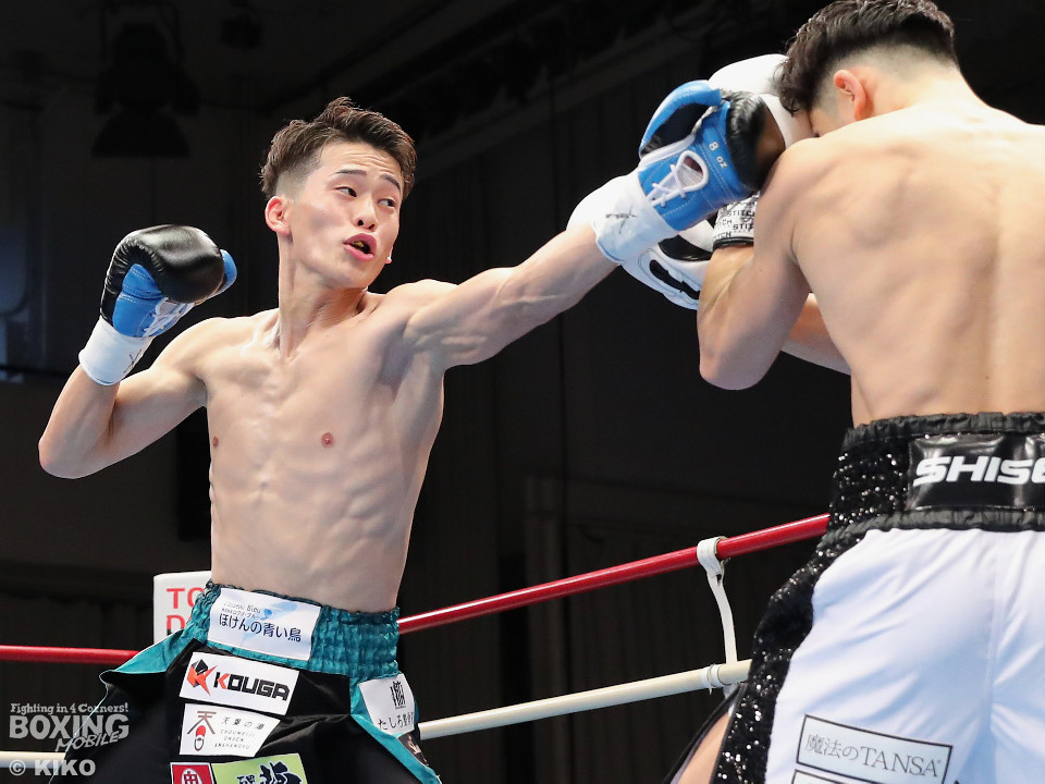 試合:空位の日本フェザー級王座を岡本と嶋田が争った。岡本が前の手で揺さぶりをタイミングを探るのに対し、嶋田は真っすぐな左で対抗。2回、岡本はジャブを上下に散らすと右オーバーハンドで脅かす。3回、岡本は右アッパーで腰を沈めさせると右オーバーハンドを好打。攻め急がずジャブから組み立てた。4回、嶋田は距離を詰めて右ボディストレートから切り込むが、岡本は足を使いながら的を絞らせず。5回も岡本はシャープなジャブから左フックにつなげて見栄えの良さをアピール。前半終了時の公開採点は49-46×2、50-45×1で岡本がリード。6回、嶋田はプレスを強めてワンツーを繰り出し反撃。しかし、岡本は慌てる素振りを見せずジャブをヒット。続く回も岡本のラウンド。サークリングしながら折々でワンツーを好打しポイントを加点。8回、嶋田はプレスをかけてワンツーを好打。この試合に懸ける思いを見せた。9回、岡本は距離が詰まるとクリンチで遮断。ジャブを軸にアウトボクシングを遂行。10回、嶋田は右フックをねじ込み逆転を狙うが、相手の足を止めるまでには至らず。岡本のジャブが冴えわたった。この日、誕生日を迎えた岡本が新チャンピオンに輝いた。