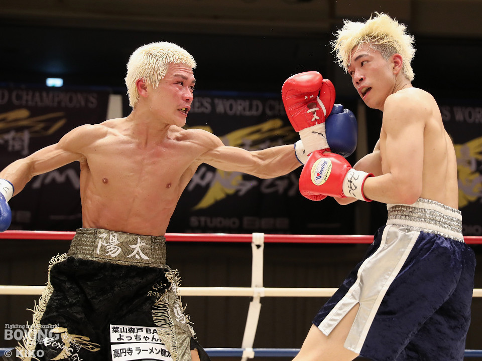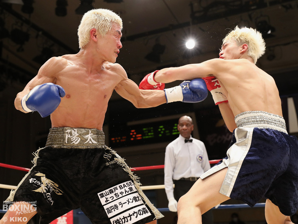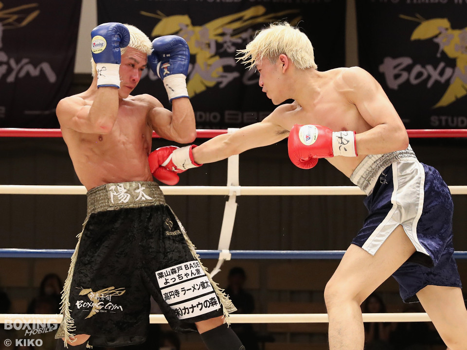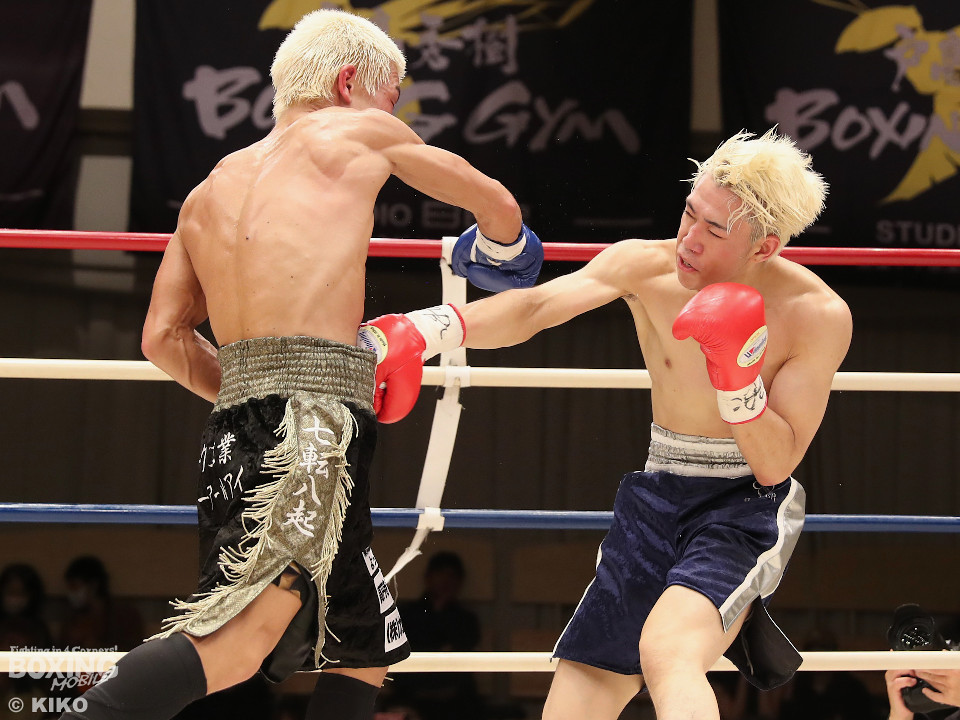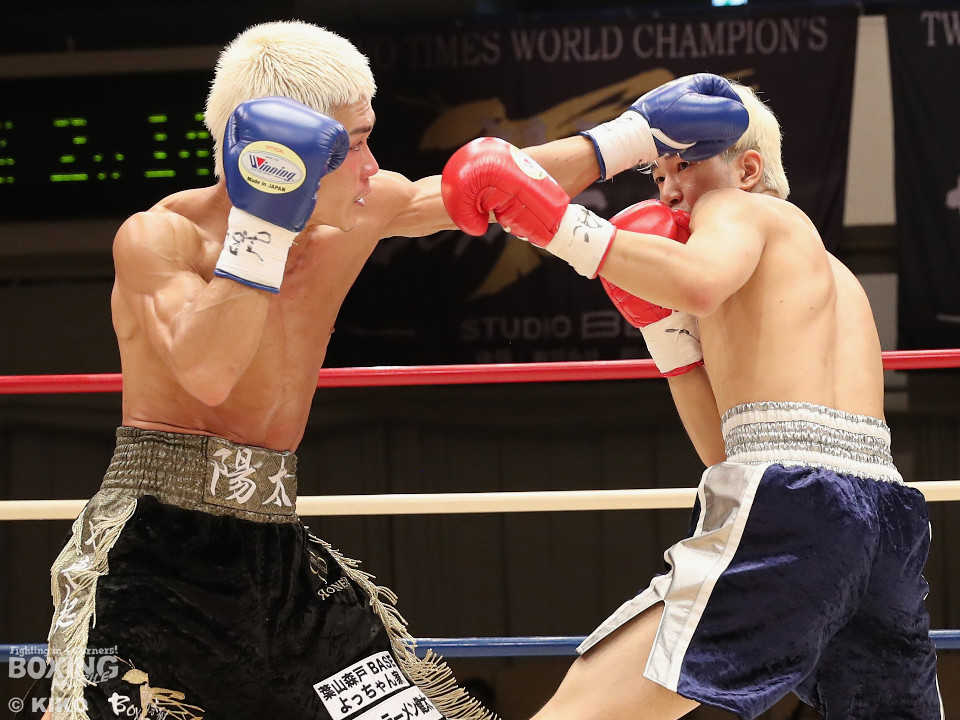 試合:渡邉が足を使いながらジャブを飛ばして距離をキープ。2回、三原はプレスを強めて右フックで顔を弾くと積極的な攻撃。3回、三原は右ショートでガクッと腰を沈めさせると、アグレッシブな姿勢。渡邉は要所で右ストレートを返した。4回、渡邉は右カウンターで左目下を切り裂くとレフェリーはドクターチェックを要請。ザックリと切れており、これ以上の試合続行を不能としたレフェリーがストップ。渡邉が連敗脱出に成功した。