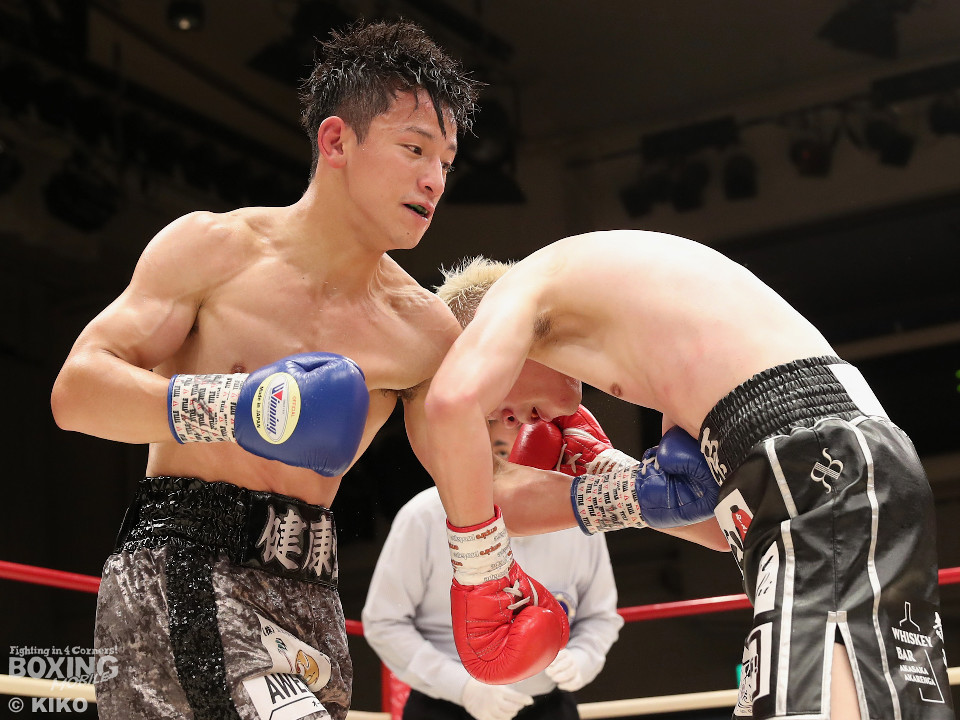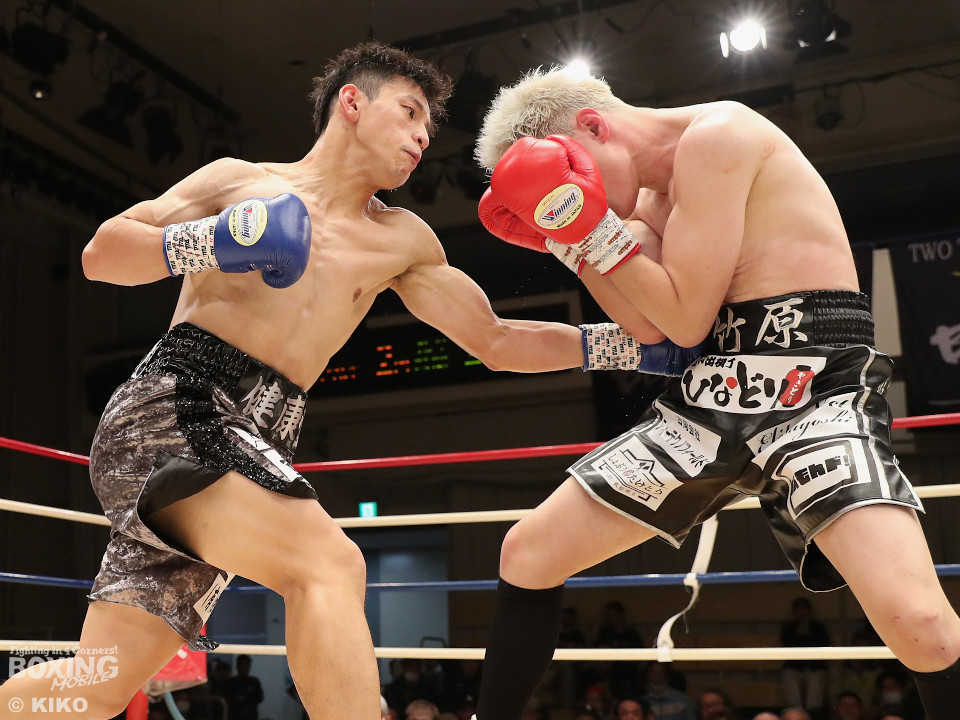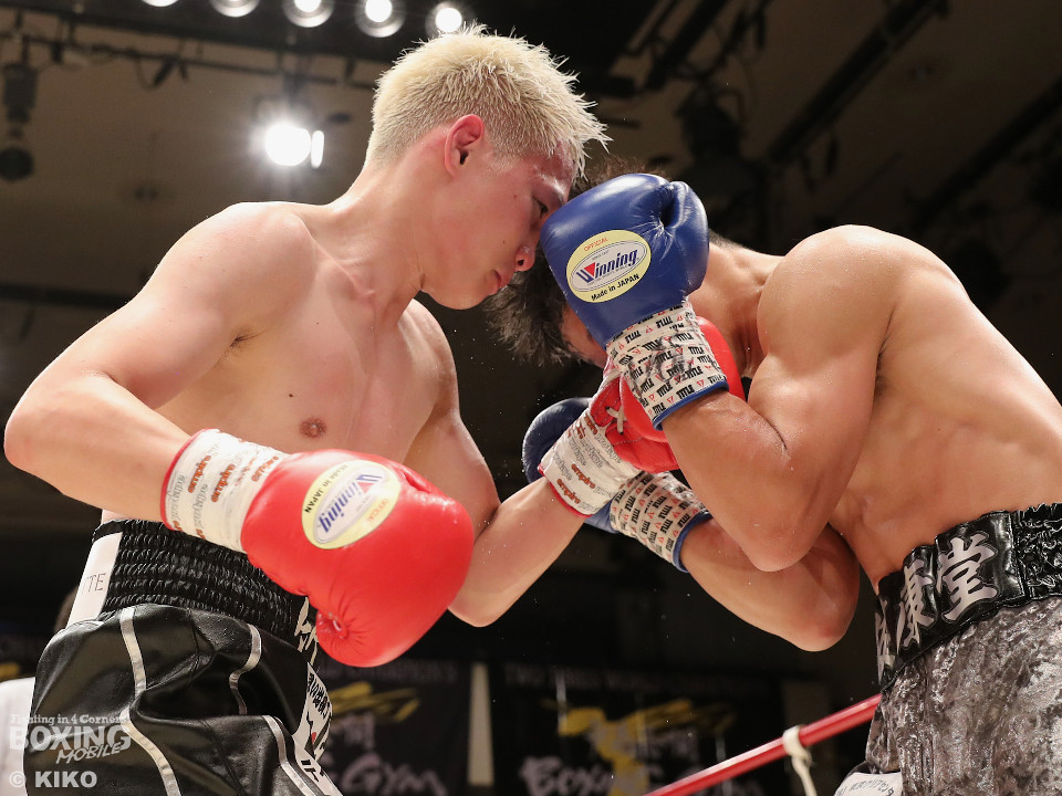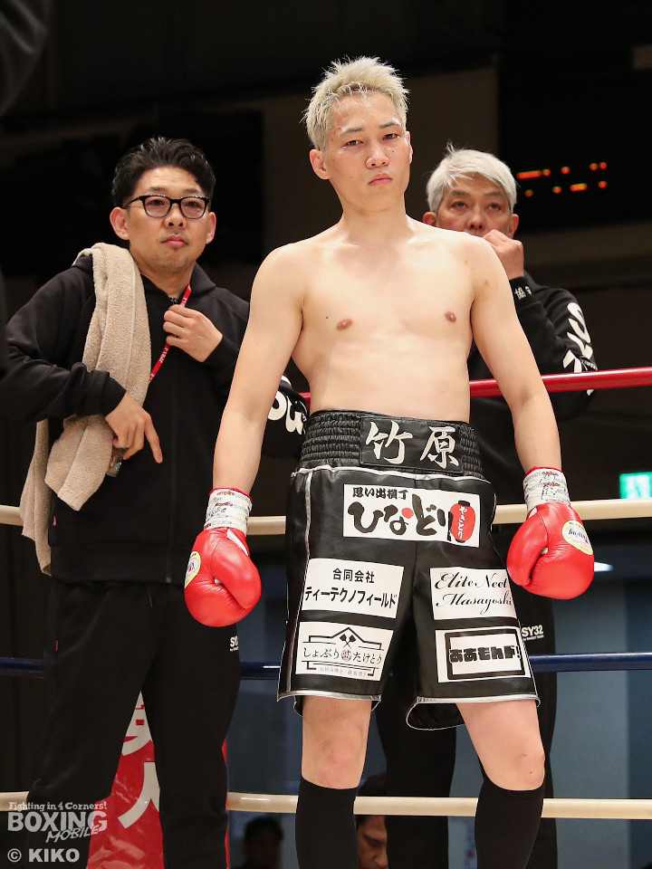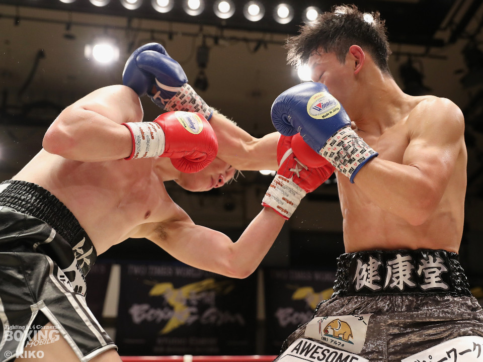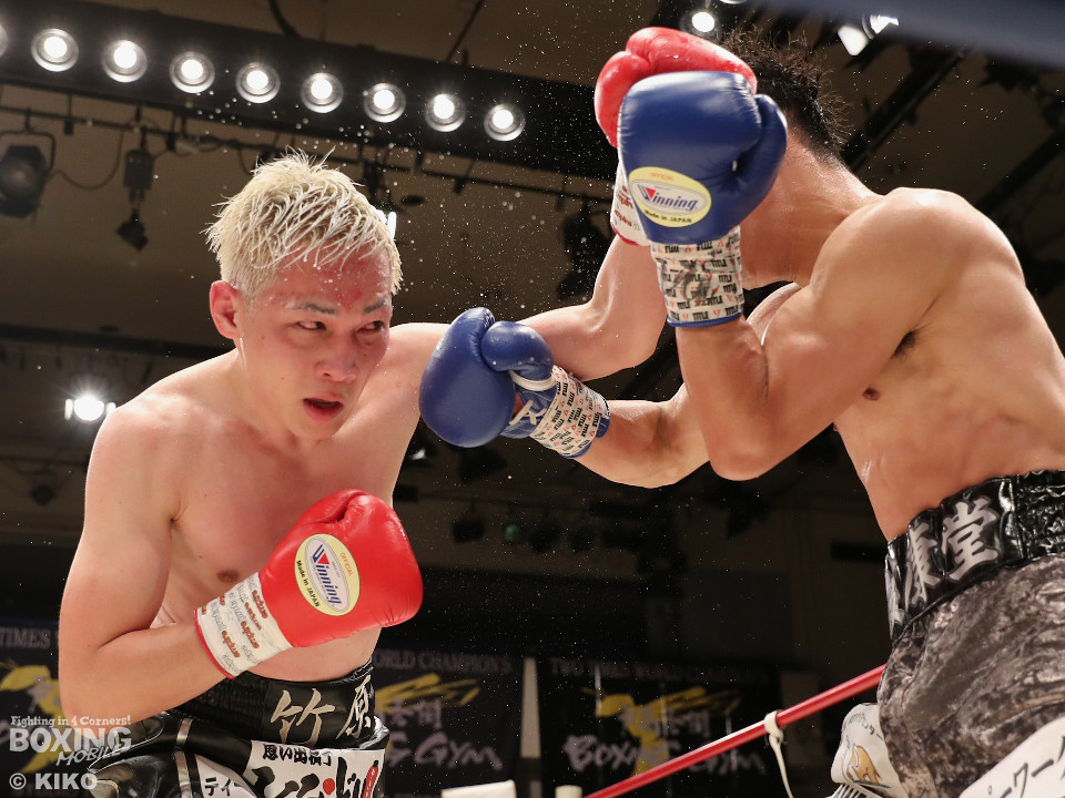 試合:サウスポー対決は、森が上下に揺さぶりをかけながら右フックを好打。バランスを崩した竹原に対し、ジワリジワリと攻め立てた。2回、森は左オーバーハンド、右アッパーを決めて攻勢。守勢を強いられた竹原は3回、右ボディから手数を増やして反撃。4回、森は上下に打ち分けると、サイドに回り込み見栄えの良さをアピール。5回、竹原は距離を潰して細かくまとめるが、森は機動力を活かしたボクシングを展開。6回、竹原の右ボディが効果を発揮してくる。しつこく前進しながらコツコツと当てた。7回、竹原は押し込みながらなりふり構わず右ボディ、右フックをヒット。森はクリンチで流れを切った。8回、森はサークリングしながらジャブを軸に組み立てるとワンツー、右ボディで攻勢を印象付けた。ジャッジに委ねられた採点は三者三様の引きわけで決着がつかなかった。