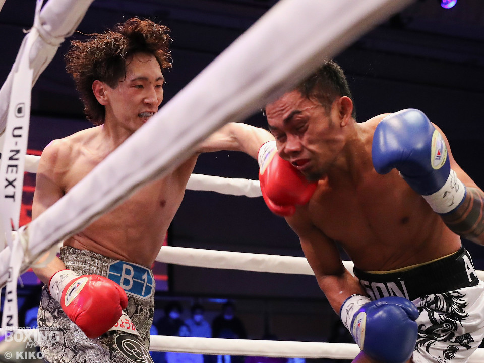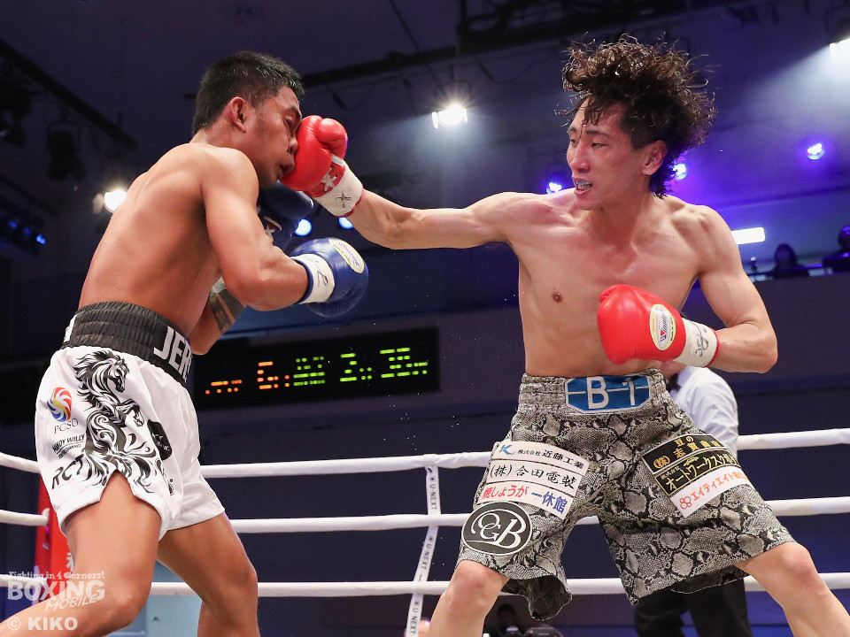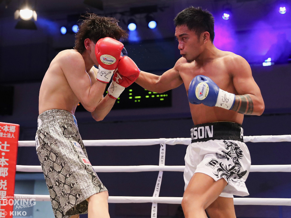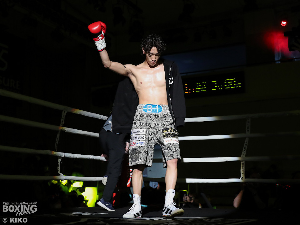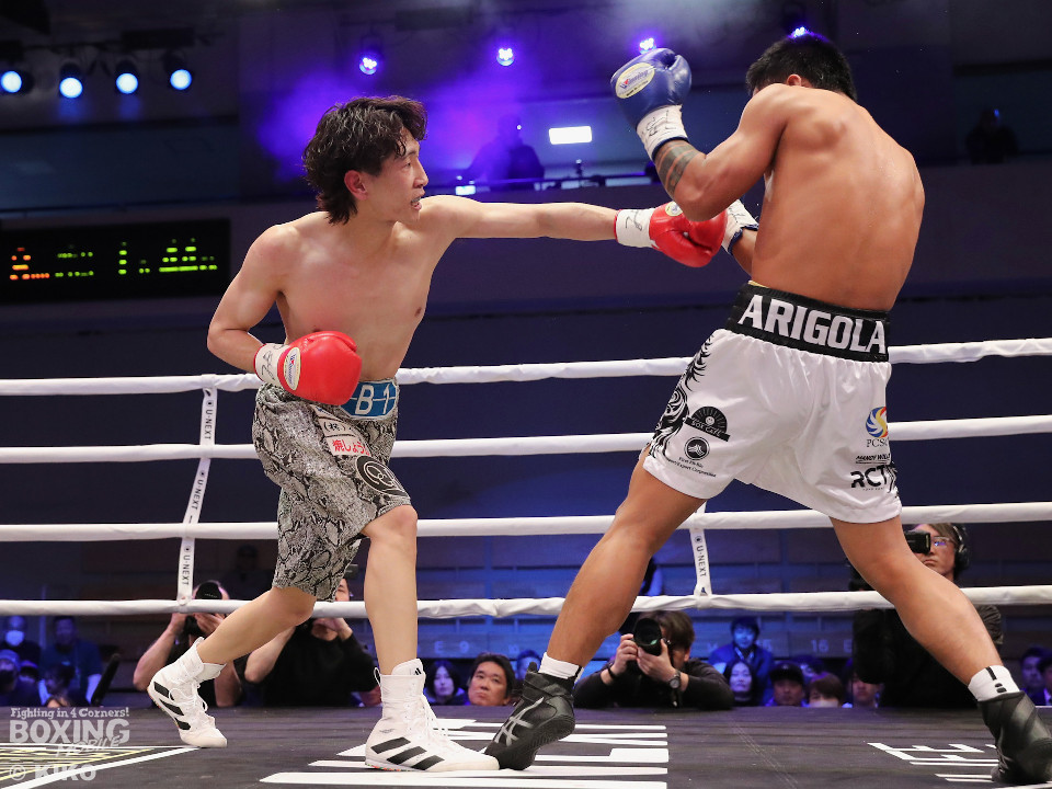 試合:元日本ランカー落合の再起戦。サウスポースタイルからジャブで距離を計り、上下にパンチを放つ、対するアリゴラはガードを固め、左右のフックを強振し対抗。2回、アリゴラがアグレッシブに左右のパンチで攻め、落合は冷静に打ち終わって応戦。試合中盤は、アリゴラがプレスをかけ左右の強打で攻め、落合は打ち終わりを狙いカウンターで有効打を重ね、主導権の奪い合いを展開。試合が動いたのは6回、落合が左ボディを効かせ左右のパンチをラッシュしダウンを奪う。試合再開直後にコンビネーションでたたみかけ、アリゴラがコーナーで防戦一方となった姿を見て、レフェリーが試合をストップ。落合が再起戦をTKOで勝利した。