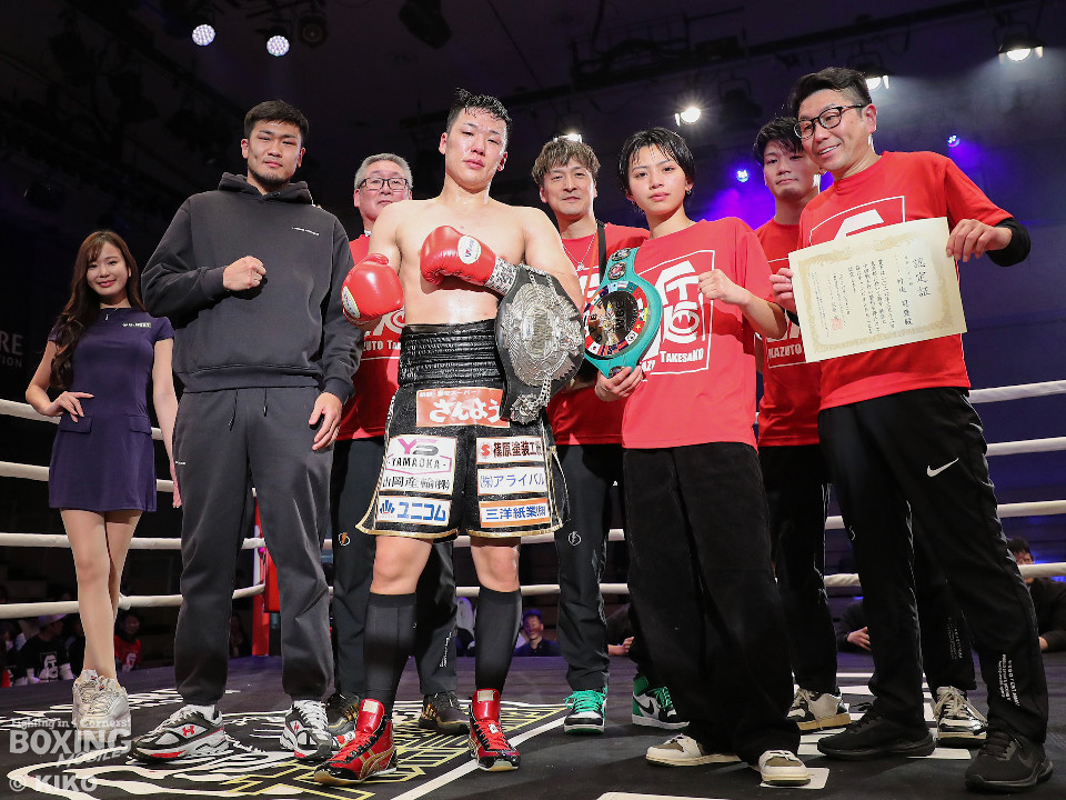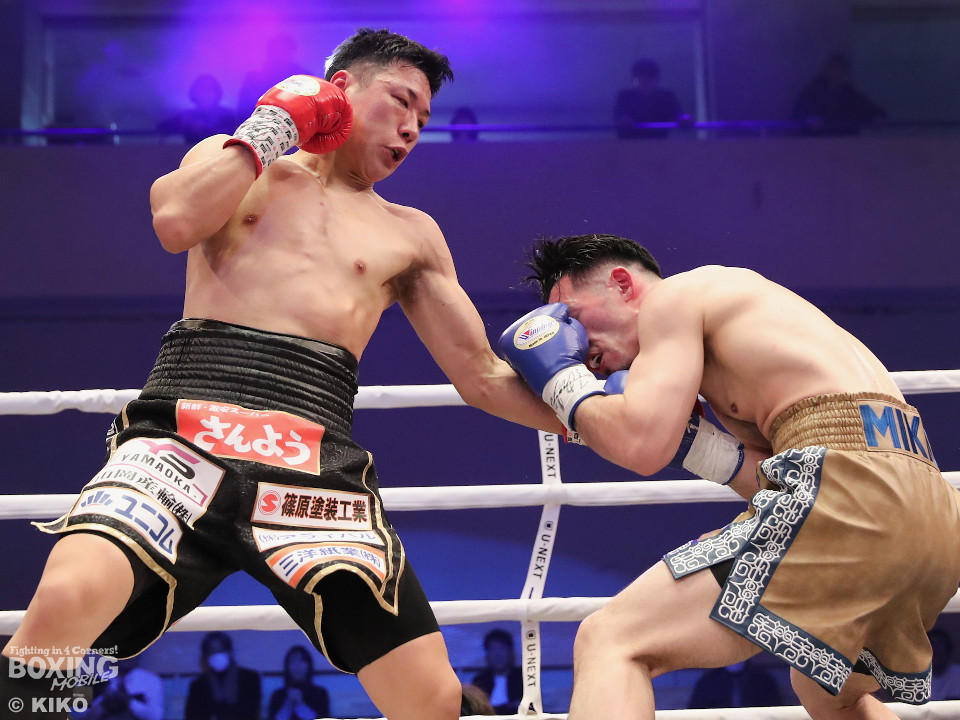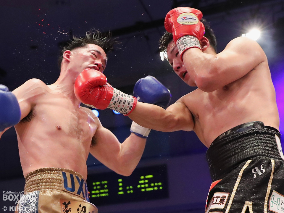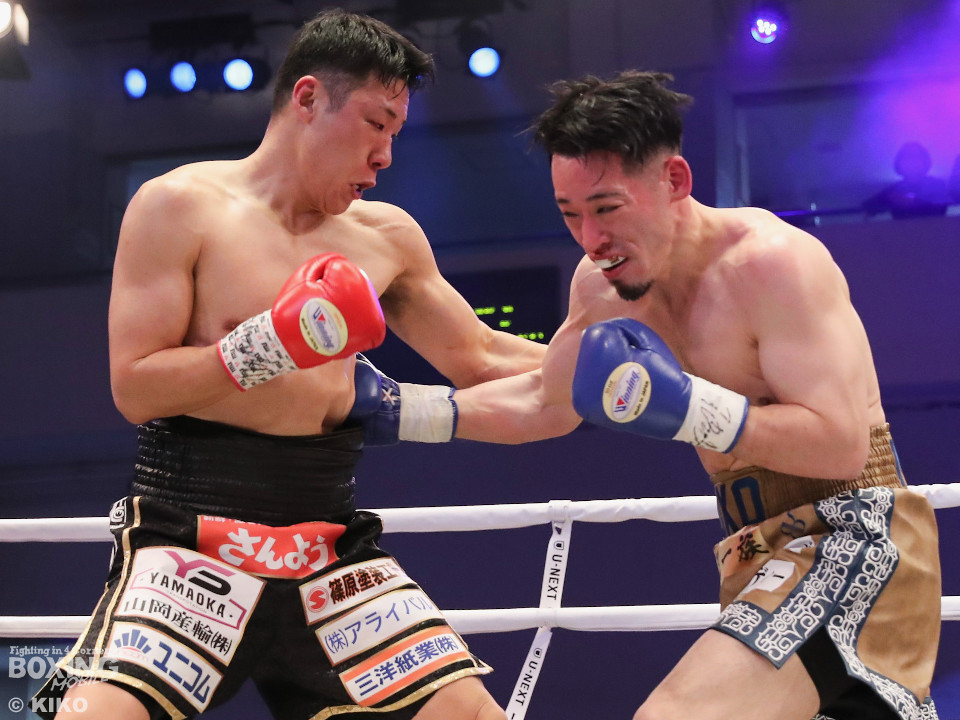 試合:日本ミドル級王座決定戦、元日本王者・竹迫と3度目の挑戦の酒井がベルトを争った。酒井が右オーバーハンドを叩きつけて先に仕掛けると右アッパーをヒットし先制。2回、竹迫はジャブから丁寧な組み立てるとワンツーをヒット。パンチが交錯するスリリングな攻防を繰り広げた。3回、竹迫はプレスを強めて右アッパーをコツコツと決めると右ショートを好打。酒井も負けじと右フックを返した。4回、酒井は要所で右フックを叩きつけて積極性をアピール。5回、竹迫は強烈な右フック、左ボディを好打。前半終了時の公開採点は、48-47×2(酒井)、49-46×1(竹迫)と割れた。6回、竹迫はプレスをかけてワンツーで顔を弾きジャッジに攻勢をアピール。竹迫は偶然のバッティングで右目上をカット。7回、酒井は右ボディストレートを差し込むと懐に入りやりにくさを発揮。8回、酒井の左ボディを突き刺し流れを作るが、竹迫は力強いワンツーで倍返し。9回、竹迫はボディジャブから右アッパーで腰を沈めさせてチャンス到来。酒井はクリンチで窮地を脱した。10回、両応援団の大声援の中、ギアを上げたのは竹迫。右フックを強振するとグイグイと攻め立てた。竹迫が判定勝ちで王座返り咲きに成功した。