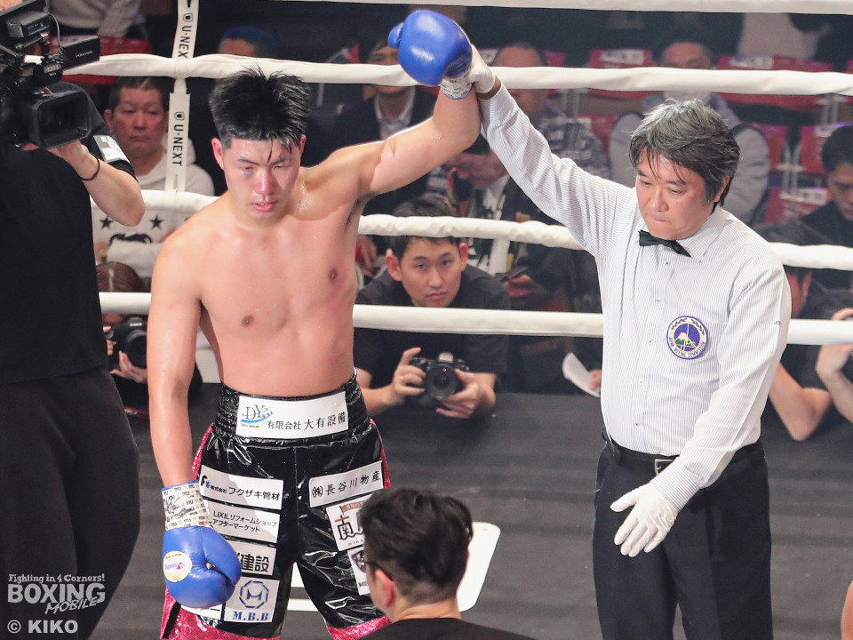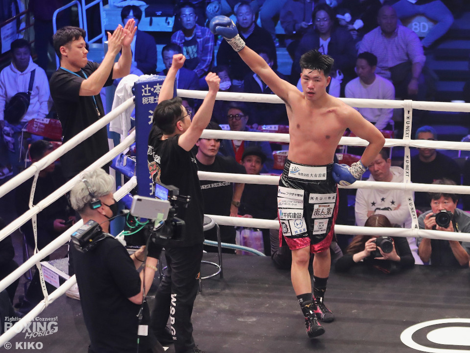 試合:元OPBF東洋太平洋・WBO-APミドル級王者の細川とプロ2戦目の黒部が拳を交えた。黒部がハンドスピードを活かしたジャブを上下に散らして先制攻撃。2回、黒部はトントンとリズミカルに打ち込むが細川は打ち終わりに左フックで顔を弾く。3回、黒部は左ボディで迎え撃つと出入りを活かしたボクシングを展開。4回、体が密着する場面が多い中、黒部が要所でワンツー、右アッパーを好打。5回、距離がかみ合わず、もみ合いが続く中、細川がコツコツと集めて試合巧者ぶりを発揮。6回、混戦状態でジャッジ泣かせの展開。8回、黒部は打ち下ろしの右ストレートで迎え撃つと前に出てくる細川に対し我慢強く戦った。ジャッジ2者の支持を得た黒部がランカーを撃破した。
