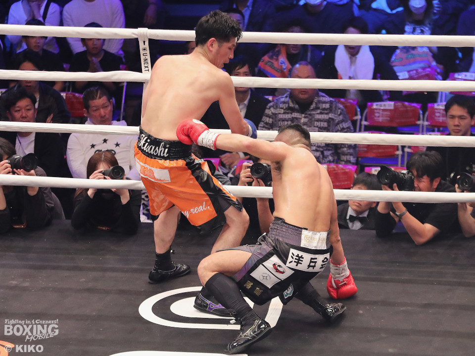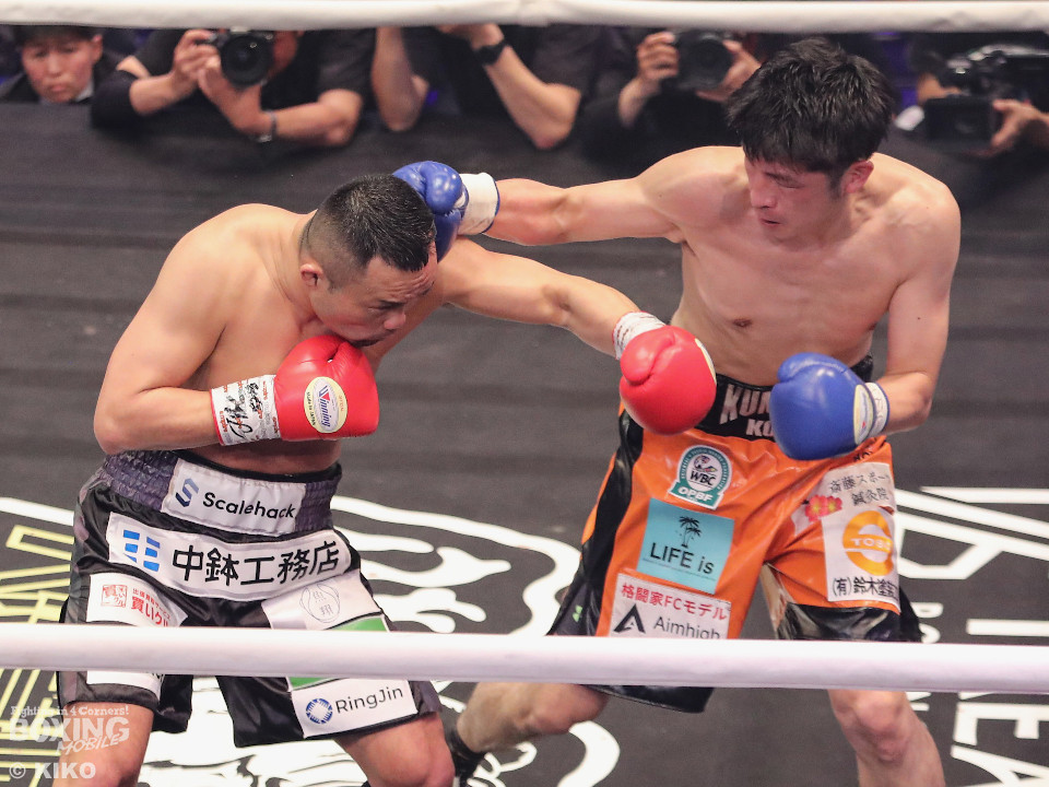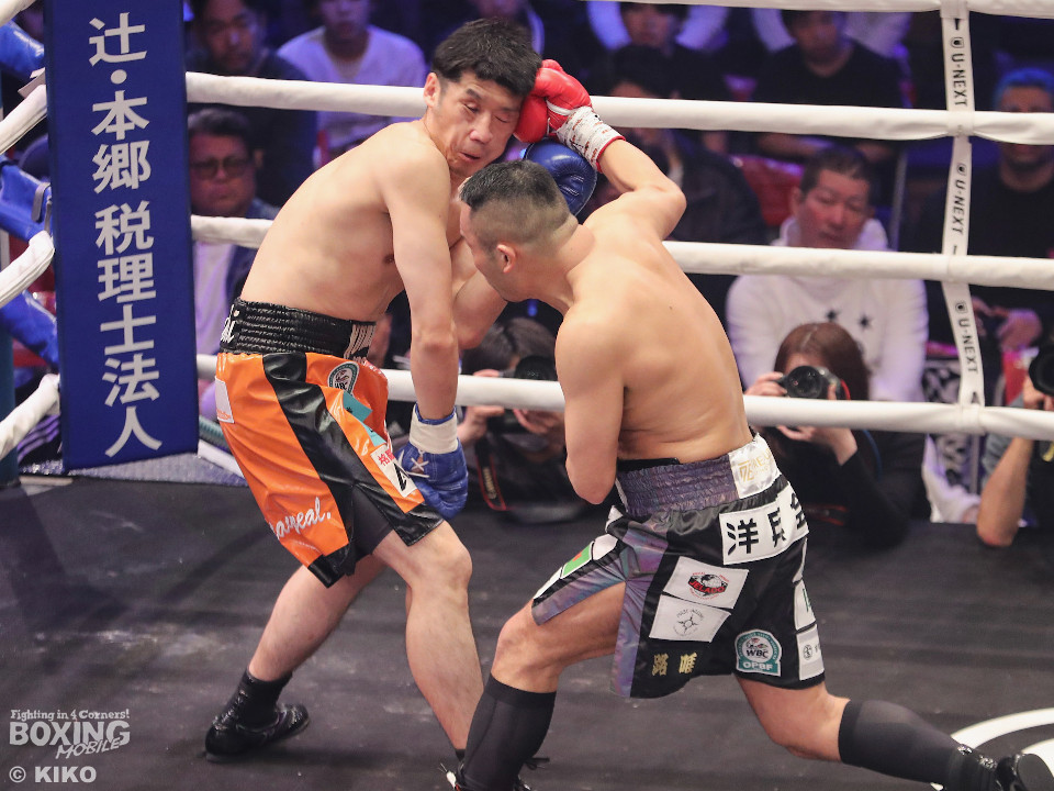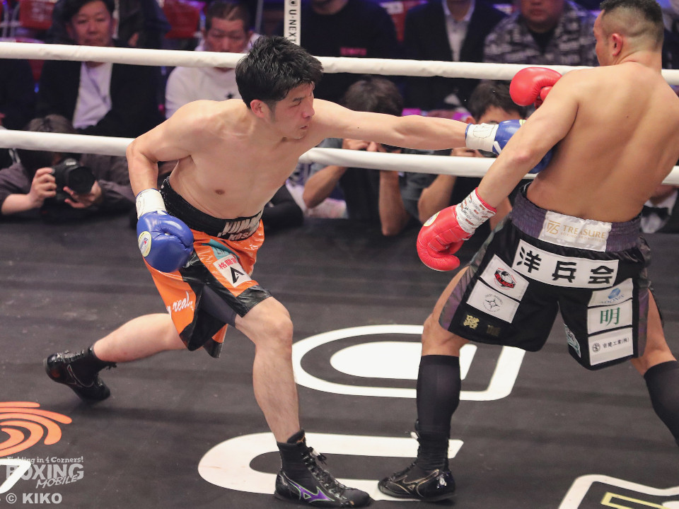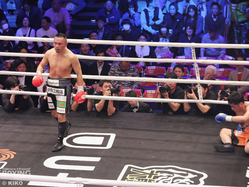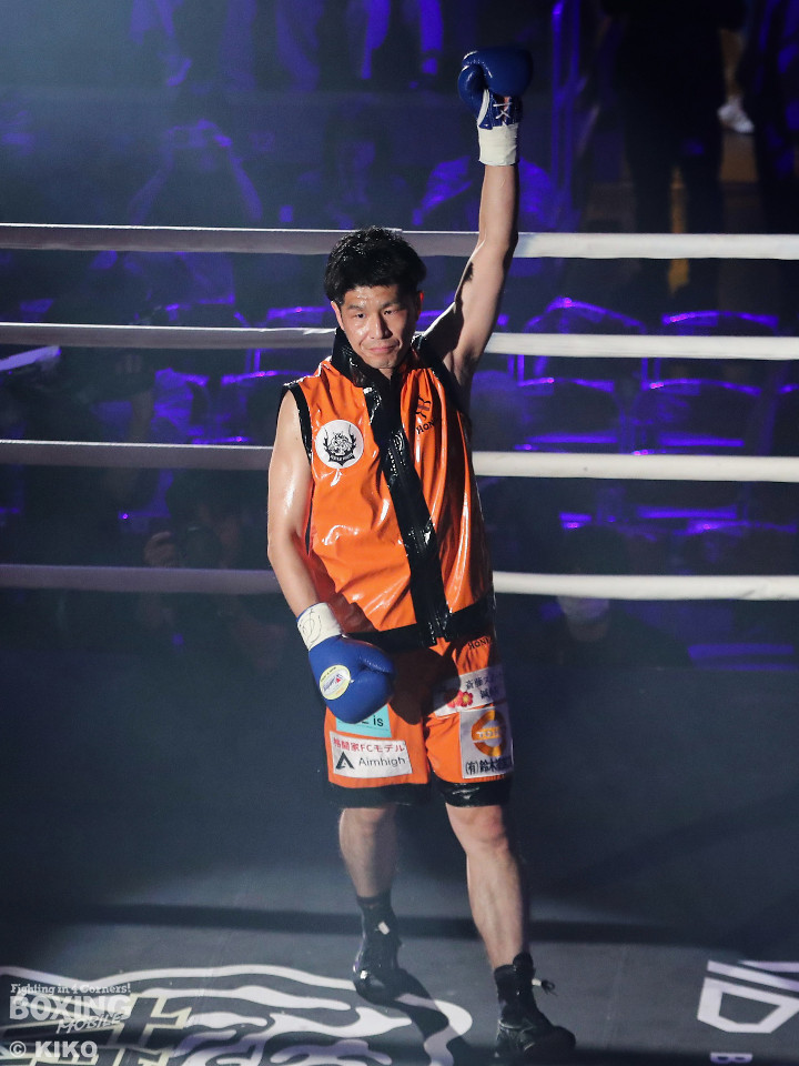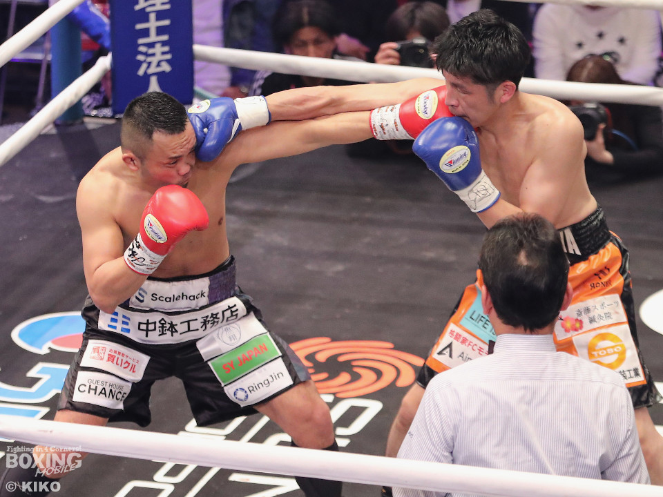 試合:OPBF東洋太平洋スーパーウェルター級王者の緑川がベテラン加藤を迎え撃った。初回、サウスポー加藤がサークリングしながらジャブを飛ばすのに対し、緑川はジリジリと距離を詰めて様子を伺った。2回、緑川は右ストレートでダウンを先取。再開後、加藤は足を使いながら立て直しを図った。4回、加藤は左ストレートを決めるとサイドに回り込んでやりにくさを発揮。4回、緑川は右ボディストレートで動きを止めに行くとワンツーを好打。5回、加藤が緩急をつけて積極的に攻めるが、緑川は右フックで2度目のダウンを奪取。仕留めにいくがここで加藤の左カウンターが炸裂!起死回生のダウンを奪う!倒し合いに会場は盛り上がりを見せた。前半終了時の公開採点は、49ー45×3で緑川がリード。6回、緑川がノーモーションの右で顔を弾くが加藤はワンツーで膝を揺らして意地の攻撃。7回、緑川はワンツーで左目上を切り裂くと連打で攻勢。ここがチャンスだとばかりにパンチをまとめると右ストレートでグラつかせてレフェリーストップに持ち込んだ。39歳緑川が王座防衛に成功した。
