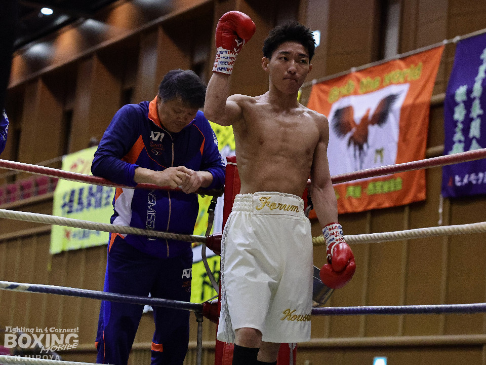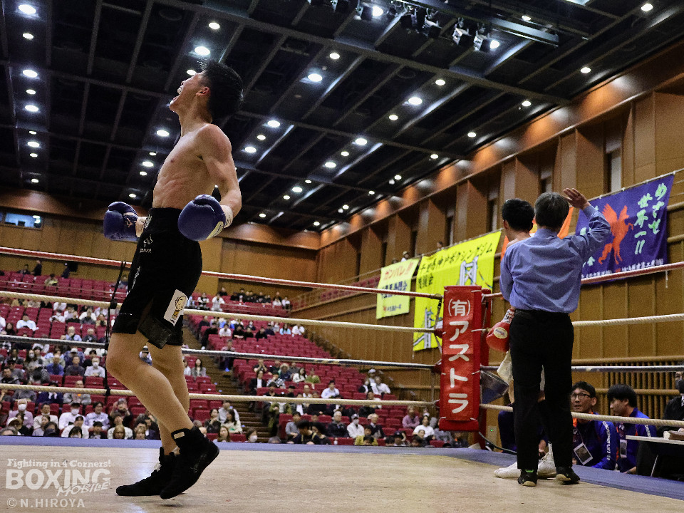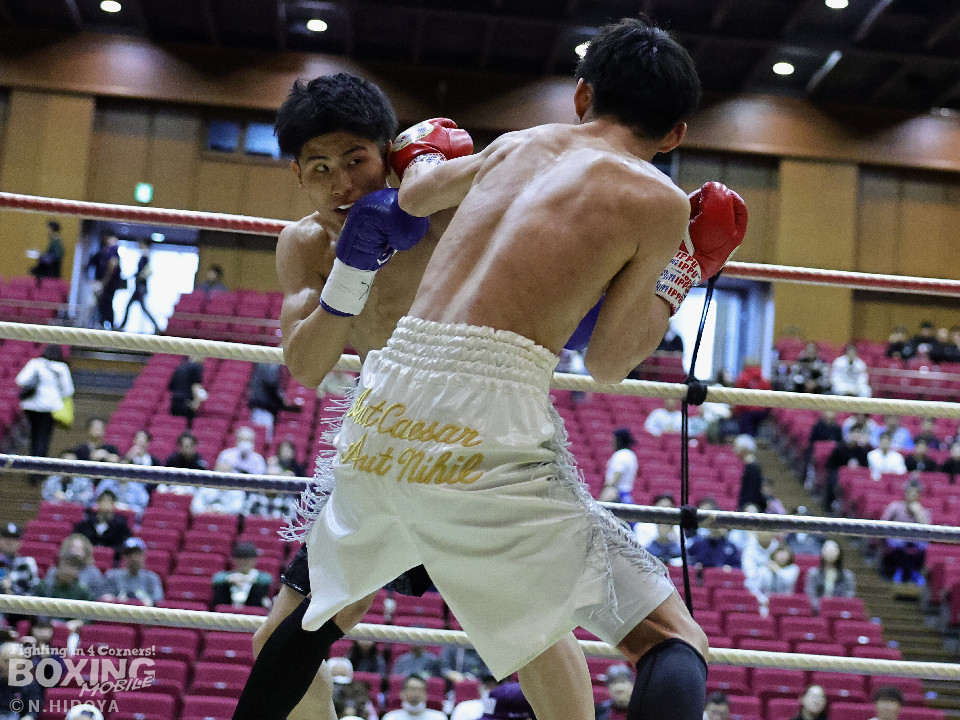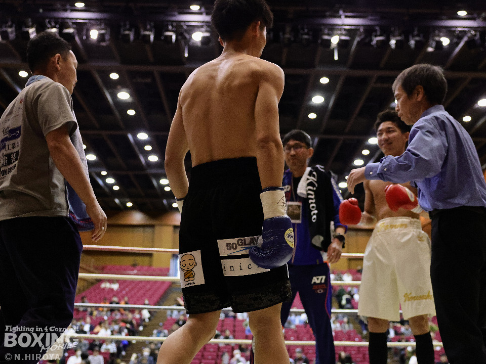 試合:序盤から激しい打ち合いを展開。大木が右ストレートを打ち込めば、柳生は左のリターンで顔面を弾く。3回、柳生がプレスをかけ上下に打ち分け、対する大木もタイミングを合わせコンビネーションを返す。途中、偶然のバッティングにより左目尻をカットした大木に焦りが見え、チャンスと見た柳生がラッシュを仕掛ける。防戦一方となった大木を見て、レフェリーが試合をストップ。勝負どころを逃さなかった柳生がTKO勝利。