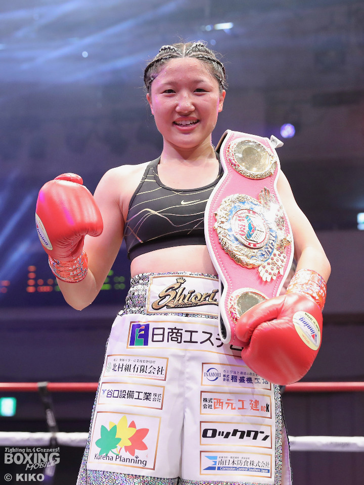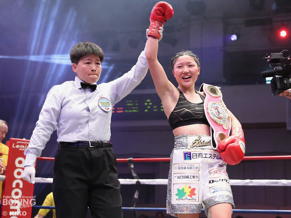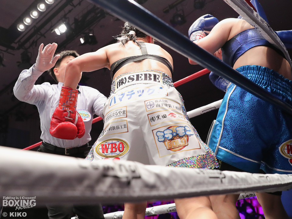 試合:四元がワンツー、右アッパーで突き放しにかかるのに対し、鎌田はガードを固めながら左ボディで対抗。2回、ショートレンジでの打ち合い。四元が左アッパーで顔を弾けば、鎌田もしつこく食い下がる。見栄えの点で四元が上回った。3回、四元がワンツー、インサイドからのアッパーでポイントを加点。4回、打ち合いは激しさを増す中、鎌田はヒッティングで左目下を負傷。5回、鎌田はプッシュしながら左ボディを叩き体力を削る作戦。6回、お互いの気持ちが真っ向から激突。四元は左アッパー、左フックを好打。必死に打ち返した鎌田だが疲弊してきた。7回、四元はコーナーに押し込んで連打で攻勢。防戦一方になった鎌田を見てレフェリーが割って入った。四元が3戦目でWBOアジアパシフィック・アトム級新チャンピオンに輝いた。
