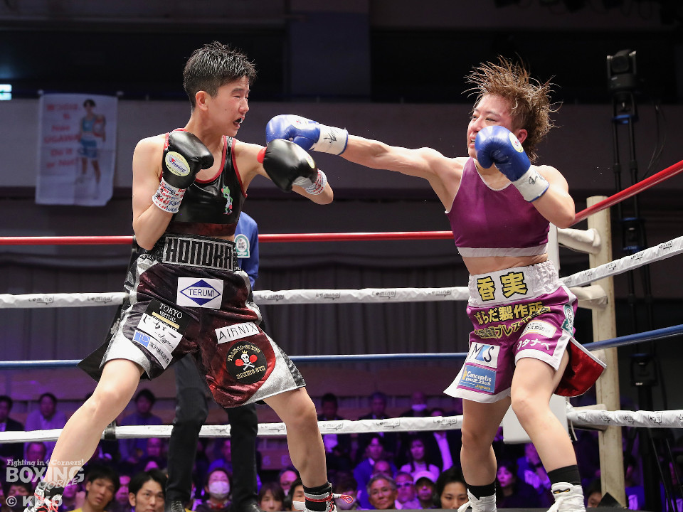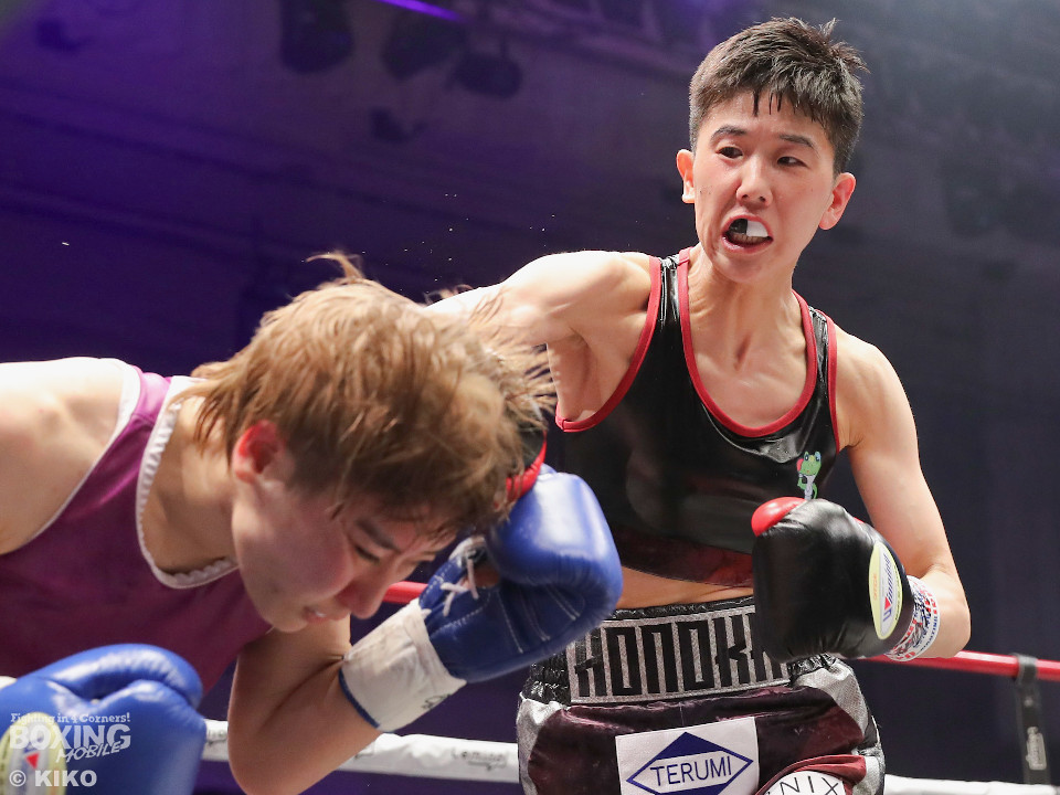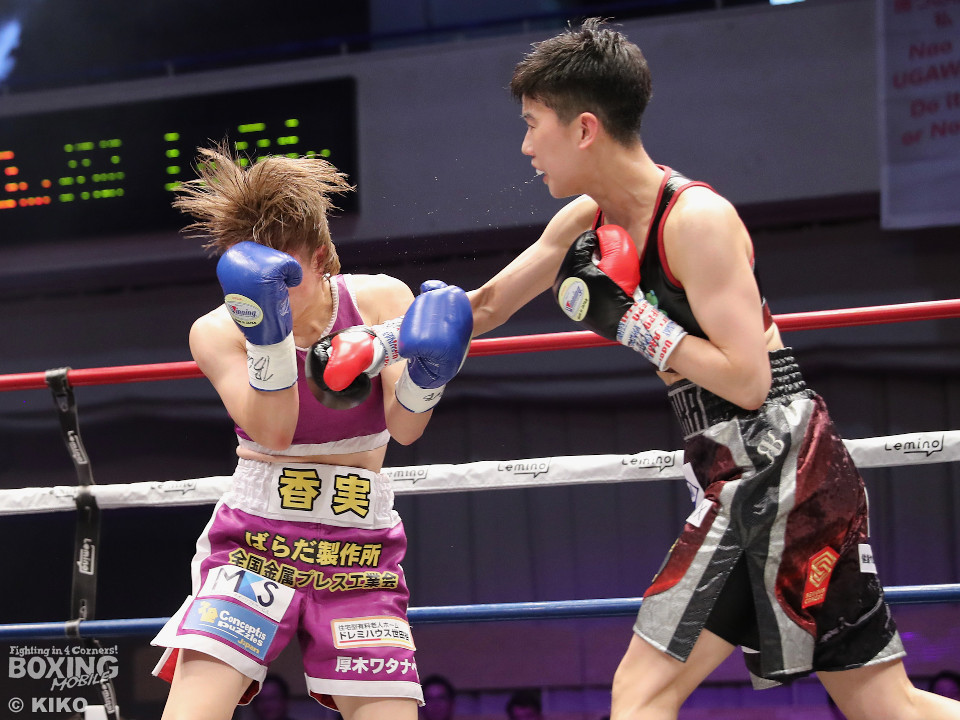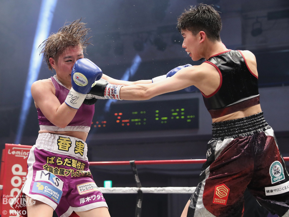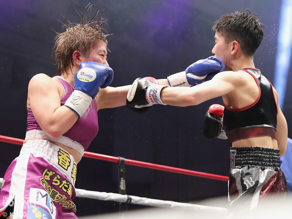 試合:OPBF東洋太平洋アトム級王者の狩野が新鋭・佐藤を迎え撃った。狩野がガードを固めながらジャブで出鼻を挫き先制を。2回、佐藤は左右に揺さぶりをかけながら相撃ちの右を狙うが、距離が遠くあと一歩が届かず。3回、狩野はワンツーで顔を弾くと右フックでダウンを先取。再開後、残りタイムを確認しつつジワリジワリと攻め立てた。4回、佐藤は気持ちを切らさず右を繰り出すが、狩野は冷静に対応。ワンツーを軸にペースを維持した。前半終了時の公開採点を40ー35×3でリードした狩野は、距離をキープしながらワンツーをヒット。6回も狩野のラウンド。左ボディで下を意識させつつ、大胆な右オーバーハンドを叩きつけた。7回、狩野は手数を増やして仕留めに行くが、佐藤も単発の右フックをねじ込み意地を見せた。8回、狩野は攻撃の手を緩めず。グイグイと攻め立てたが佐藤も最後まで食い下がった。狩野がフルマークの判定勝ちで3度目の防衛した。