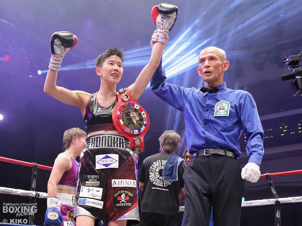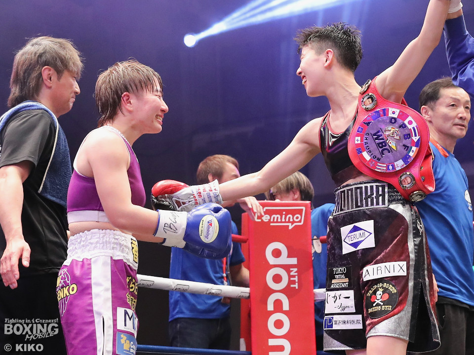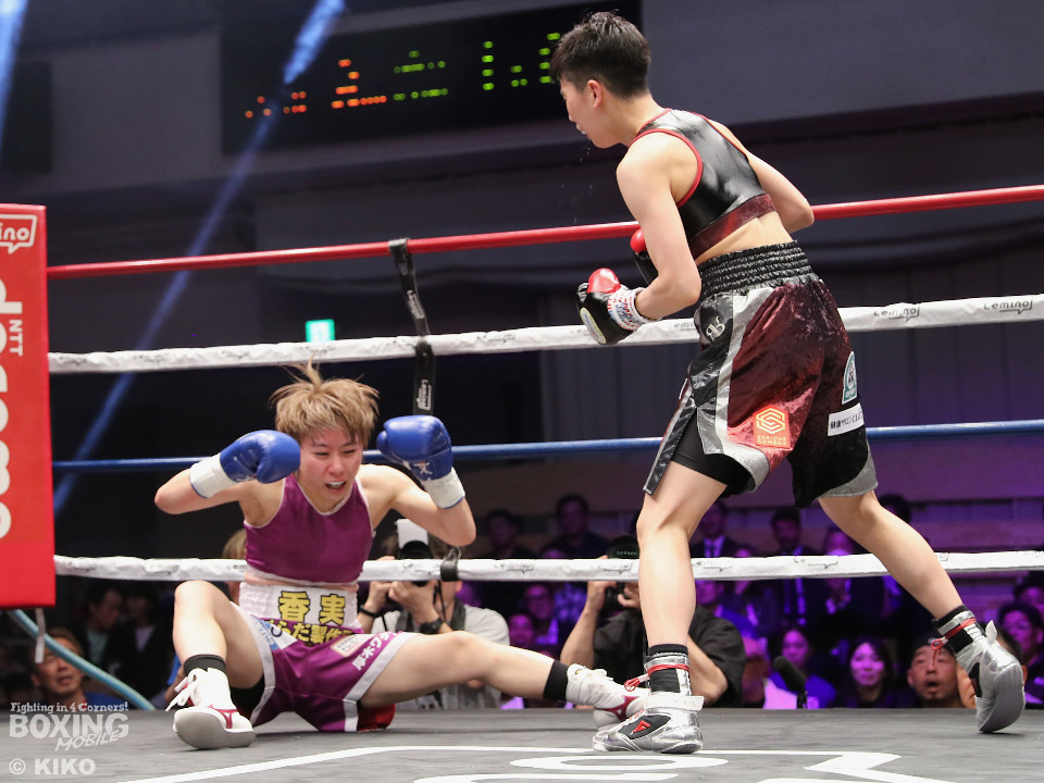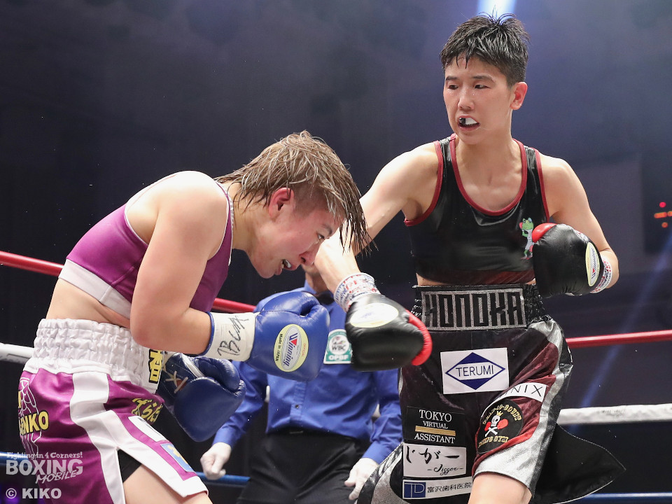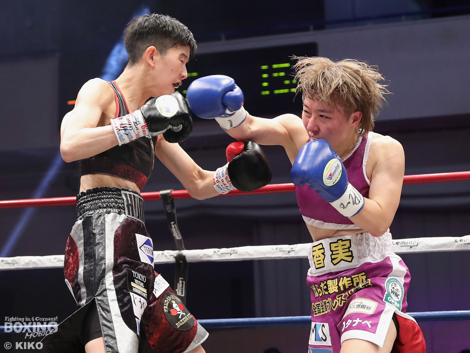 試合:OPBF東洋太平洋アトム級王者の狩野が新鋭・佐藤を迎え撃った。狩野がガードを固めながらジャブで出鼻を挫き先制を。2回、佐藤は左右に揺さぶりをかけながら相撃ちの右を狙うが、距離が遠くあと一歩が届かず。3回、狩野はワンツーで顔を弾くと右フックでダウンを先取。再開後、残りタイムを確認しつつジワリジワリと攻め立てた。4回、佐藤は気持ちを切らさず右を繰り出すが、狩野は冷静に対応。ワンツーを軸にペースを維持した。前半終了時の公開採点を40ー35×3でリードした狩野は、距離をキープしながらワンツーをヒット。6回も狩野のラウンド。左ボディで下を意識させつつ、大胆な右オーバーハンドを叩きつけた。7回、狩野は手数を増やして仕留めに行くが、佐藤も単発の右フックをねじ込み意地を見せた。8回、狩野は攻撃の手を緩めず。グイグイと攻め立てたが佐藤も最後まで食い下がった。狩野がフルマークの判定勝ちで3度目の防衛した。
