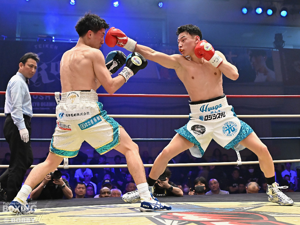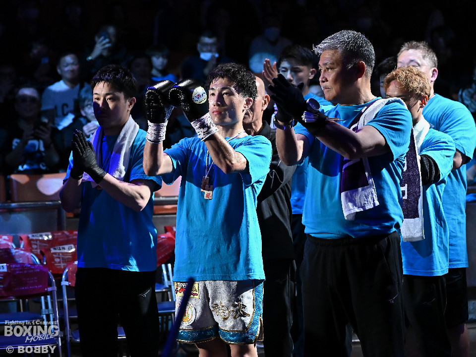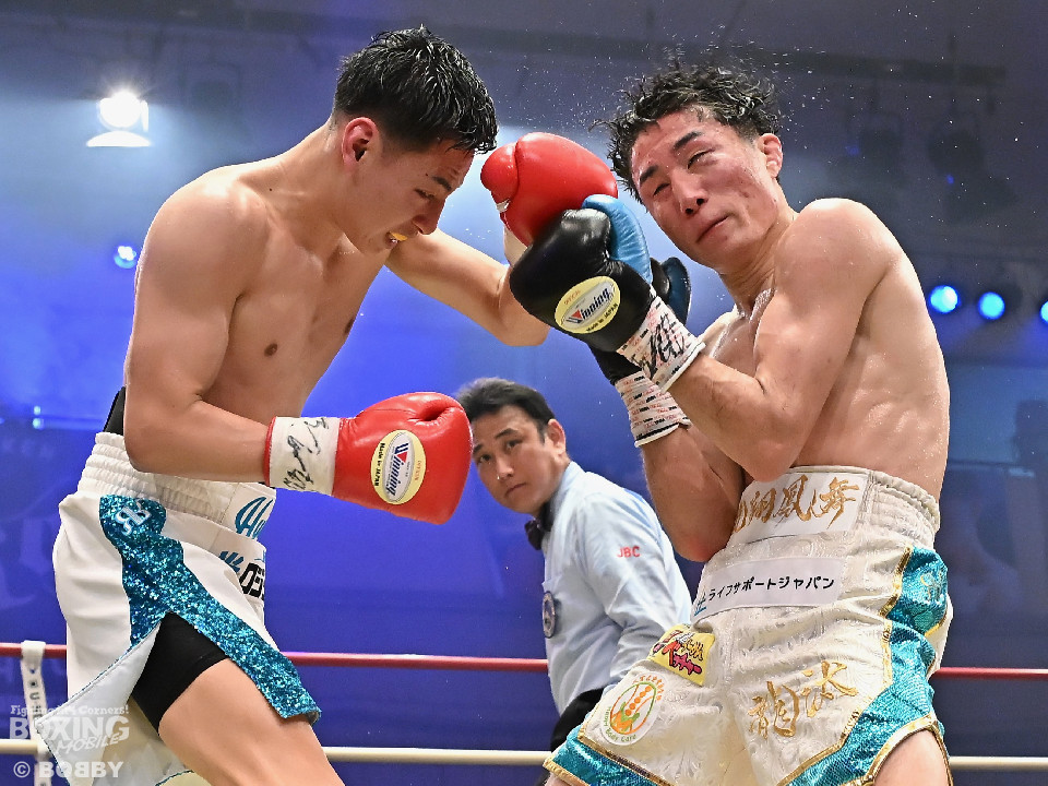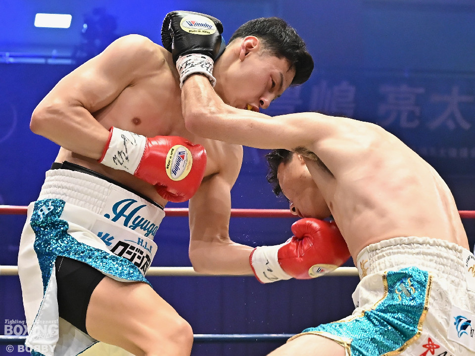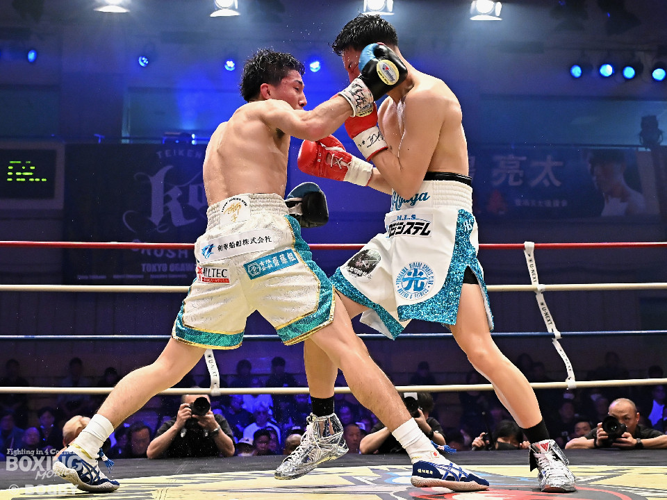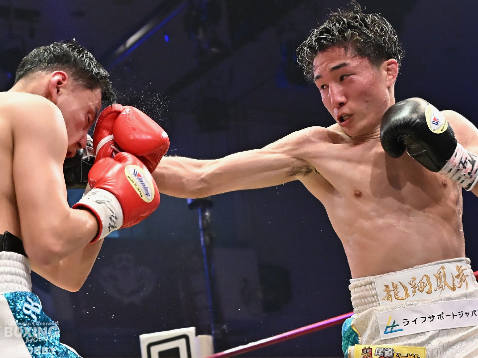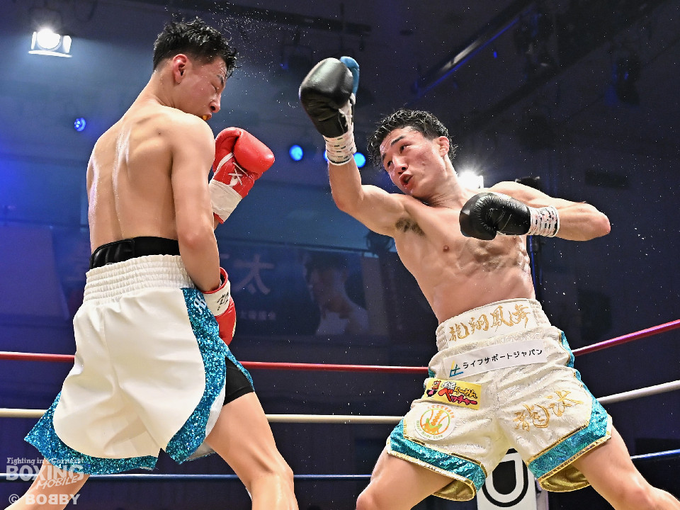 試合:日本ユース・ライトフライ級王者の大木がライオンズジムのホープ末國を迎え撃った。サウスポー同士の一戦は、ジャブの差し合いからスタート。末國の左クロスが浅くヒット。2回、神経戦が続きお互いにクリーンヒットが奪えず。3回、末國はリターンの右フックを決めると出入りを意識しながらテンポアップ。4回、大木はステップインからのワンツーを好打。ガードで決定打を回避した末國だがこのラウンドは大木が優勢。前半終了時の公開採点は、三者三様。6回、大木は距離を潰してボディ攻撃で体力を削る作戦。7回、末國はインサイドからのショートアッパーで見栄えの良さをアピール。ラウンド終盤は左ストレートを交錯させて会場を盛り上げた。8回、末國は右フックをねじ込むと返しのパンチをボディワークで回避した。ジャッジ2者の支持を得た末國が2戦目で新チャンピオンに輝いた。