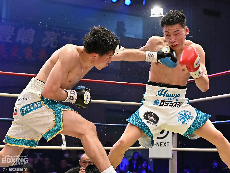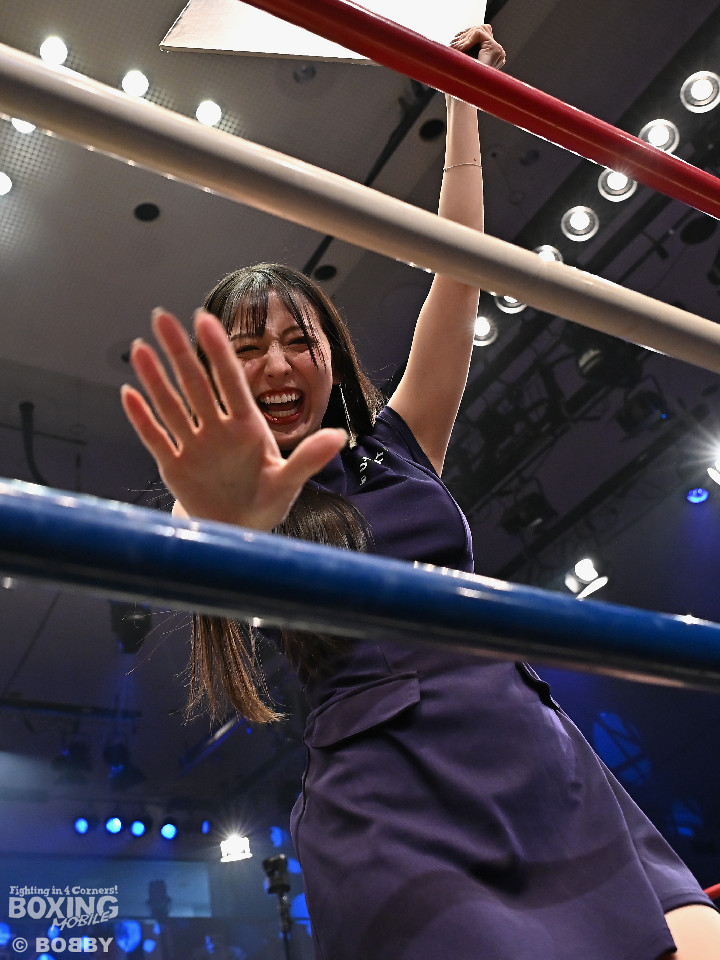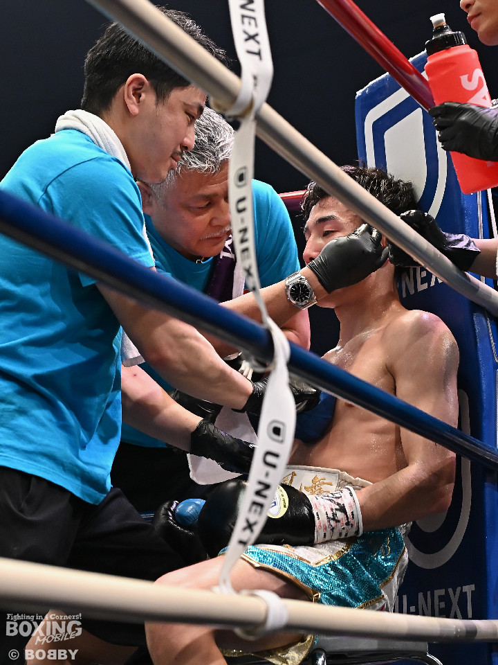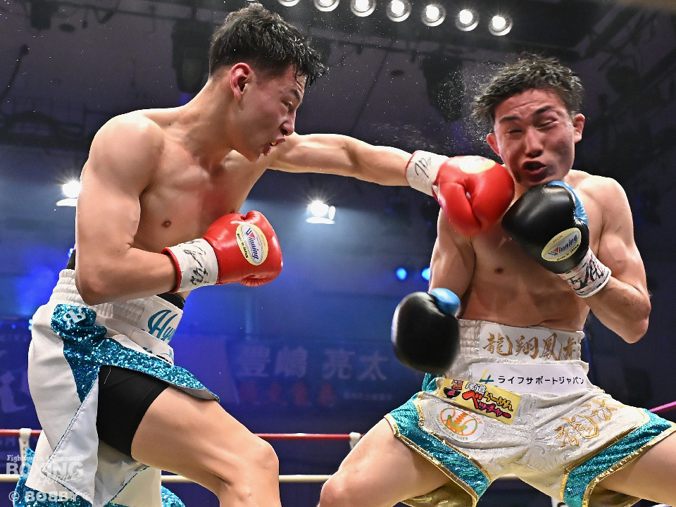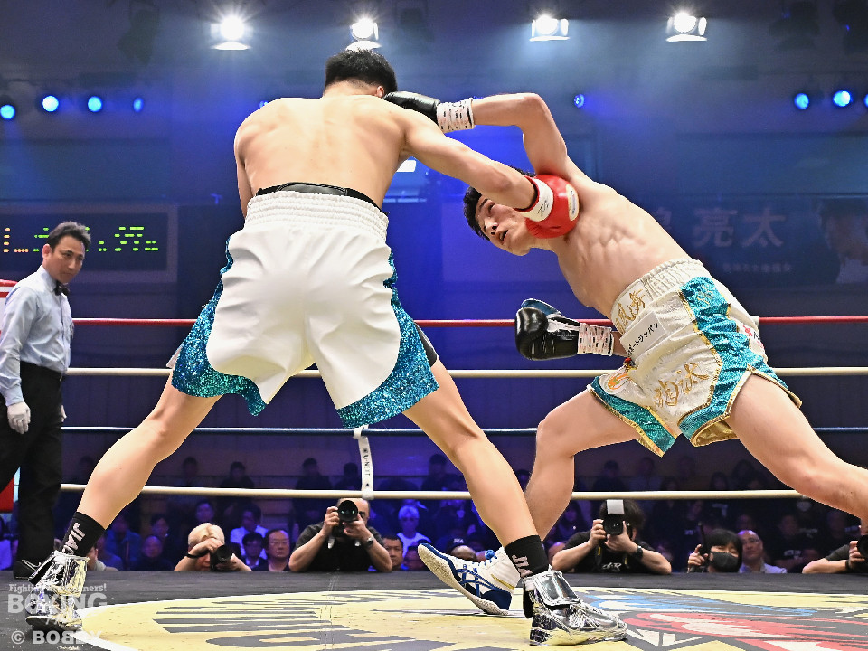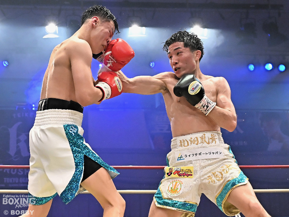 試合:日本ユース・ライトフライ級王者の大木がライオンズジムのホープ末國を迎え撃った。サウスポー同士の一戦は、ジャブの差し合いからスタート。末國の左クロスが浅くヒット。2回、神経戦が続きお互いにクリーンヒットが奪えず。3回、末國はリターンの右フックを決めると出入りを意識しながらテンポアップ。4回、大木はステップインからのワンツーを好打。ガードで決定打を回避した末國だがこのラウンドは大木が優勢。前半終了時の公開採点は、三者三様。6回、大木は距離を潰してボディ攻撃で体力を削る作戦。7回、末國はインサイドからのショートアッパーで見栄えの良さをアピール。ラウンド終盤は左ストレートを交錯させて会場を盛り上げた。8回、末國は右フックをねじ込むと返しのパンチをボディワークで回避した。ジャッジ2者の支持を得た末國が2戦目で新チャンピオンに輝いた。