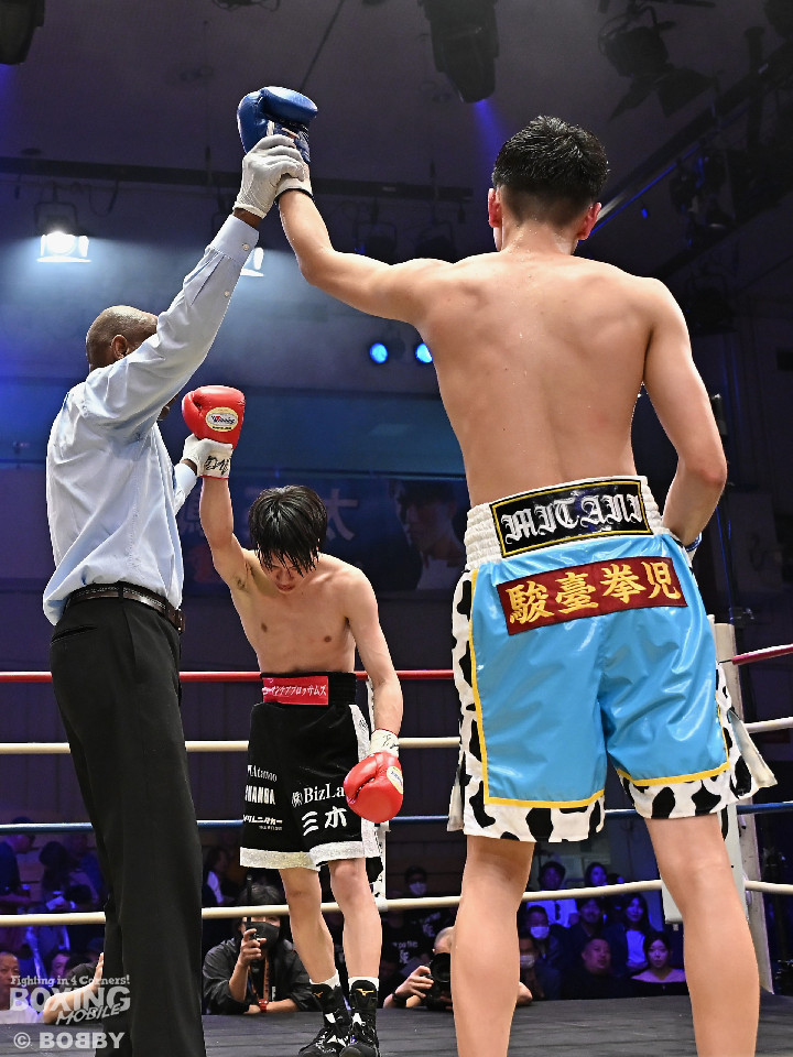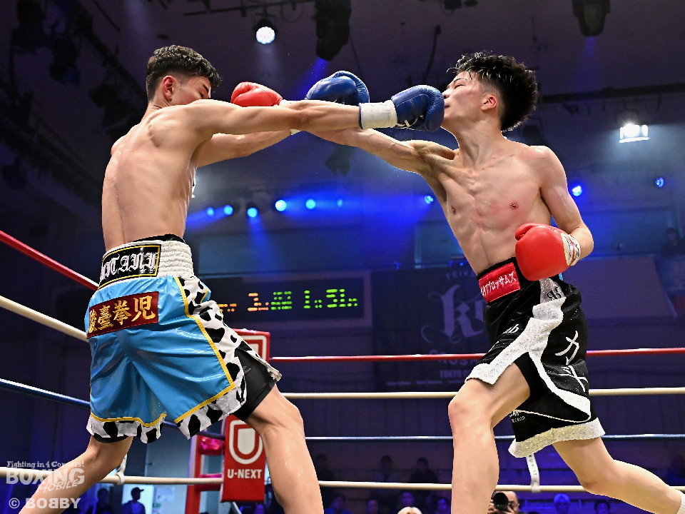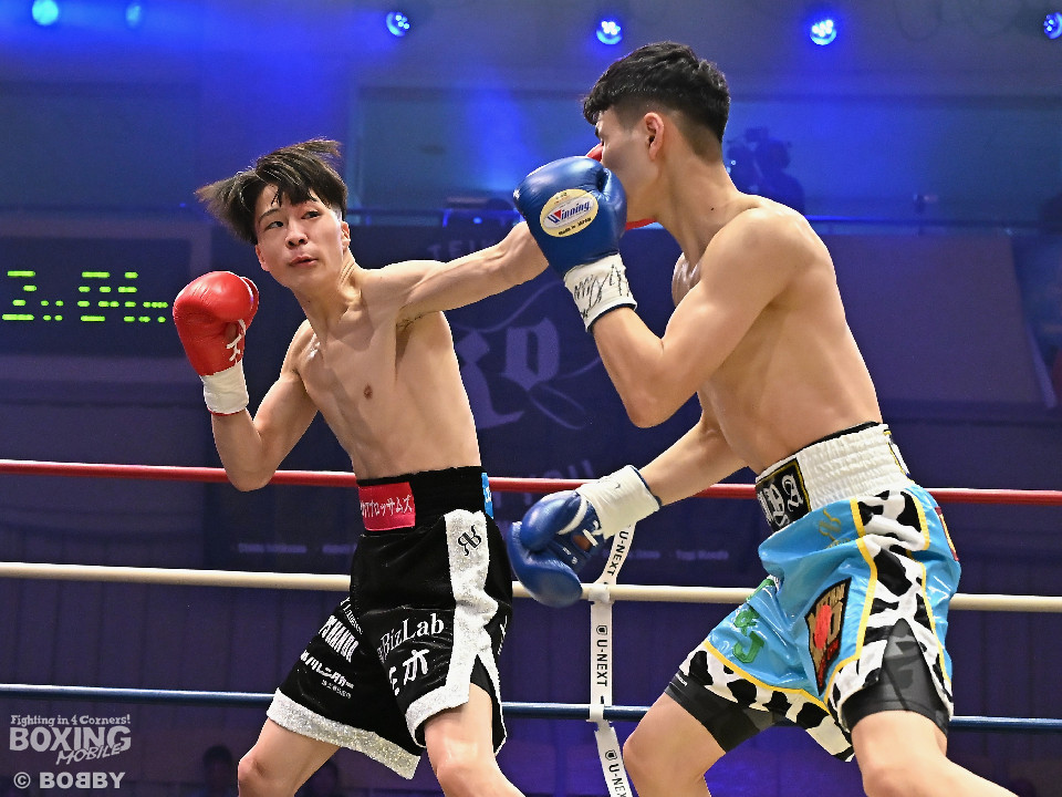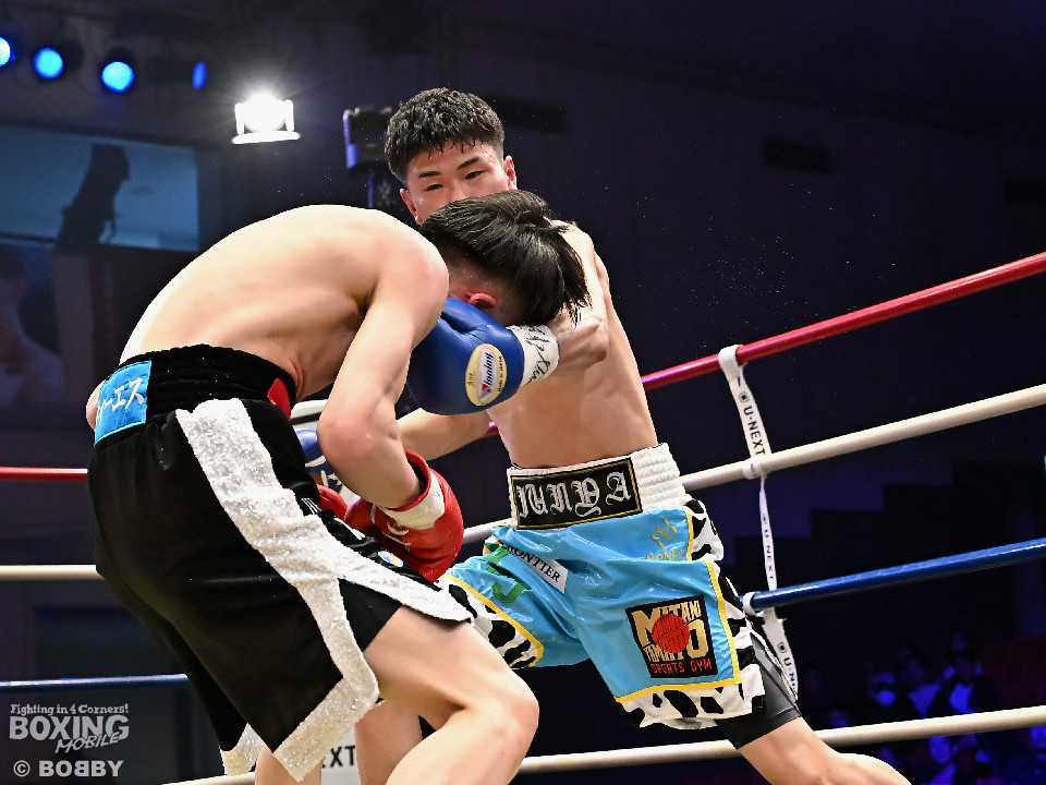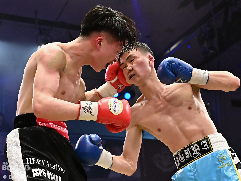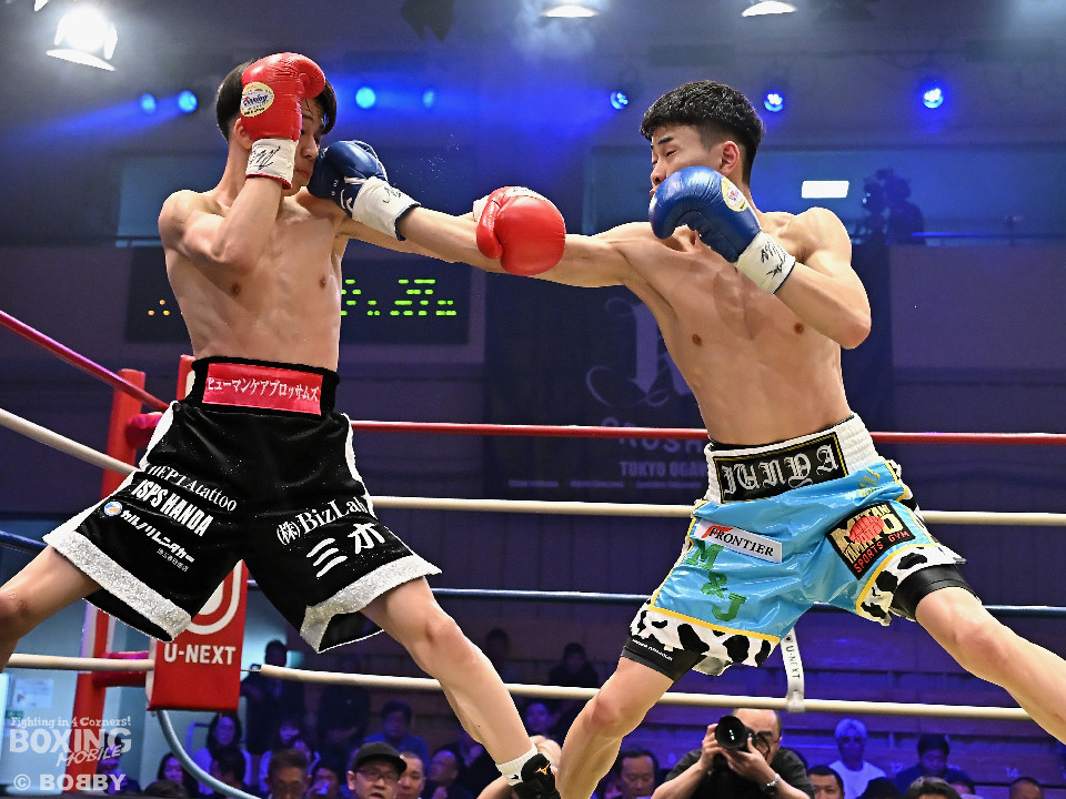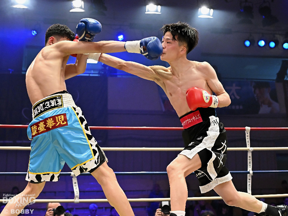 試合:サウスポー加藤が長いリーチを活かしたジャブで攻め、対する入田は距離を保ちながらタイミングを探る。2回、入田がプレスをかけワンツーを放ち、加藤は左のカウンターで応戦。3回〜4回、主導権を握りたい両者は、中間距離でパンチを交わし合う。入田がワンツーで攻めれば、加藤はフックを返し対抗。5回、クロスレンジでの打ち合いを展開。この回は、有効打数で加藤が優勢か。最終6回、体を預け合い激しく打ち合う両者。入田がステップインからワンツーの強打を放ち、加藤がガードの隙間を狙い、多彩な角度でパンチを差し込む。一進一退の試合の決着は、採点の結果、引き分けとなった。
