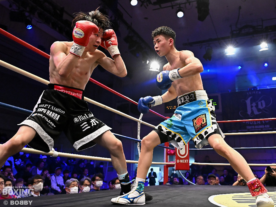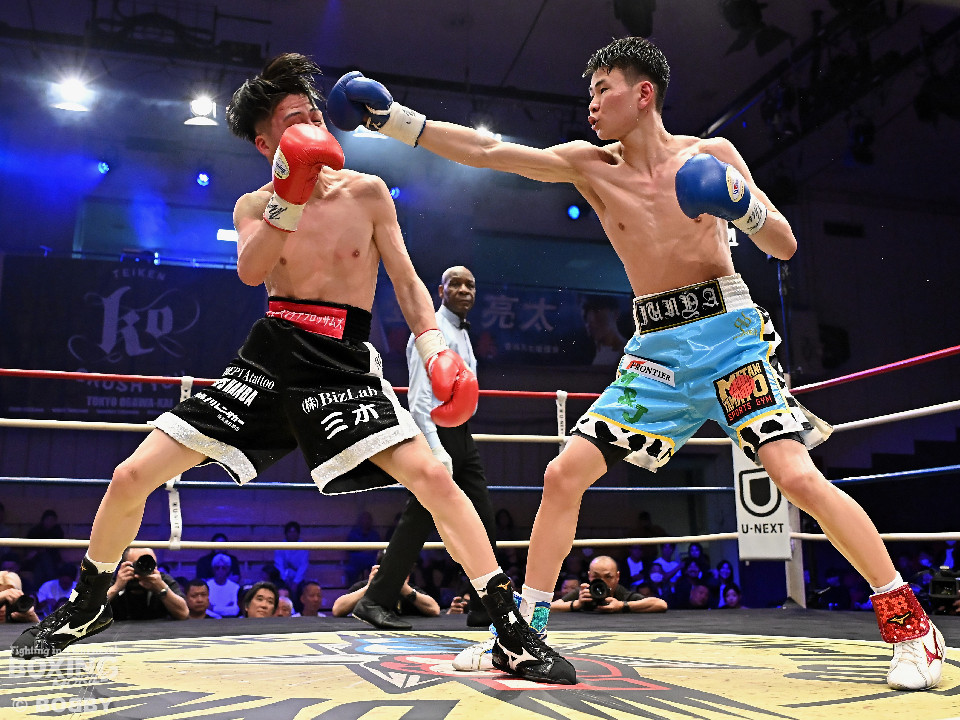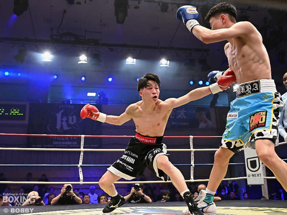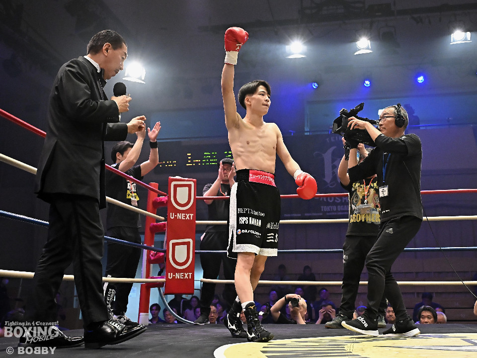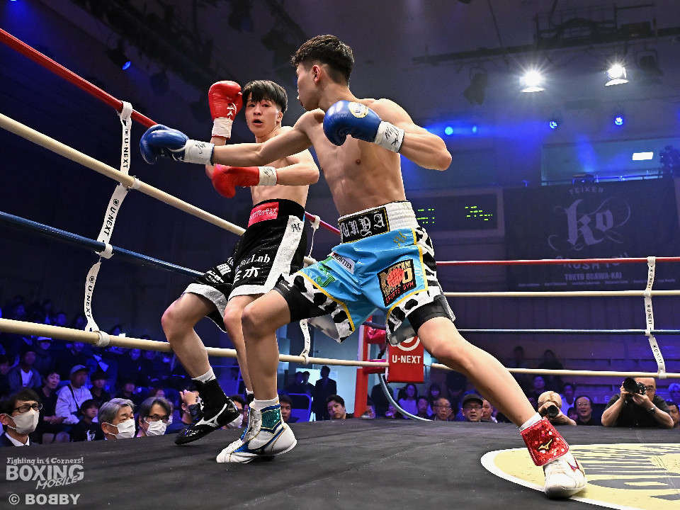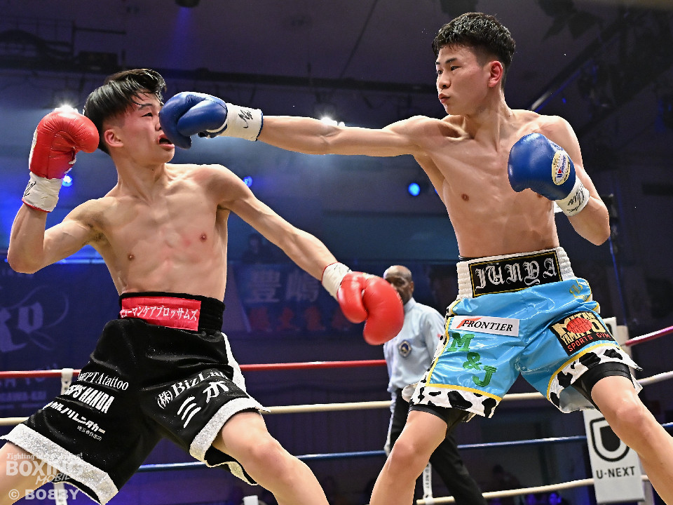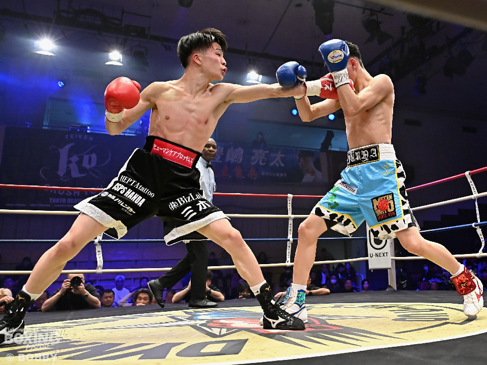 試合:サウスポー加藤が長いリーチを活かしたジャブで攻め、対する入田は距離を保ちながらタイミングを探る。2回、入田がプレスをかけワンツーを放ち、加藤は左のカウンターで応戦。3回〜4回、主導権を握りたい両者は、中間距離でパンチを交わし合う。入田がワンツーで攻めれば、加藤はフックを返し対抗。5回、クロスレンジでの打ち合いを展開。この回は、有効打数で加藤が優勢か。最終6回、体を預け合い激しく打ち合う両者。入田がステップインからワンツーの強打を放ち、加藤がガードの隙間を狙い、多彩な角度でパンチを差し込む。一進一退の試合の決着は、採点の結果、引き分けとなった。