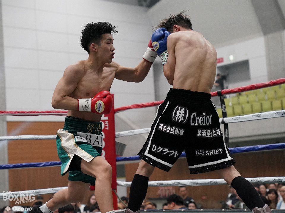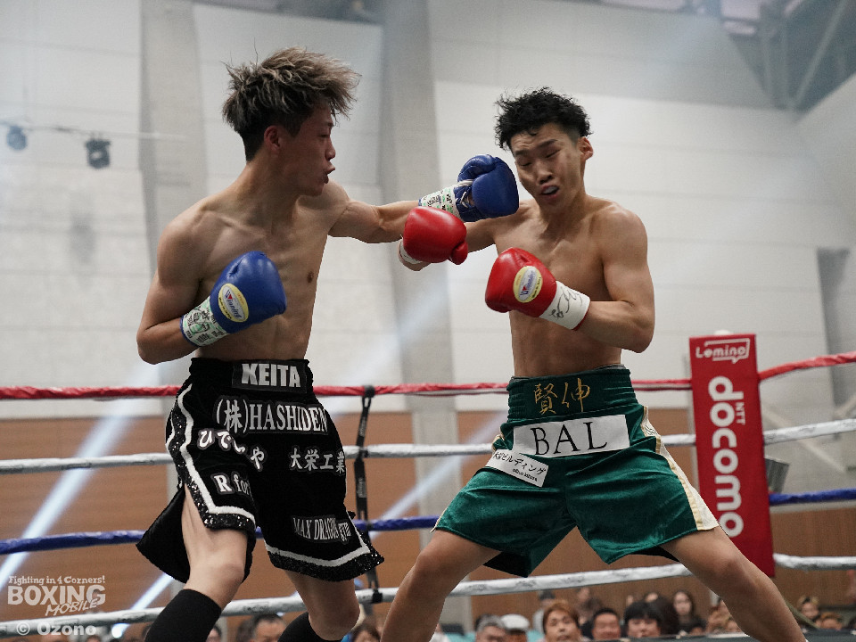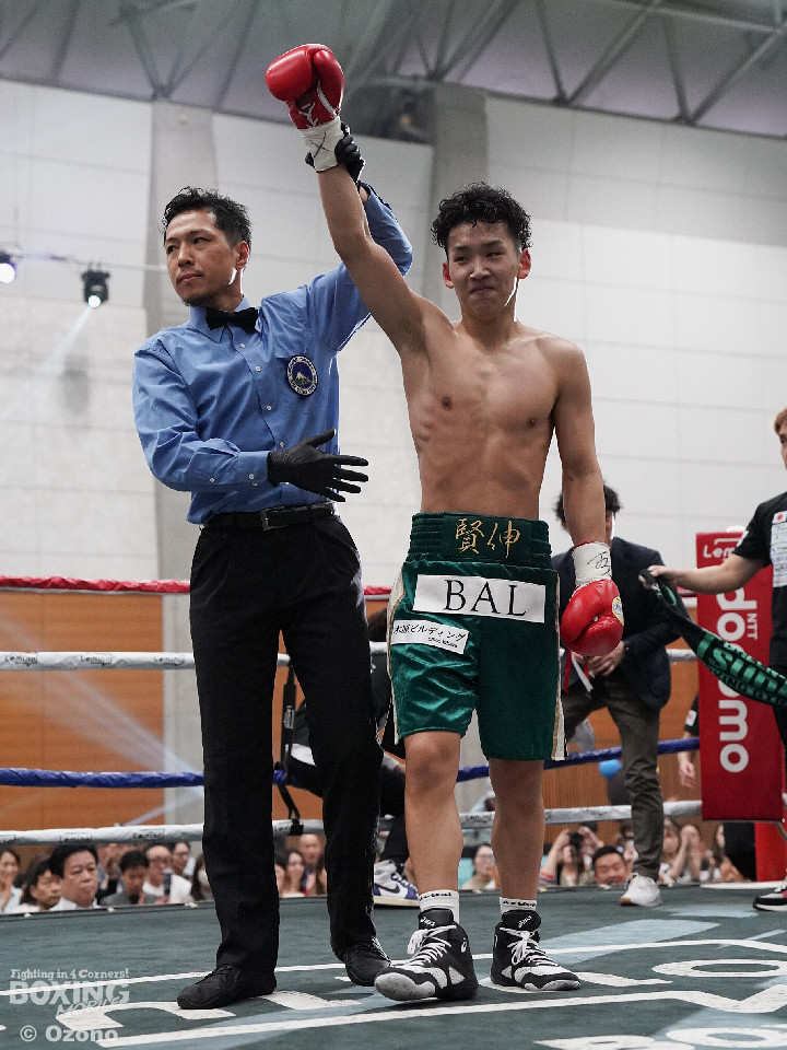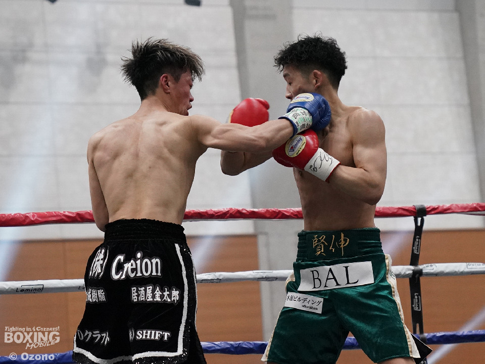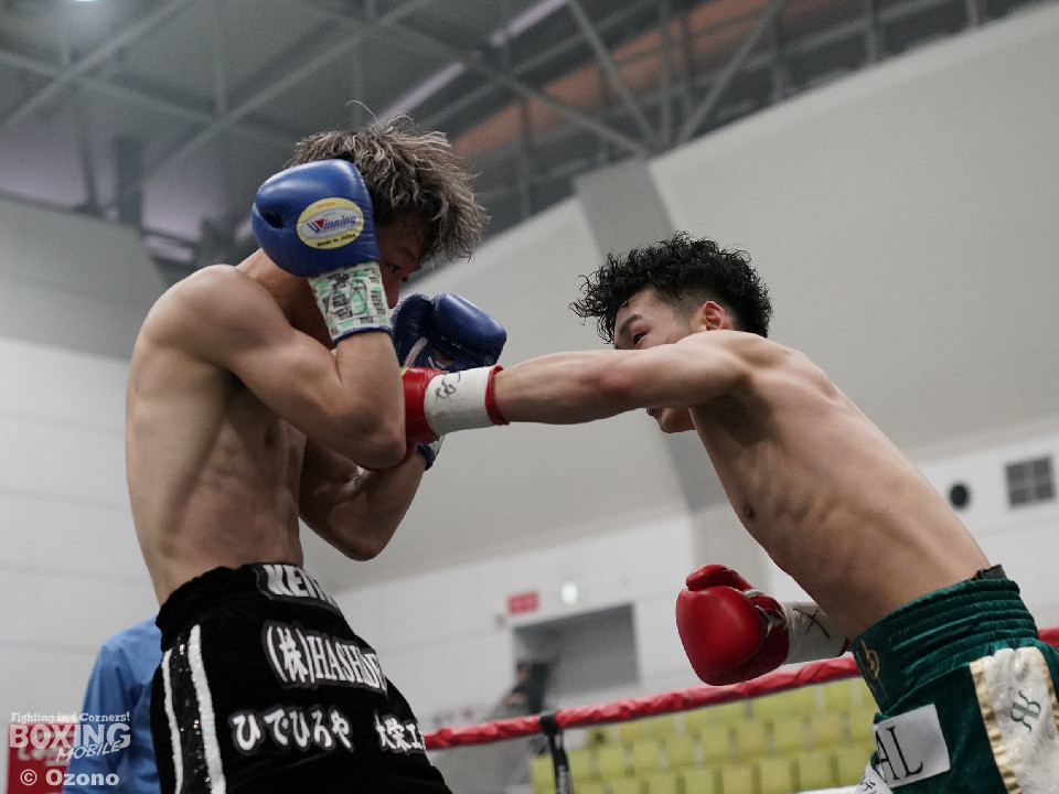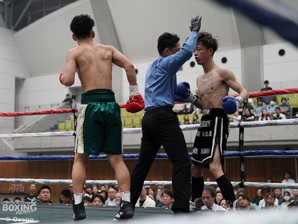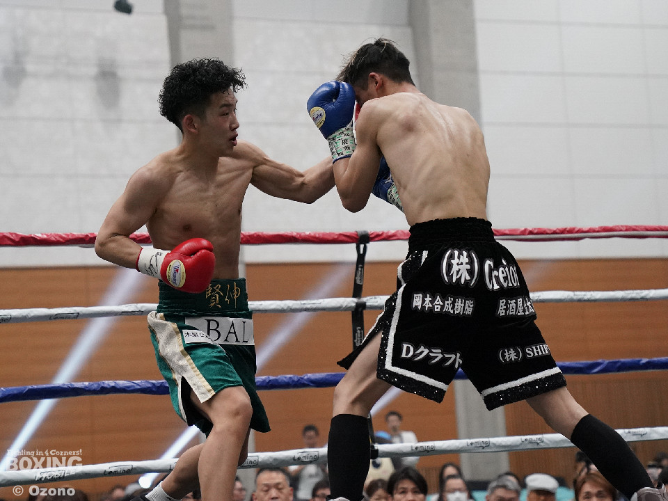 試合:福本が右から切り込むが、サウスポー高岡は左ショートで腰を沈めさせるとパンチをまとめて積極的な攻撃。ラウンド終了間際に左フックでグラつかせて攻勢を印象付けた。2回、福本は右ストレートで顔を弾くが、高岡は倍返しでペースを渡さず。勝負が決まったのは3回、高岡はチャンスを逃さずラッシュすると防戦一方になった福本を見てレフェリーが割って入った。