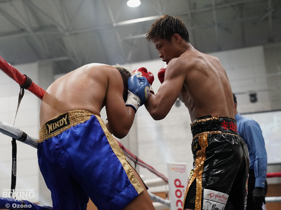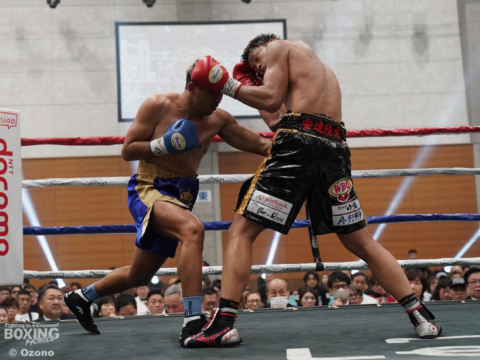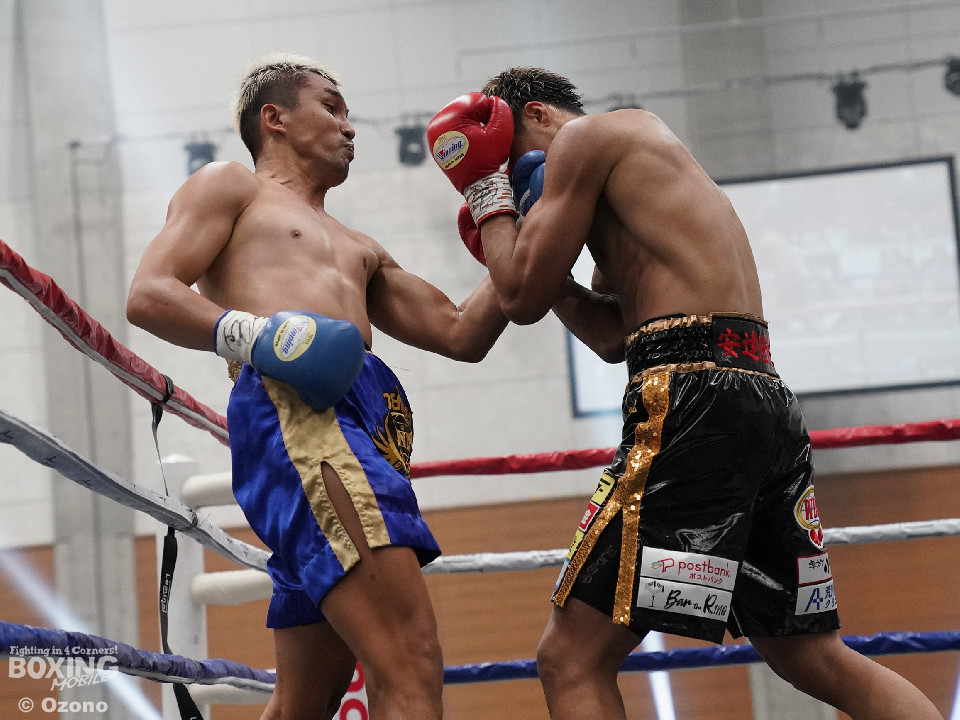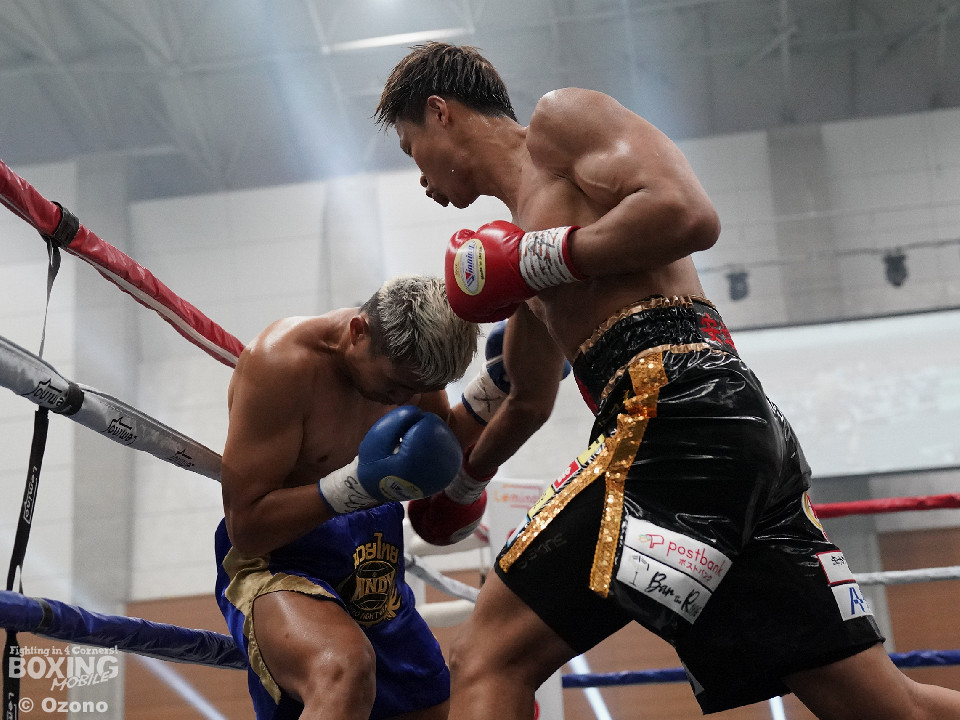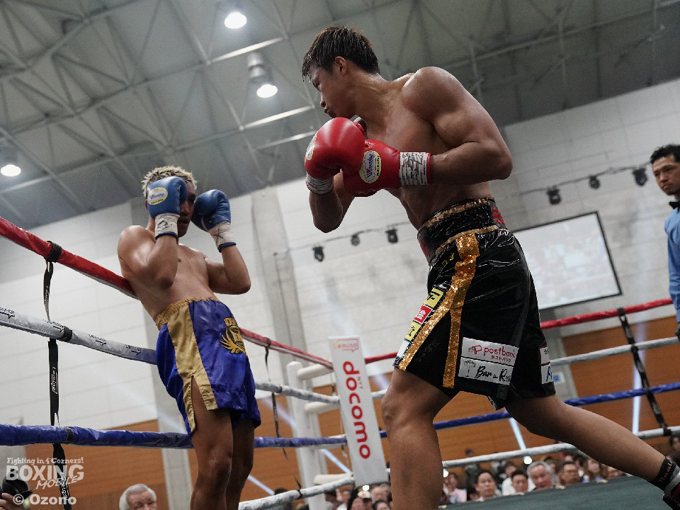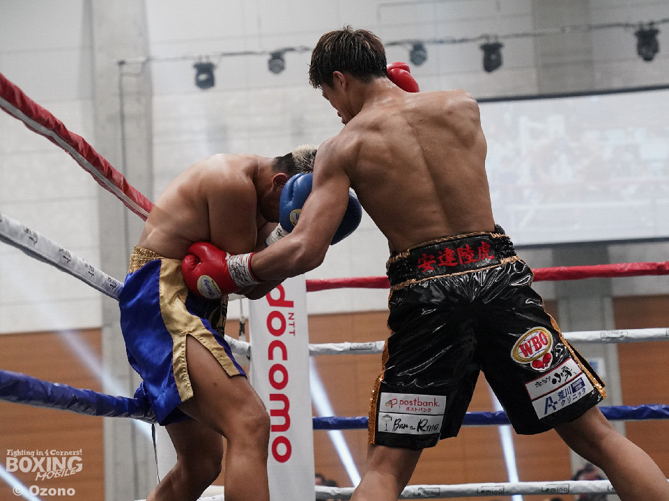 試合:日本スーパーウェルター級2位の安達が、昨年10月のタイトル戦以来の再起戦のリングに上がった。初回、安達は前の手で距離とタイミングを探ると単発の右ボディストレートをヒット。2回、サウスポー・パリンウィラットはガチャガチャと打ち込むが、安達は攻め急がず。プレスをかけてボディにパンチを集めた。3回、安達はプッシュしながら左ボディ、右アッパーで攻め立てると左アッパーでダウンを奪った。4回、安達は緩急をつけて右ボディアッパー、左フックで追い込み最後は左ボディでキャンバスに沈めた。