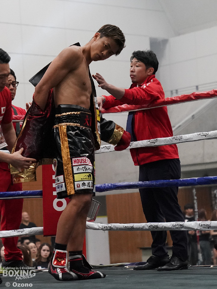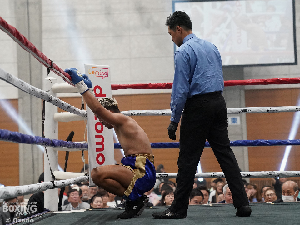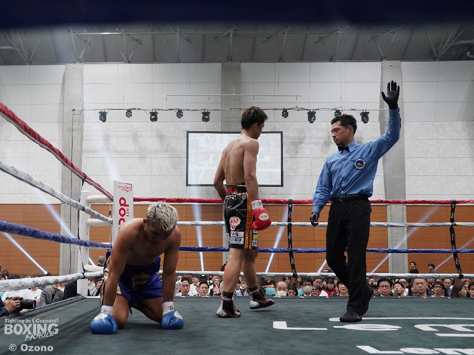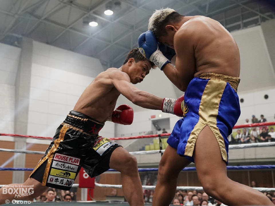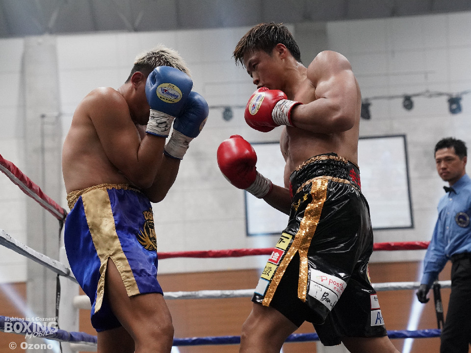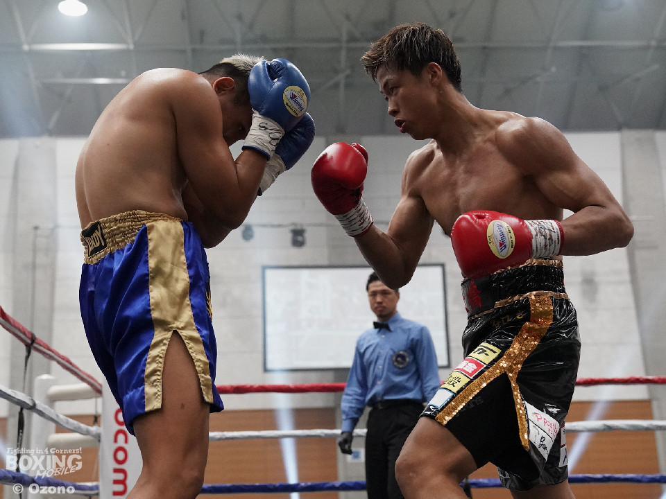 試合:日本スーパーウェルター級2位の安達が、昨年10月のタイトル戦以来の再起戦のリングに上がった。初回、安達は前の手で距離とタイミングを探ると単発の右ボディストレートをヒット。2回、サウスポー・パリンウィラットはガチャガチャと打ち込むが、安達は攻め急がず。プレスをかけてボディにパンチを集めた。3回、安達はプッシュしながら左ボディ、右アッパーで攻め立てると左アッパーでダウンを奪った。4回、安達は緩急をつけて右ボディアッパー、左フックで追い込み最後は左ボディでキャンバスに沈めた。