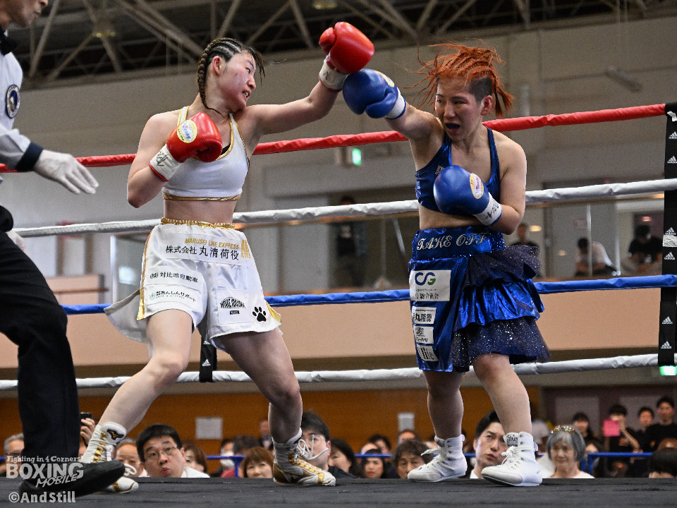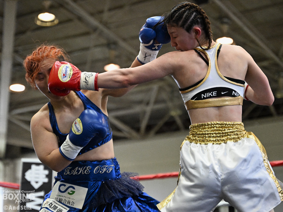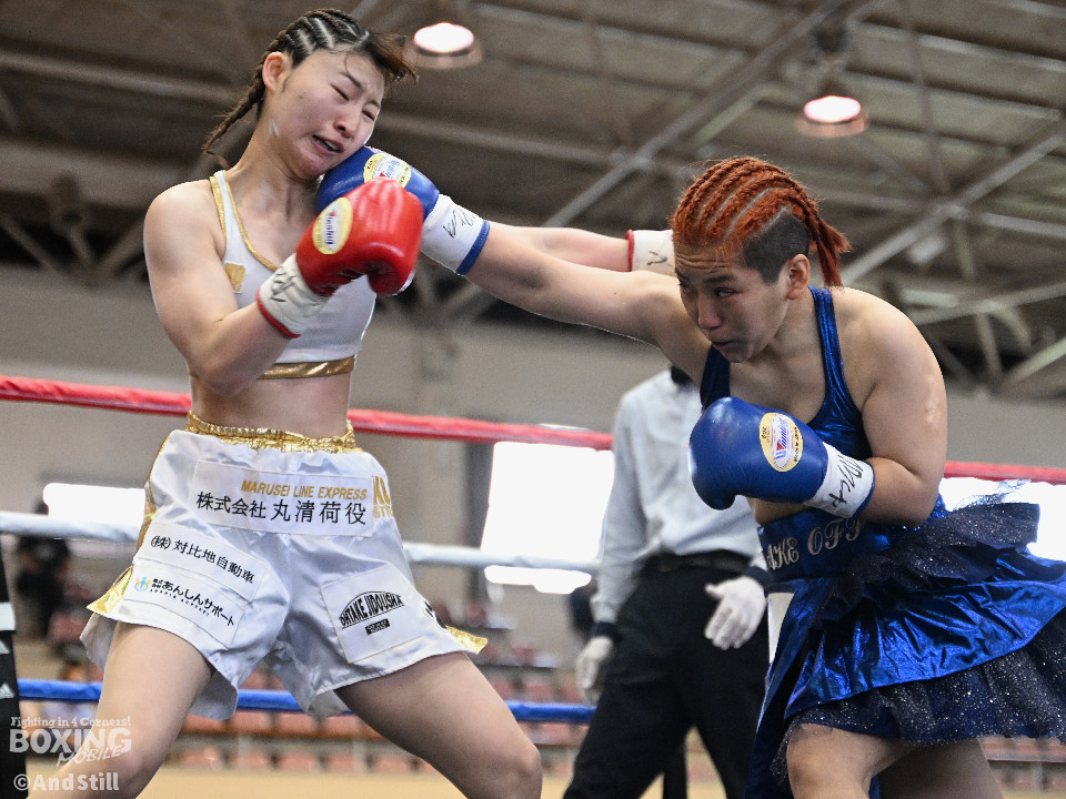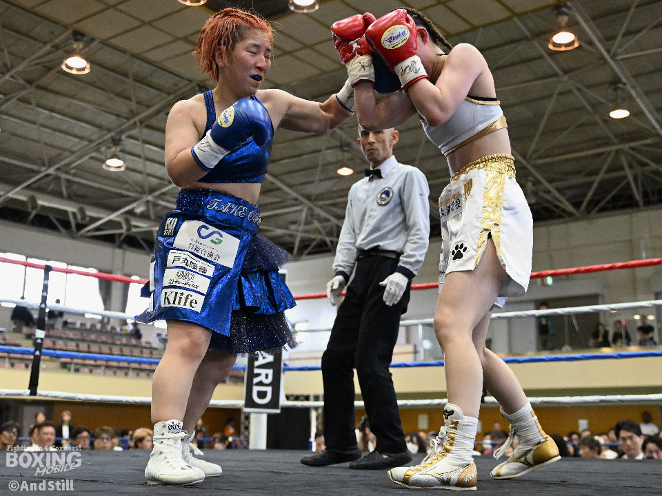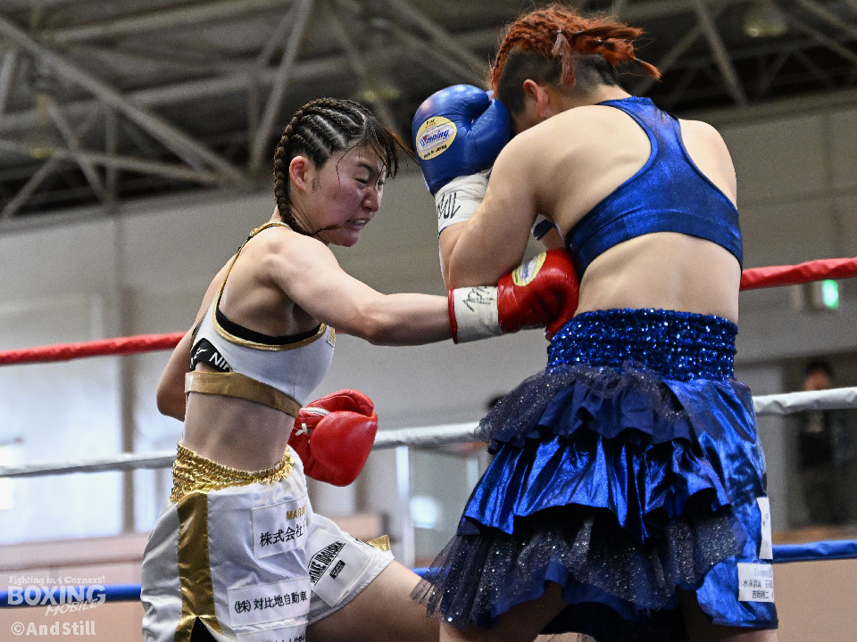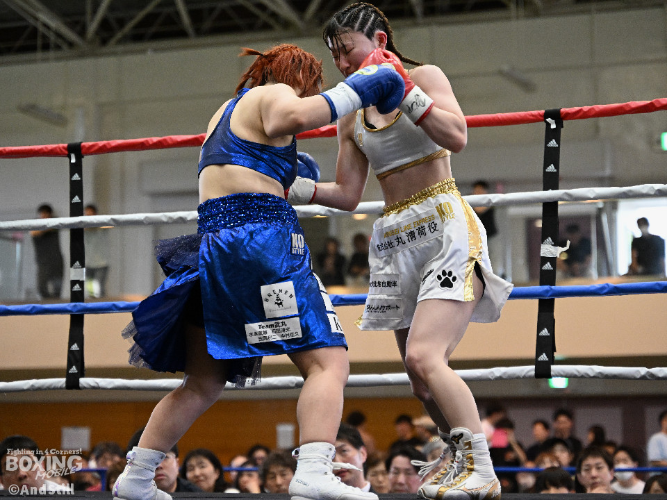 坂井がプレスを強めたところに小林の右ストレートがヒット。坂井は懐に入るが打ちあぐねる展開が増える。4回、小林はバックステップを交え、ボディからコンビネーションを組み立て攻勢を取る。5回、小林のコンビネーションが立て続けに顔面を捉える。坂井も攻め気は失わず愚直に前出て細かい連打からビッグパンチを狙う。最終回、お互いパンチの回転数上げゴングまで打ち続け試合終了。主導権を握り続けた小林がプロ初勝利を挙げた。