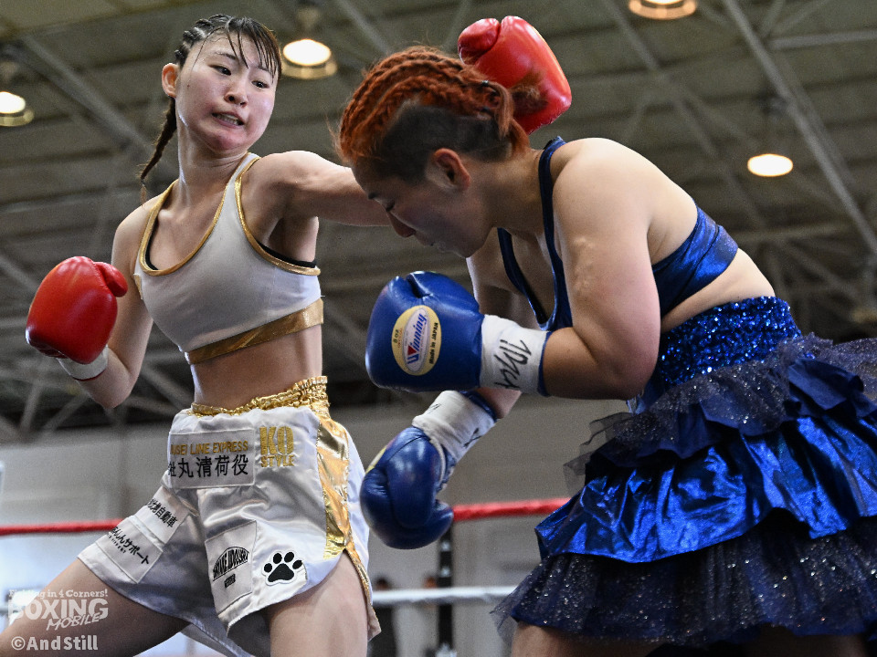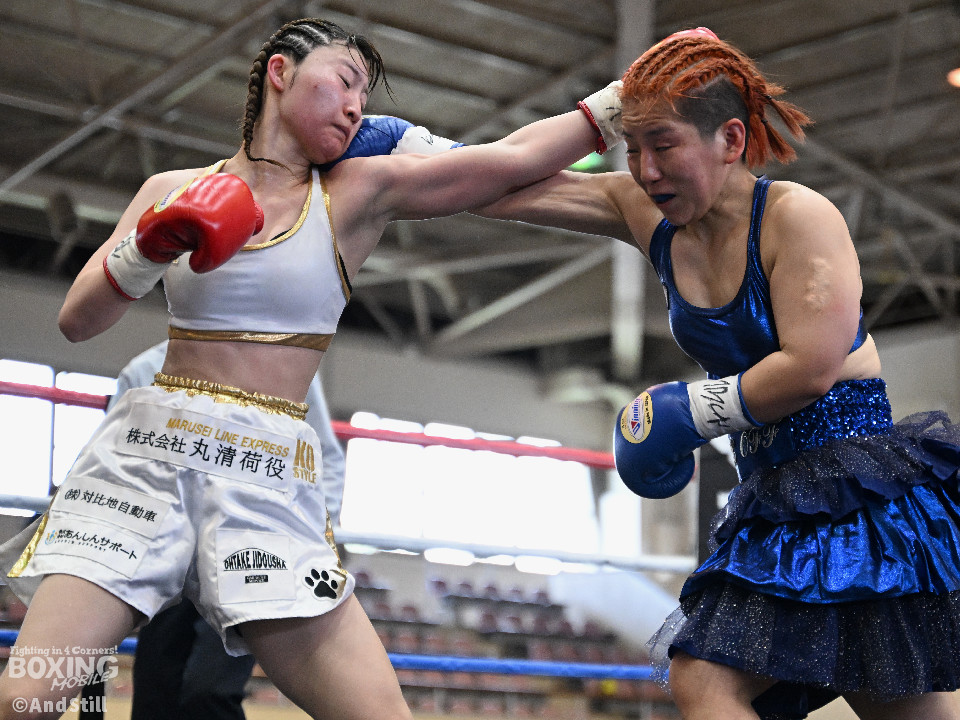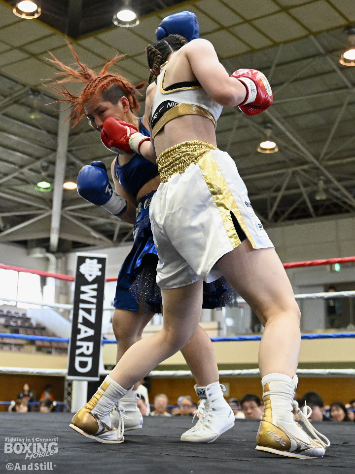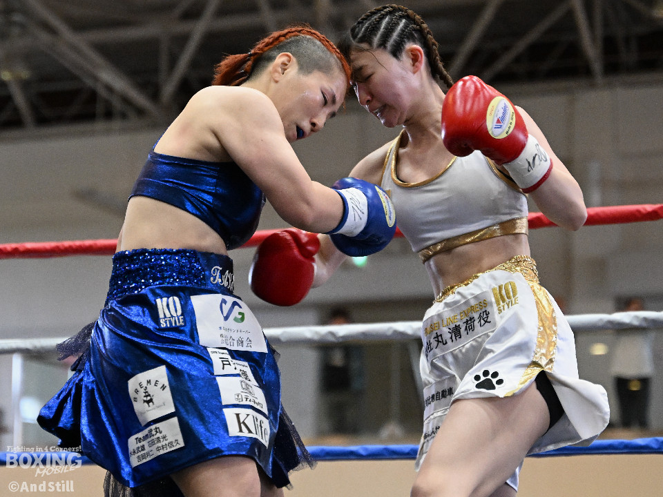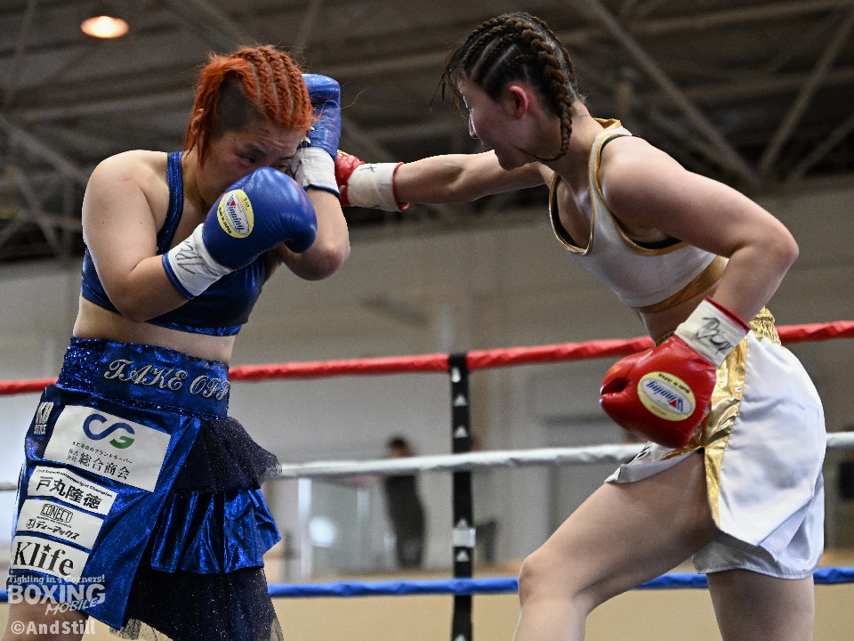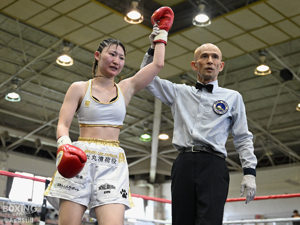 坂井がプレスを強めたところに小林の右ストレートがヒット。坂井は懐に入るが打ちあぐねる展開が増える。4回、小林はバックステップを交え、ボディからコンビネーションを組み立て攻勢を取る。5回、小林のコンビネーションが立て続けに顔面を捉える。坂井も攻め気は失わず愚直に前出て細かい連打からビッグパンチを狙う。最終回、お互いパンチの回転数上げゴングまで打ち続け試合終了。主導権を握り続けた小林がプロ初勝利を挙げた。