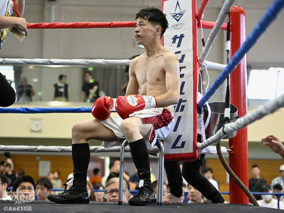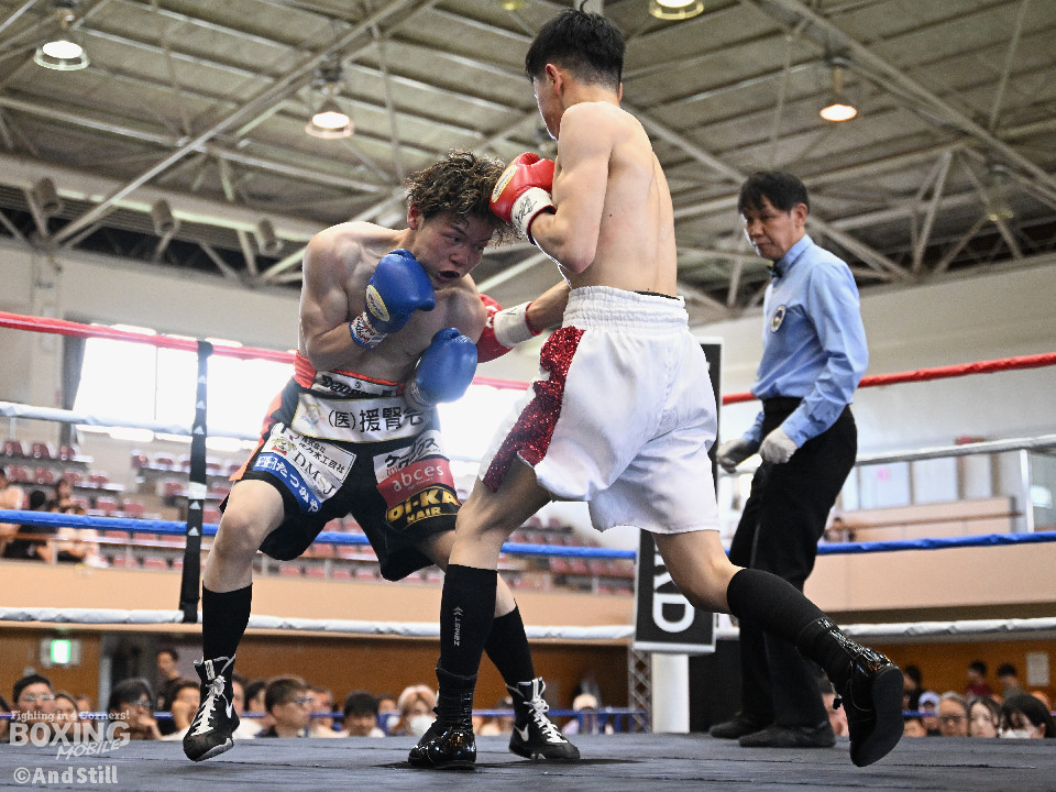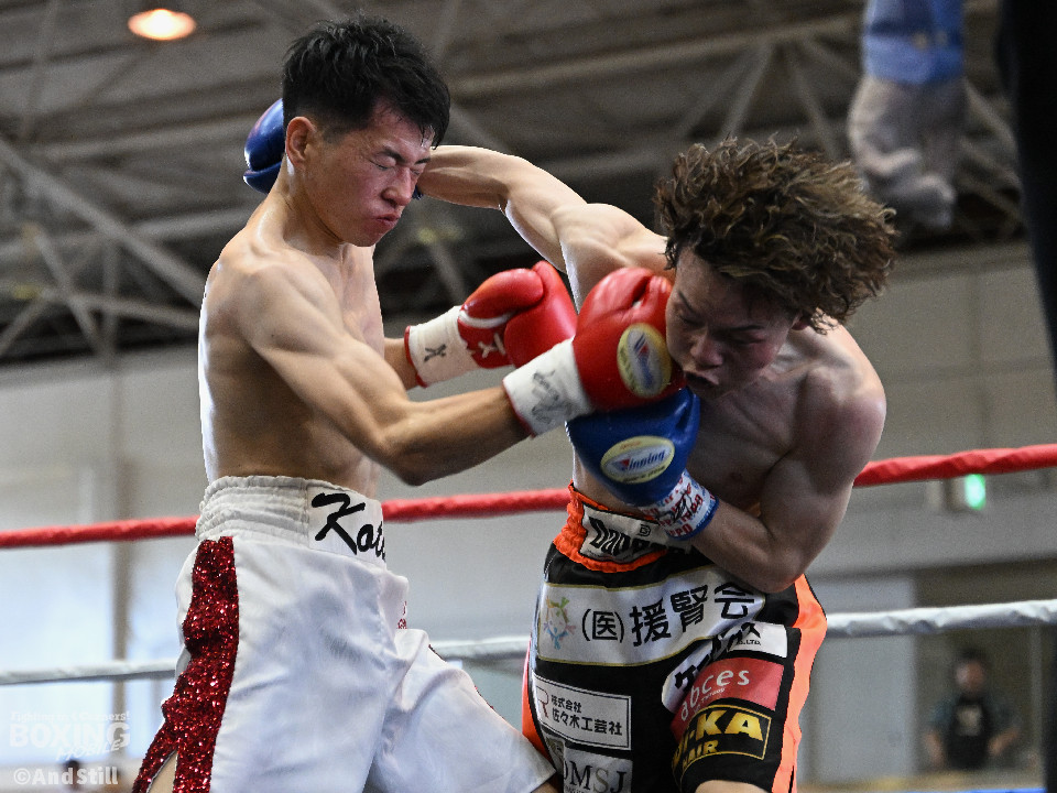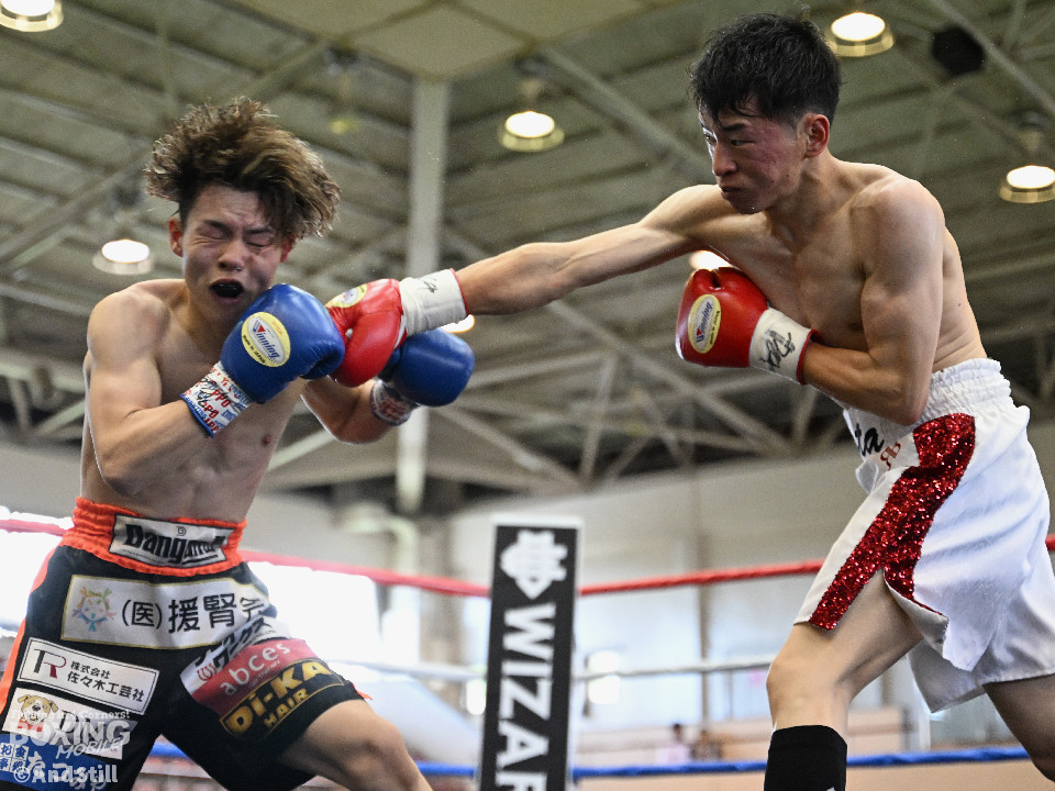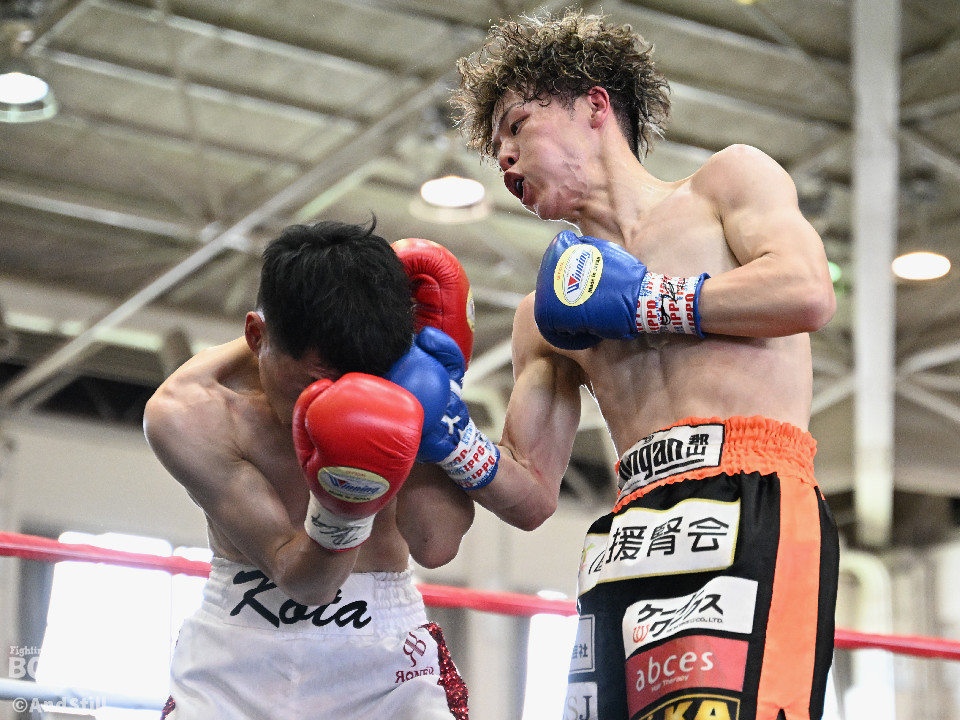 試合:森岡が細かいフェイントからジャブを放ち、右ストレートをカウンターでヒット。2回、森岡がさらにギアを上げ細かいステップから懐に入り込み右ストレートをヒット。根本はボディジャブからコンビネーションを狙う。3回、根本が接近戦を挑み、森岡を下がらせてフックを強振。疲れが見え始めた森岡は手数が減る。最終回、根本がプレスを強め飛び込みと同時に左フックを当てる。足が止まった森岡も接近戦で応戦。根本は終了のゴングまで愚直に接近してパンチを当て続けた。判定は後半にかけてヒット数を増やした根本が僅差の試合をモノにした。