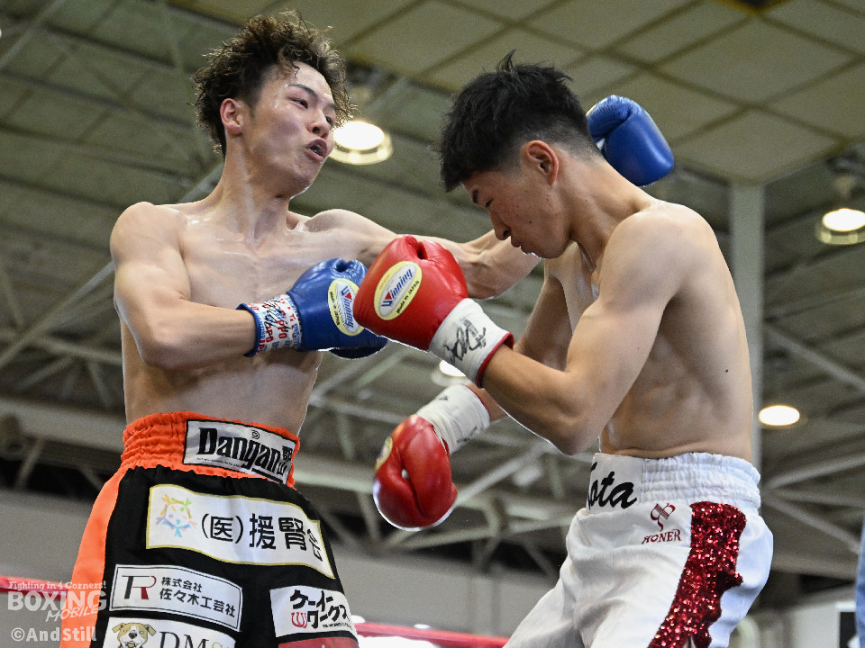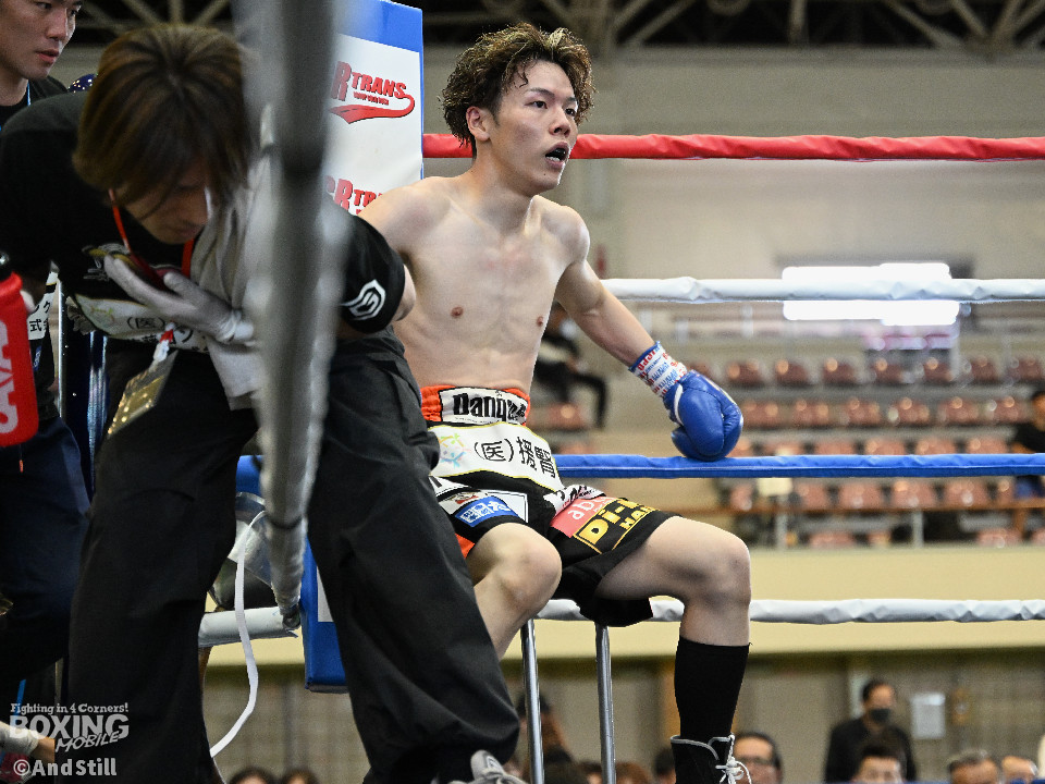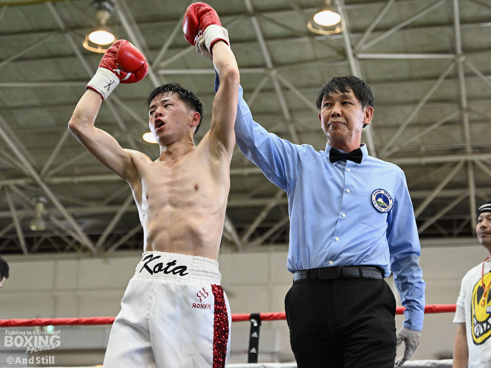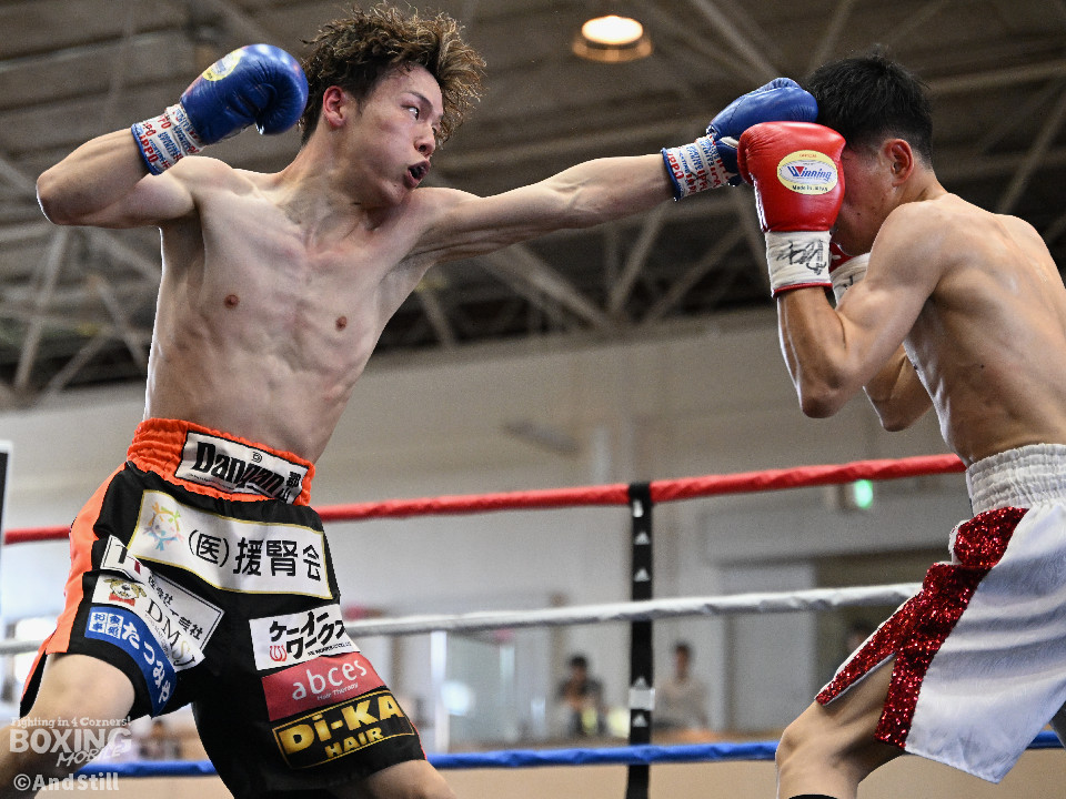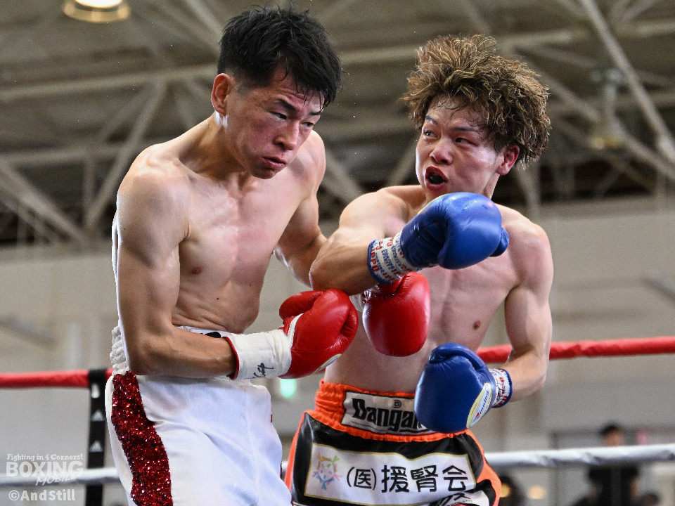 試合:森岡が細かいフェイントからジャブを放ち、右ストレートをカウンターでヒット。2回、森岡がさらにギアを上げ細かいステップから懐に入り込み右ストレートをヒット。根本はボディジャブからコンビネーションを狙う。3回、根本が接近戦を挑み、森岡を下がらせてフックを強振。疲れが見え始めた森岡は手数が減る。最終回、根本がプレスを強め飛び込みと同時に左フックを当てる。足が止まった森岡も接近戦で応戦。根本は終了のゴングまで愚直に接近してパンチを当て続けた。判定は後半にかけてヒット数を増やした根本が僅差の試合をモノにした。