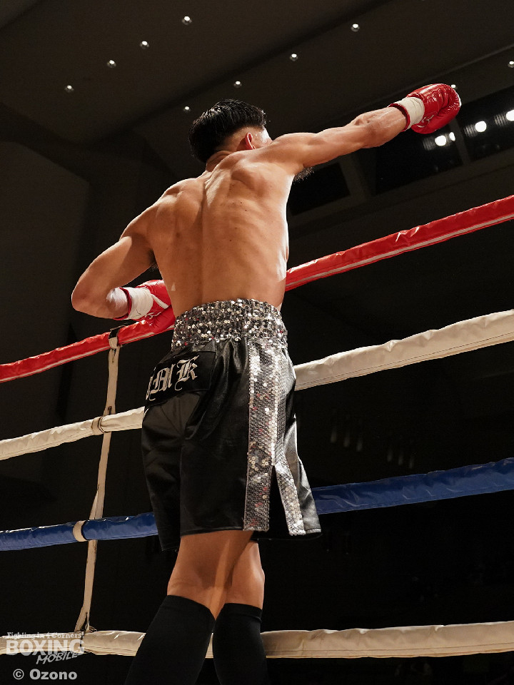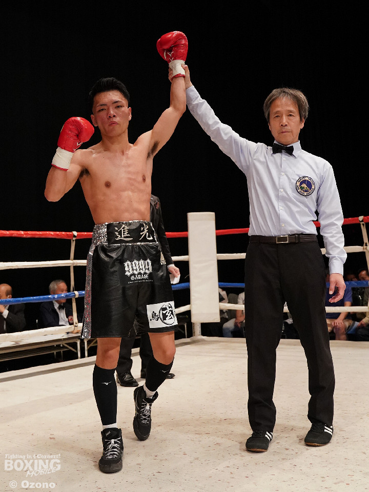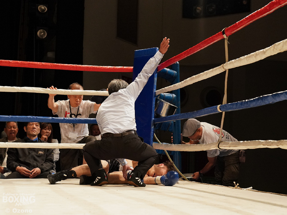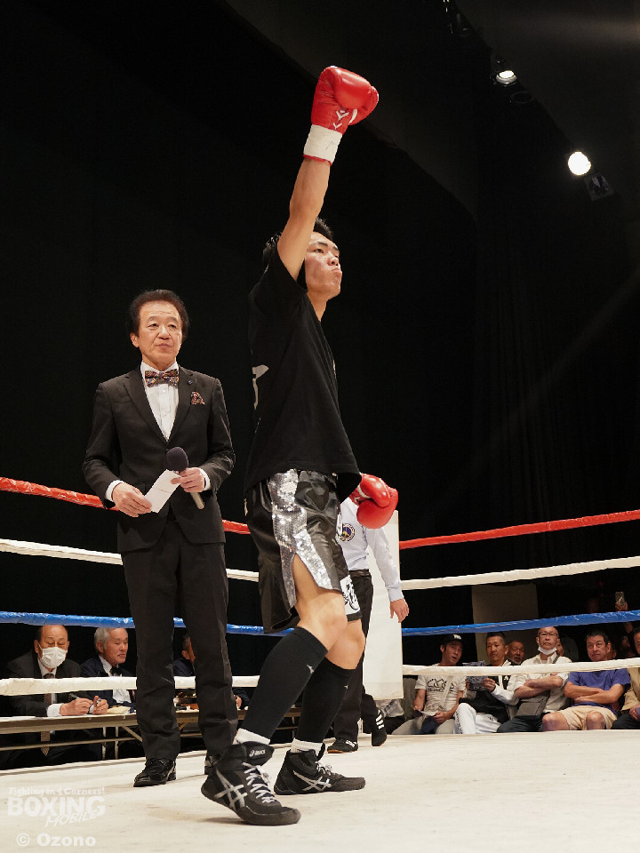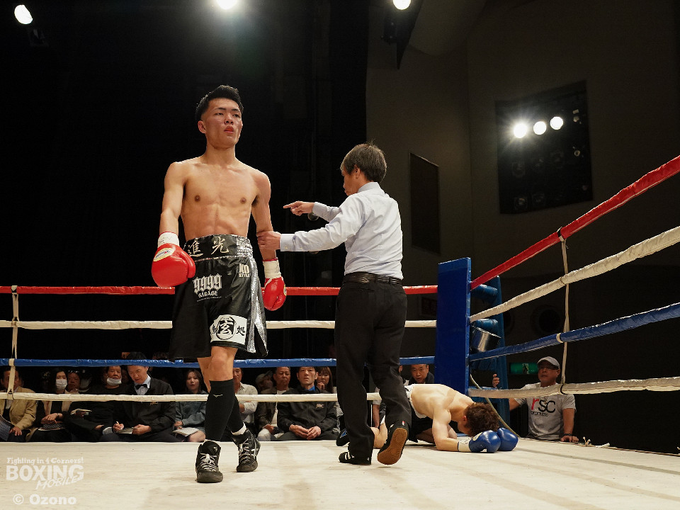 試合:勝負がついたのは初回。ワンツーでプレスをかけた宮田が左フックにつなげてリズムを作った。中園もワンツーで応戦するが、終盤にワンツーからレバーを叩いた宮田がダウンを奪うと、レフェリーがテンカウントを数え上げた。