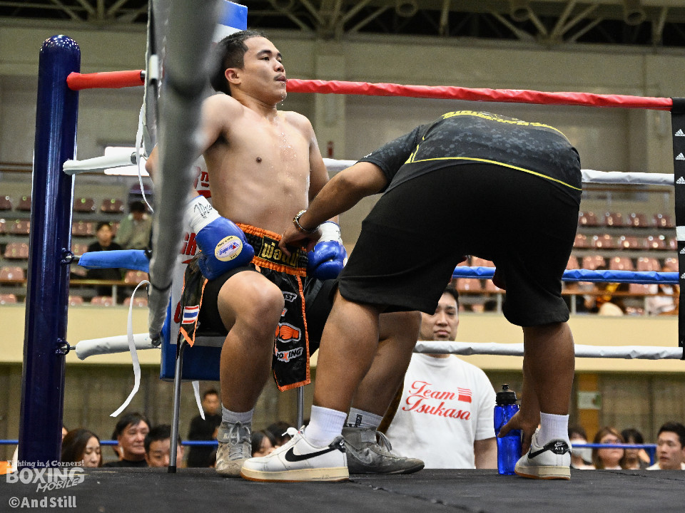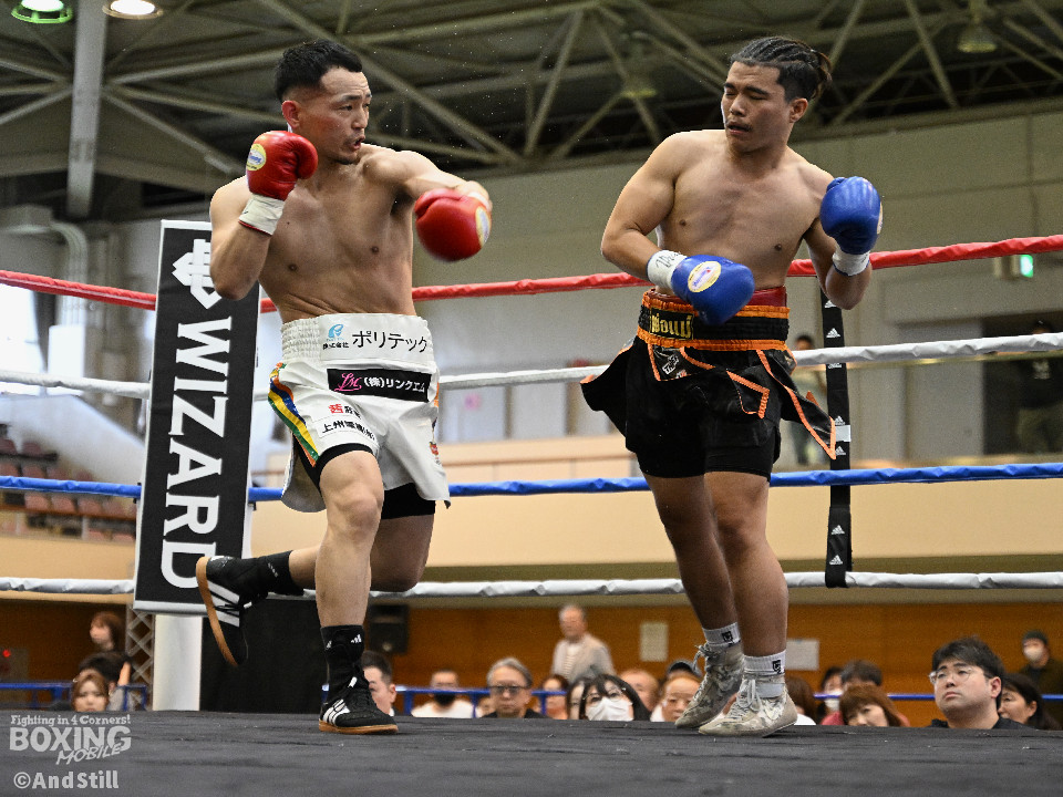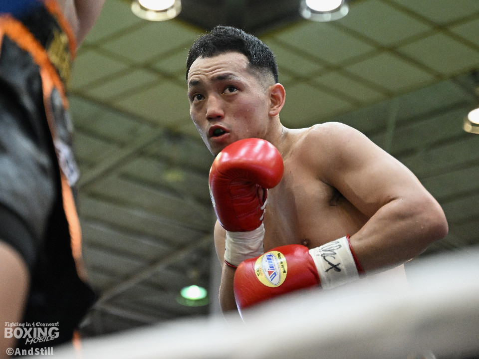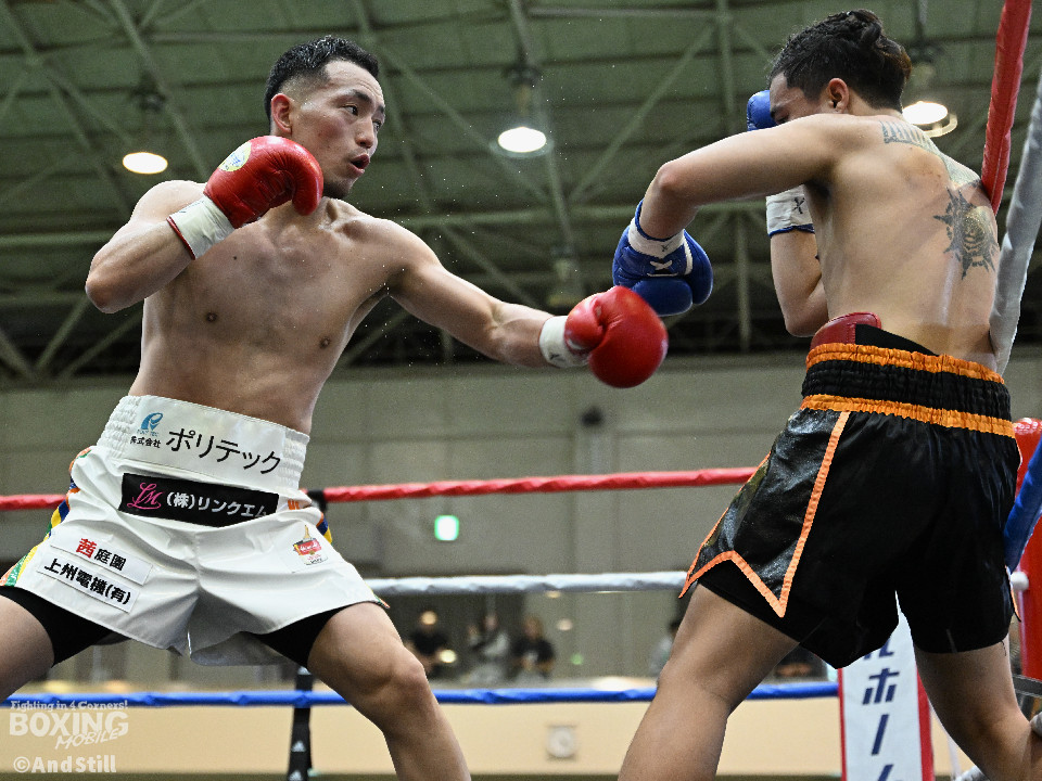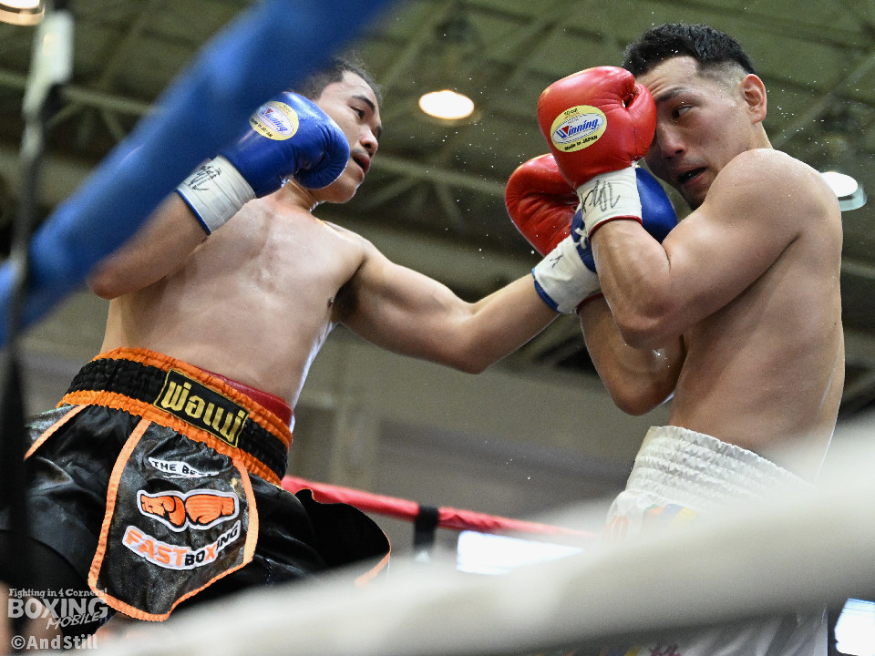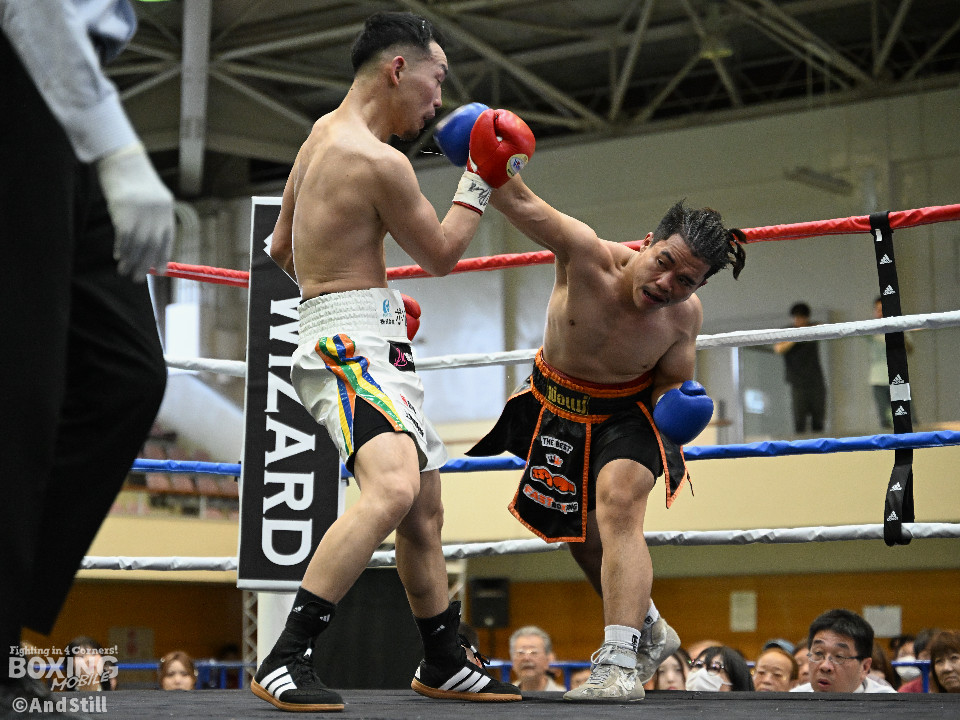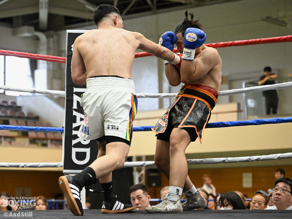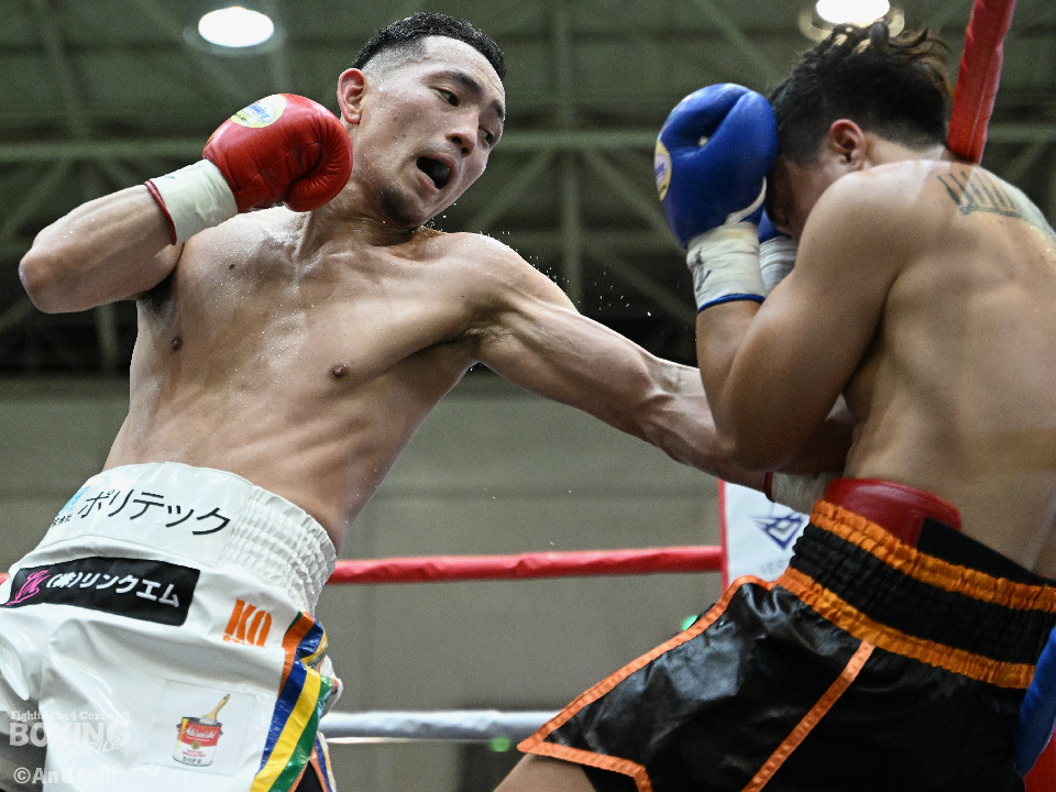 試合:落合はジャブでプレッシャーをかけ、チャンナロイをロープに詰める。打ち終わりのフックにもバックステップで冷静に対処した。2回、落合はガードを固めるチャンナロイにボディから削りにかかる。4回、待ちの姿勢のチャンナロイに落合はジャブ、アッパーでクリーンヒットを狙う。チャンナロイは笑いながらセコンドと話し挑発をする。7回、この回で決めたい落合はワンツー、アッパーをヒットさせチャンナロイから鼻血を流させる。終盤はボディで腰を落とさせた。最終回、落合が果敢に攻めて出るがダウンを奪うまでには至らず試合終了。フルマークで落合が勝利を挙げた。
