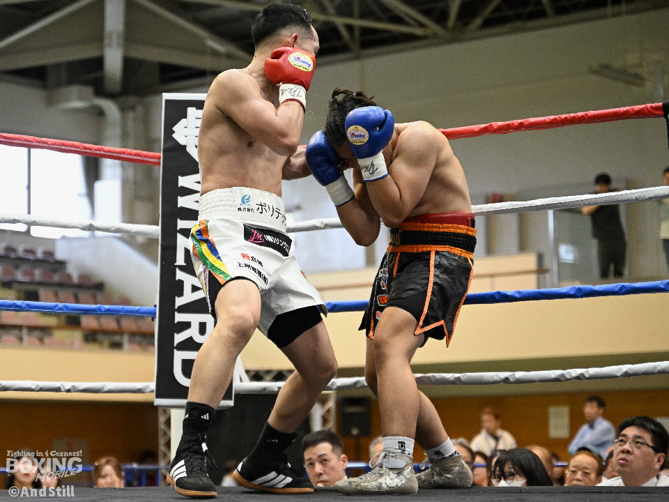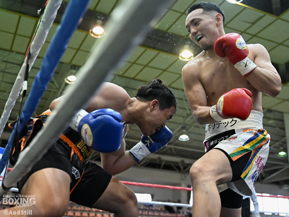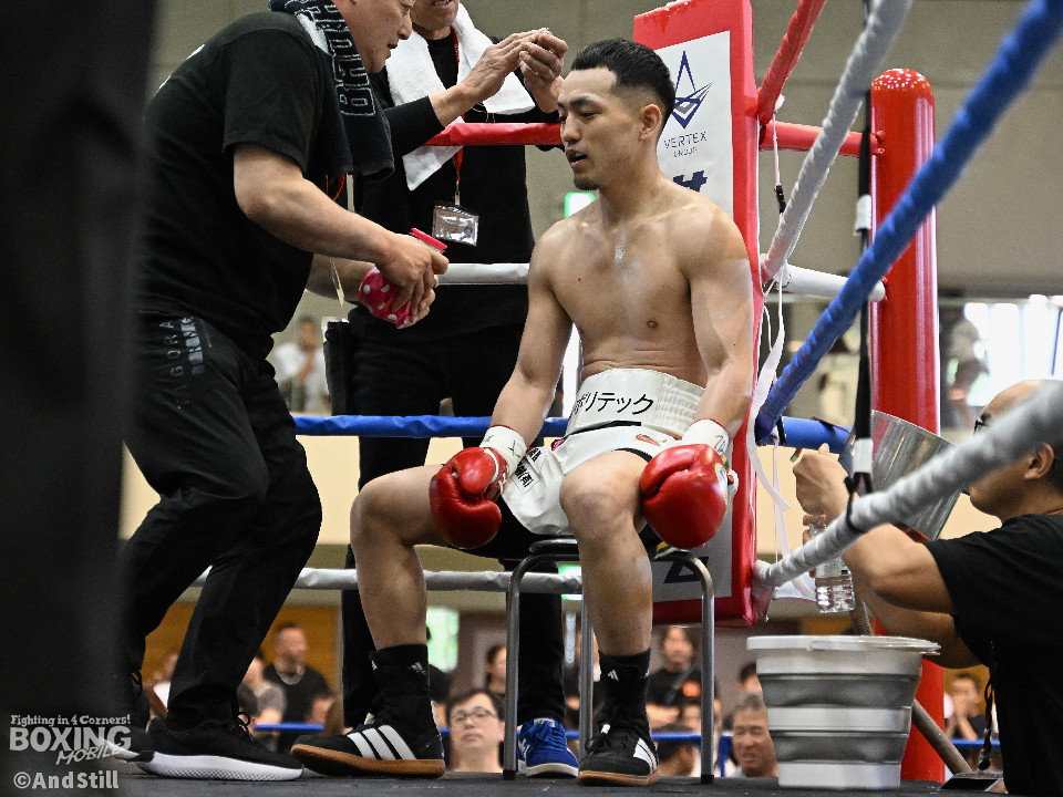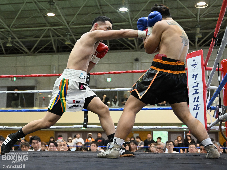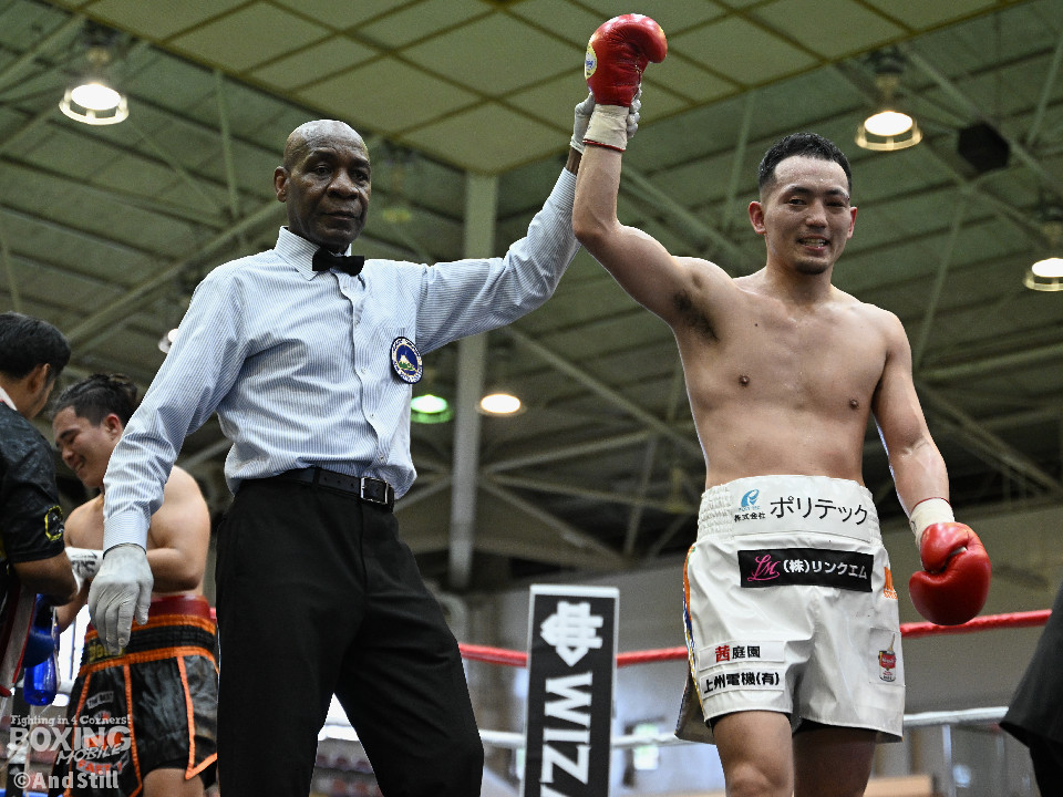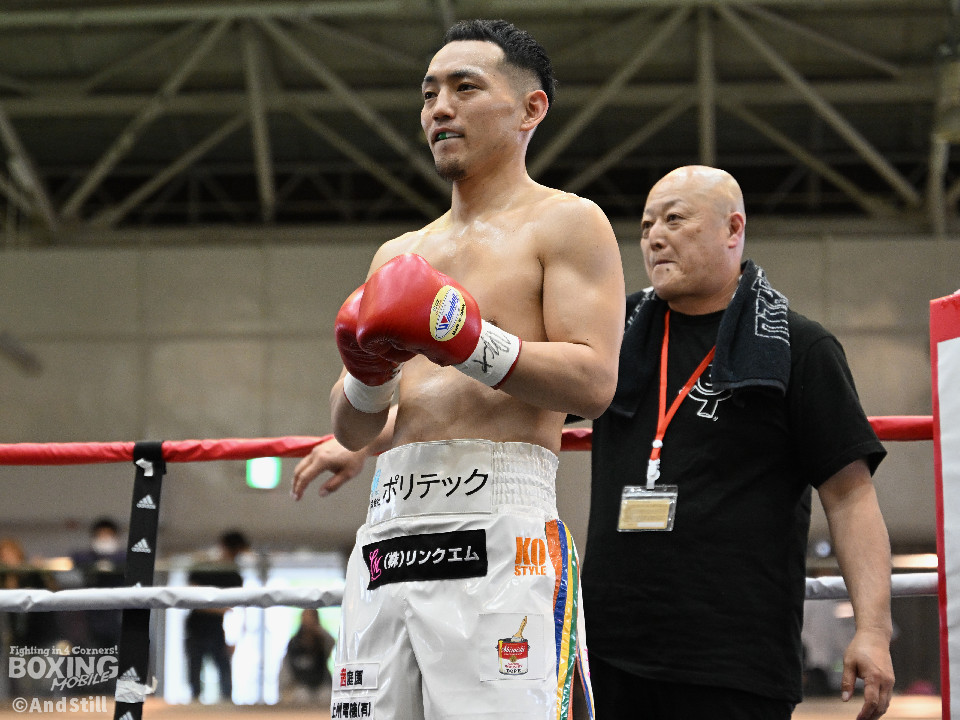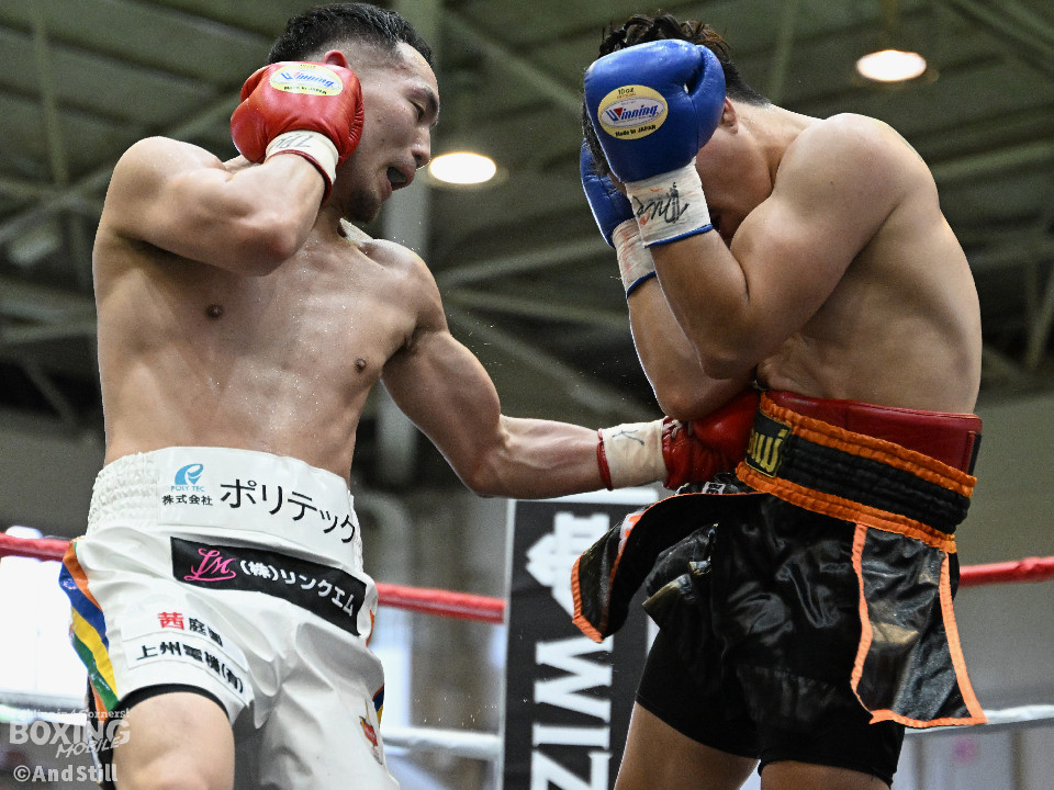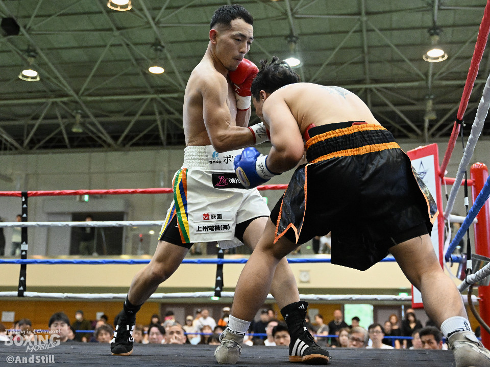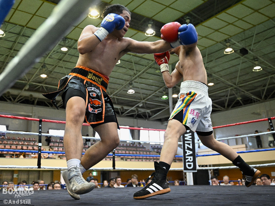 試合:落合はジャブでプレッシャーをかけ、チャンナロイをロープに詰める。打ち終わりのフックにもバックステップで冷静に対処した。2回、落合はガードを固めるチャンナロイにボディから削りにかかる。4回、待ちの姿勢のチャンナロイに落合はジャブ、アッパーでクリーンヒットを狙う。チャンナロイは笑いながらセコンドと話し挑発をする。7回、この回で決めたい落合はワンツー、アッパーをヒットさせチャンナロイから鼻血を流させる。終盤はボディで腰を落とさせた。最終回、落合が果敢に攻めて出るがダウンを奪うまでには至らず試合終了。フルマークで落合が勝利を挙げた。