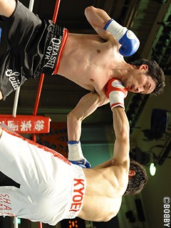 試合:序盤からスピードの攻めを見せる岡田。かたや松崎は、相手が出てくればフックでひっかけ、もぐりこんではボディ、アッパーで応戦。中盤から岡田は左ボディで深いところを叩き、距離を縮めてからコンパクトに下から上、上から下へと打ち分ける。さらに中盤あたりから上下に散らしながらも徹底的にボディを攻める岡田。松崎も負けじとボディからかぶせてフックで応戦するも、岡田の飛び込みながらの左ボディの連発に力及ばず、岡田の判定勝ち。これで9戦9勝となった。