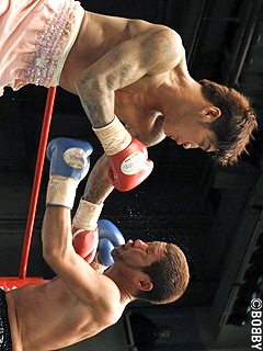 試合:逆輸入刺青ボクサー大嶋の2戦目。1R、早くも右ストレートでダウンを奪った大嶋は、続く2R、開始からの打ち合いを制し、レフェリーストップを呼び込んだ。