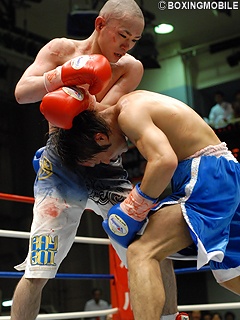 試合:立ち上がり、家住が右ストレートをヒットさせ主導権を奪うかに見えたが1R終了間際、サウスポー山中の左ストレートカウンターで早くもダウンを奪われる。しかし2R、今度は家住が左フックをヒット。膝が落ちた山中に右ストレートを合せダウンを奪い返す。両者ダウンの応酬にヒートアップする場内。意地の打ち合いとなり4R、山中の左ストレートが再びカウンターでヒット。家住をロープに詰め、ラッシュからの左ストレートをクリーンヒットさせ2度目のダウンを奪う。家住のダメージは深刻で山中の連打にクリンチで凌ぐ。4R終了時、36-37・36-37・36-38の判定0-3で山中リード。5R、山中が一気に攻め込むも、左ストレートが大きくなった所にまたしても家住の左フックがクリーンヒット。山中は中盤以降手数が落ち、家住のプレスに後退。家住はパンチに強弱をつけ、右ストレート・左フック・右アッパーをヒットさせポイントを奪い返す。山中は手数が出なくなり、ロープ・コーナーに詰められては細かいパンチを浴びる。そして8R、家住が右ストレートで山中をロープに詰めラッシュを掛けると、ここでレフェリーが山中のダメージが深刻と判断。ストップと同時に崩れ落ちる山中はダメージが深く担架退場。家住が昨年11月の日本王者・嘉陽戦からの復帰戦で、見事東洋暫定王座決定戦を制し初戴冠となった。