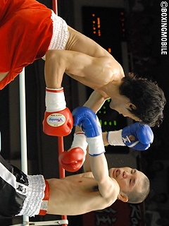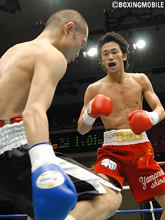 試合:開始と同時にファイターの村田がガードを固め距離を詰めるが、サウスポー山中がコンパクトな右ジャブで村田の前進を阻む。強引にステップインする村田に山中が切れのあるワンツーをヒットさせると早くも村田はダウン。カウント9で立ち上がる村田だが、山中がワンツー・右フックをクリーンヒットさせるとレフェリーが危険と判断し試合を止めた。