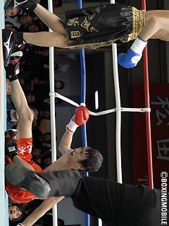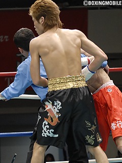 試合:B級デビュー、アマチュア高校3冠王・岩佐亮佑(セレス)のプロ3戦目。ゴングと同時に岩佐が右ジャブ・左ストレートで積極的に攻め込む。花木もリーチを生かしジャブ・ワンツーで距離を保とうとするが、岩佐がジャブから左ストレートをクリーンヒットさせ早くもダウンを奪う。立ち上がる花木に岩佐がここで一気に攻め込み、ワンツー連打から右フックを打ち込むと、花木はロープに釘付け。ここでレフェリーが危険と判断し試合終了。圧倒的な力を見せつけ岩佐が3勝目を上げた。