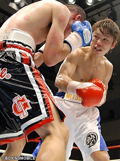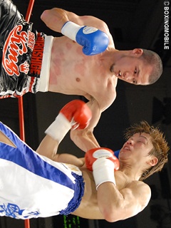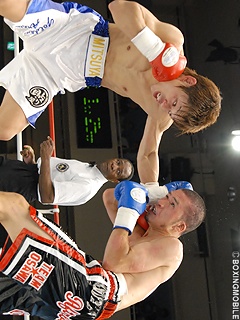 試合:大沢がジャブ・左ボディ・ワンツーで仕掛けるが、大村も右ストレート・左フックで応戦。積極的な大村が接近戦で右アッパー・左フックをコンパクトに打ち込み、3Rには大沢の膝を落とすが、大沢も左ボディ・右アッパーをクリーンヒット。接近戦の中、大村が的確に左右アッパーを打ち込み大沢にダメージを与える。最終8R、大沢がバッティングで減点1を受けるが、ここは下がる事無く右フックで大村の膝を落とす。試合は、大村が判定2-1で大沢を下し、悲願の日本ランク入りを確実とした。