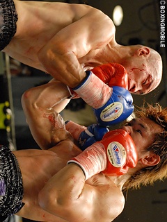 試合:矢板は身体を振って上下に動き、変則スタイルから梅津をかく乱し左フックをヒットさせる。接近戦に持ち込む矢板だが、梅津は矢板の入り際に左アッパーをヒットさせ動きを止める。さらに左フック・右ストレートで追い込むが矢板も左フックで応戦。矢板は2Rの打ち合いの中、頭が当たり左目上をカット。3Rにも偶然のバッティングで右目上をカットする。この両目上のカットが続行不能と判断され試合ストップ。両者にとって消化不良の一戦となってしまった。