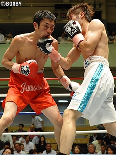 試合:リーチ・身長で上回る永安は足を使いながらジャブで距離を保ちたい。対する白石はプレッシャーを掛け接近戦に持ち込みたいが、永安に左ボディを合わされなかなか距離を詰める事が出来ない。3Rには永安が左ボディを軸に白石をロープに詰めて連打。主導権を掴む。中盤、白石が執拗にプレスを掛けると永安もこれに応戦。上体を屈め、互いに頭を付け左フック・右アッパーを打ち合う両者。接近戦から共にワンツー・右ストレートをクリーンヒットするも単発に。両者決定打を奪えないまま判定に。永安が手数とクリーンヒットで上回ったか、判定3-0で白石を下した。