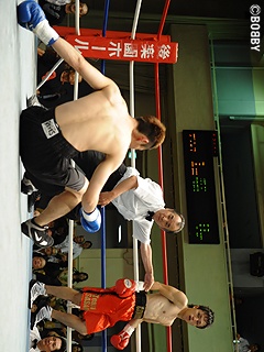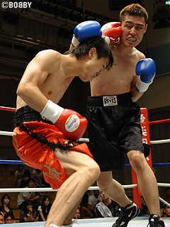 試合:両者ゴングと同時に踏み込み接近戦の展開。身長で上回る星野は右アッパー・左フックをコンパクトに打ち込み主導権を引き寄せにかかるが、長井が手数を出し反撃に。長井は左フック・右ストレートをヒットさせ星野をグラつかせると、追い打ちの右ストレートをクリーンヒットさせ、星野からダウンを奪う。立ち上がる星野だが足元がフラつき、レフェリーが両手を交差させ試合を止めた。