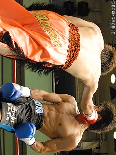 試合:日本ランク復帰を狙う福原が、スーパーバンタムから2階級アップし、日本スーパーフェザー級1位・阪東に挑戦。立ち上がり、福原は素早いジャブで距離を計り、ワンツー・左アッパーをヒット。阪東はプレスを掛けたいが、足を使いアウトボクシングに徹する福原を捉える事が出来ず。ジャブでリズムを作り、足を使い左右に動く福原は、的確にワンツーをヒットさせポイントを奪う。阪東も左右フックをヒットさせるが、福原は決して阪東に連打を許す事無く、すかさずワンツーを打ち返しては左右に動いて距離を保ち、阪東の攻撃を単発に終わらせる。福原は終始アウトボクシングで阪東のプレスを捌き、ジャブ・ワンツー・左フックをヒットさせ自身のリズムでボクシングを展開。終盤、阪東も左ボディから右フックをヒットさせ反撃を試みるも、福原はリズムを崩す事無くすかさずワンツーで距離を保つ。試合は判定に待ちこまれたが、福原が鉄壁のアウトボクシングでポイントを奪い判定0-3で阪東を下し、日本ランキング上位入りを確実にした。
