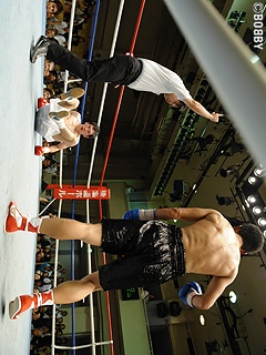 試合:互いにガードを固め、頭を付け合い接近戦を挑む。両者左フック・右アッパー・左ボディを打ち合うも、2Rには今井の左フックがクリーンヒットし、橋本の膝が落ちかける場面も。ここは橋本が踏ん張り、接近戦の打ち合いの中の3R終了間際、左フックで今井からダウンを奪う。終始前に出て攻め込むも試合は判定に。判定1-0のドローとなったが、ダウンを跳ね返した今井が勝者扱いで準決勝に進出。