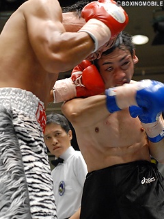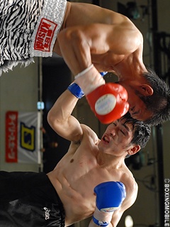 試合:左ボディが冴える相馬は接近戦のなかボディから左右フックを打っていく立ち上がり。対する土井は、相馬をひきはがして右ストレート、ショートでフックを打つが、距離が合わない。2R、くっついてくる土井に対しアッパーで起こし左右フックを放つ相馬。さらに頭を下げたままフックを押し込んでいく土井だが、途中ヒッティングにより左目上をカット。3R4R、内側からボディ、アッパーを放つ土井、外側からしっかりボディ、離れ際に左右フックで対抗する相馬。それぞれがお互いの距離で戦えていない感のある接近戦を制したのは手数の多さと的確さで相馬に軍配が上がった。